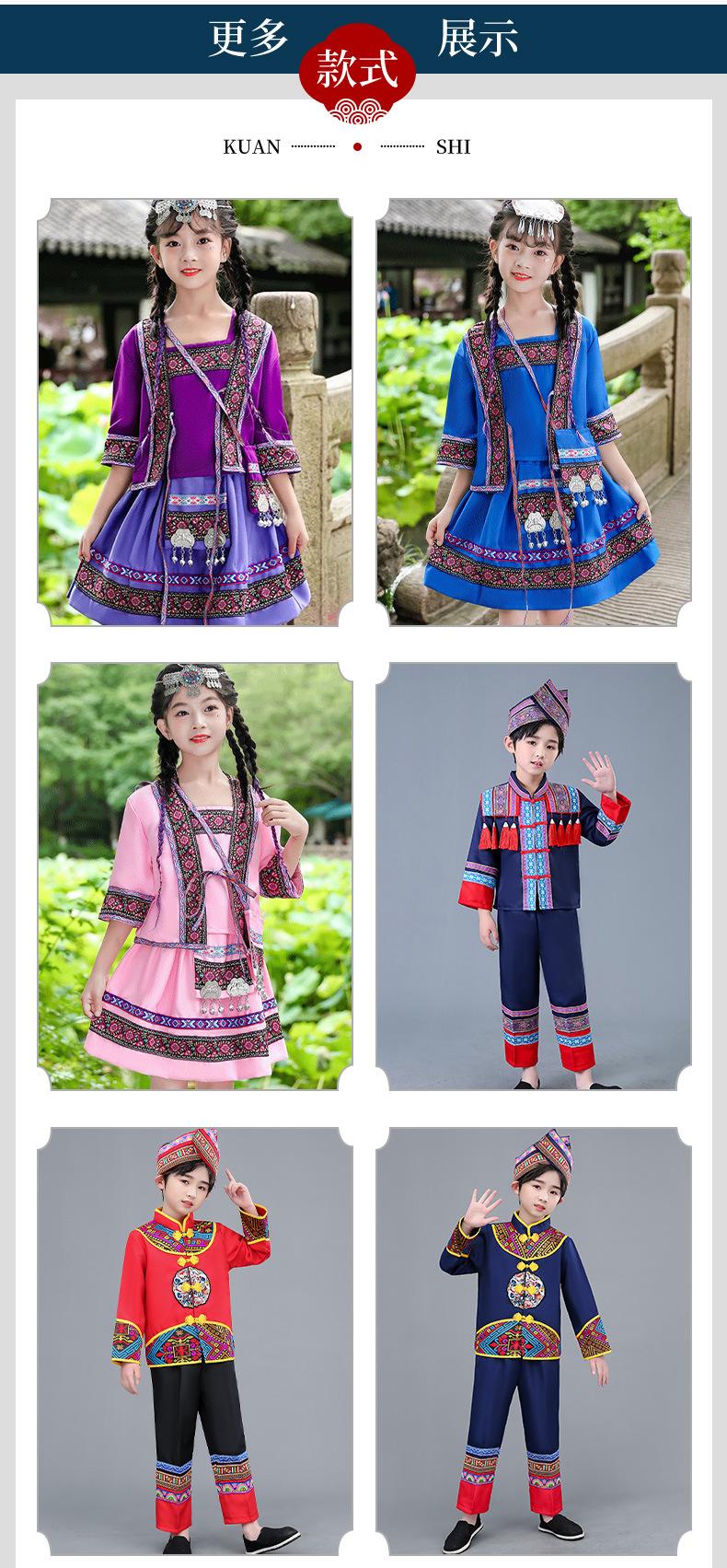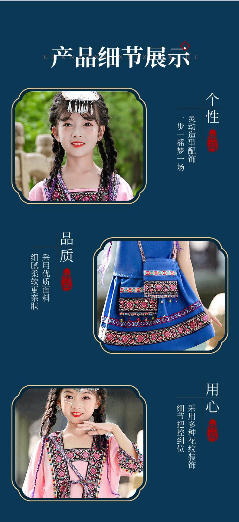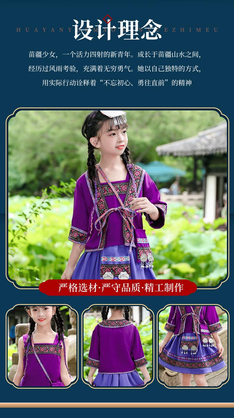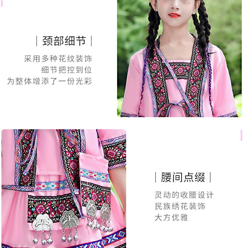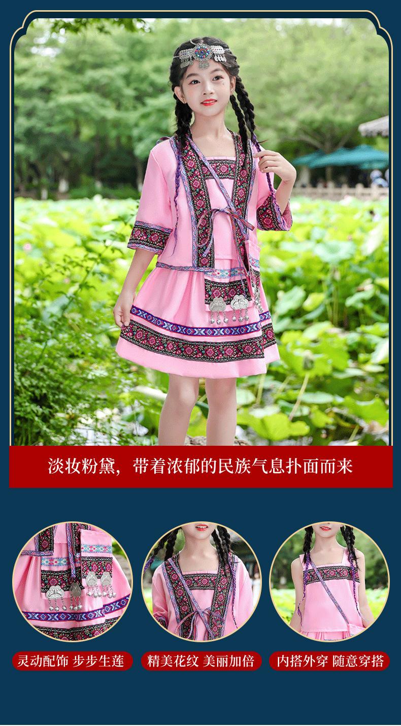 Venta al por mayor, disfraz étnico infantil del 3 de marzo, Zhuang Yi Miao, niña Yao Hani, ropa de actuación de manga corta