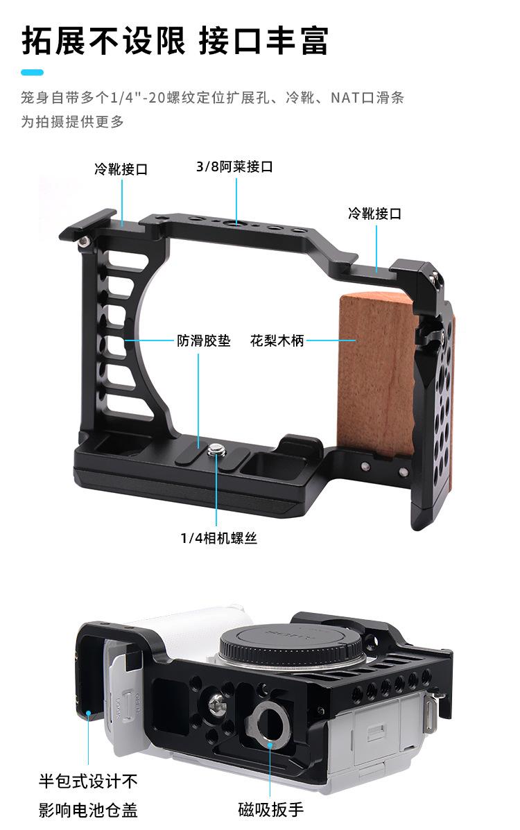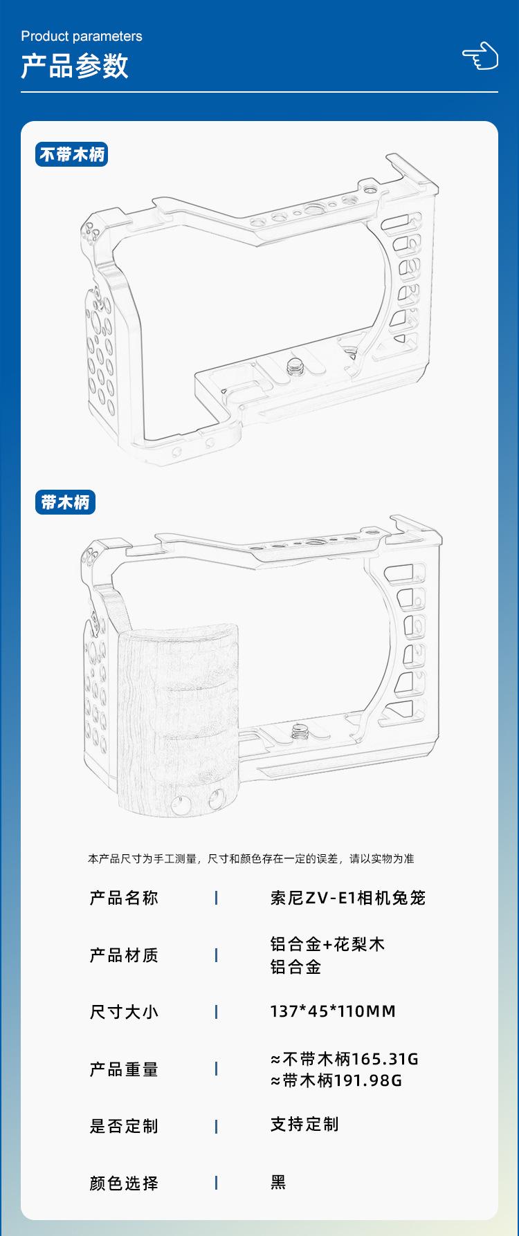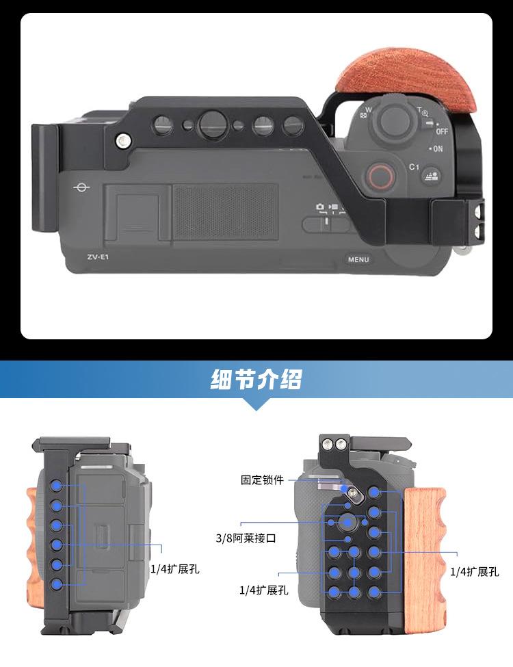 Estabilizador de cámara Sony ZVE1, jaula de conejo, ZV-E1, SLR, toma vertical, mango de madera, marco de protección de expansión.