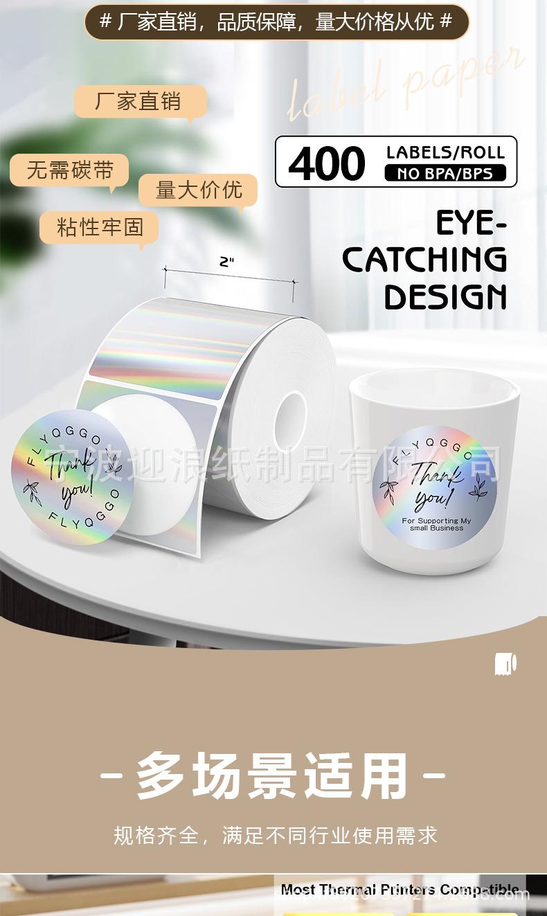 Papel Térmico para Impresión de Etiquetas Láser Transfronterizo Colorido Redondo Plata Autoadhesivo Sello Adhesivo Papel Térmico para Etiquetas Láser