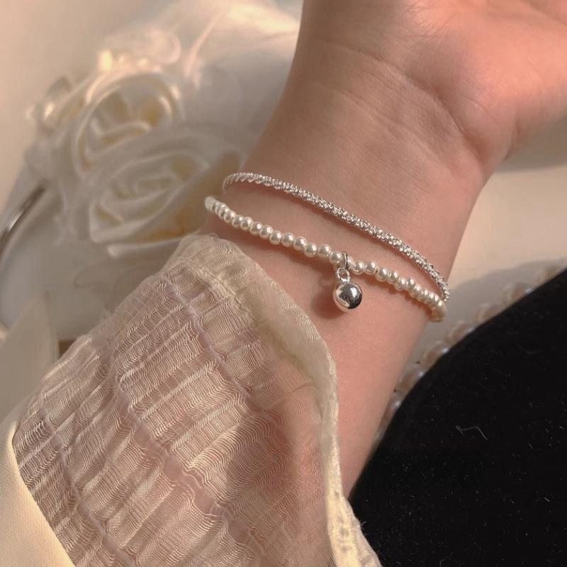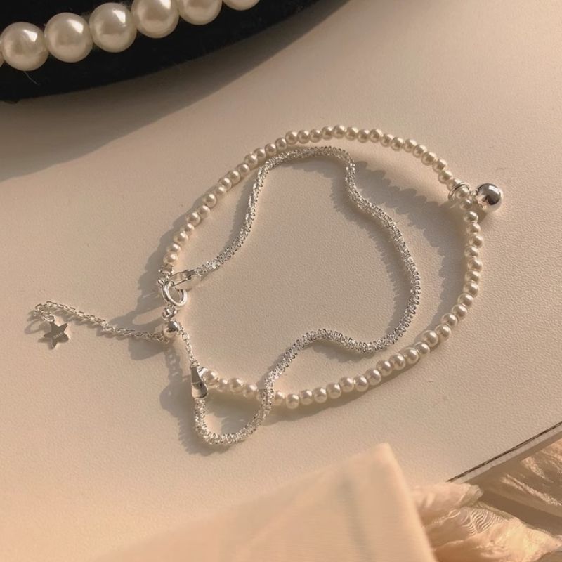Venta Caliente nueva pulsera de doble capa estilo frío para mujer pulsera de pareja de plata rota pulsera de perlas barrocas estrelladas