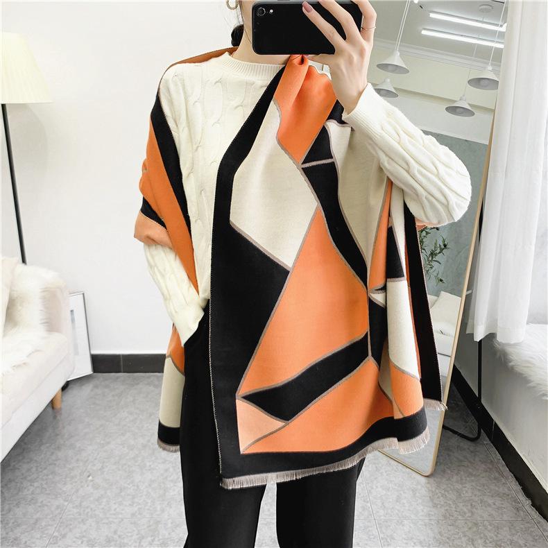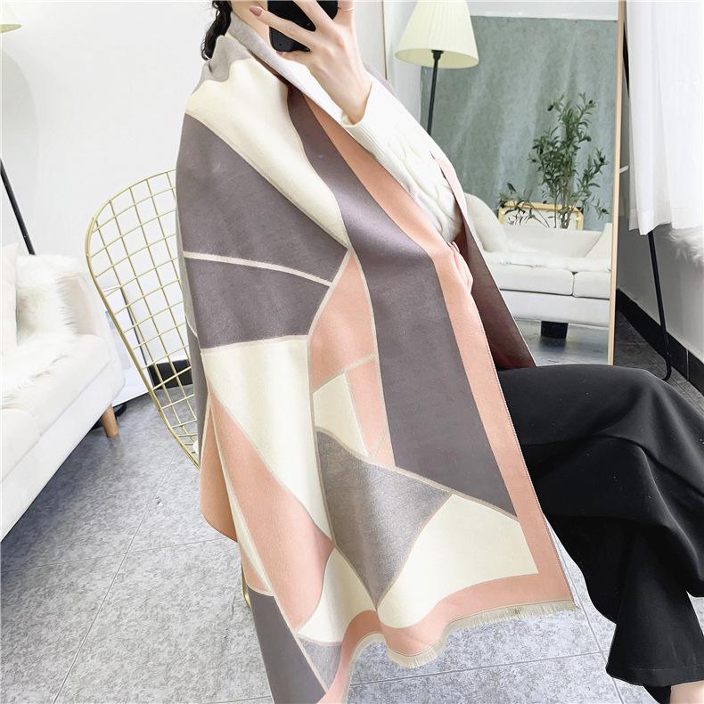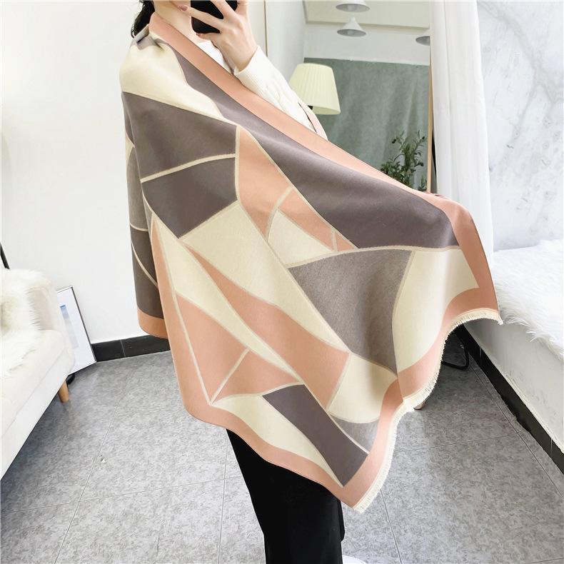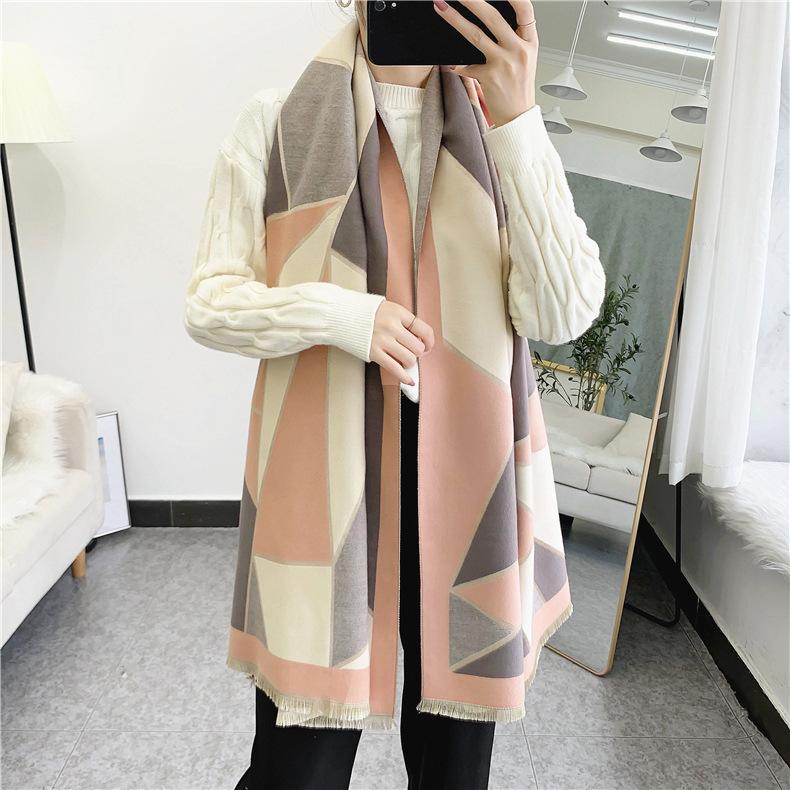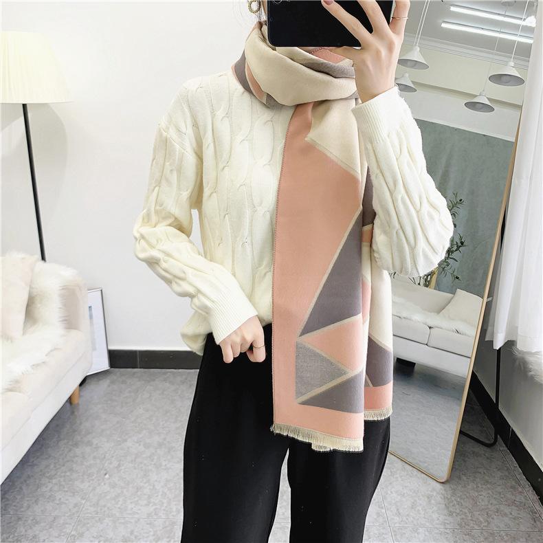 Chal Grueso Geométrico de Otoño e Invierno a Juego de Colores de Doble Propósito Bufanda para Estudiante Imitación Cachemira Coreana para Damas Bufanda Cálida de Doble Uso