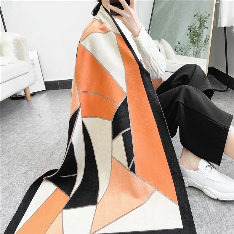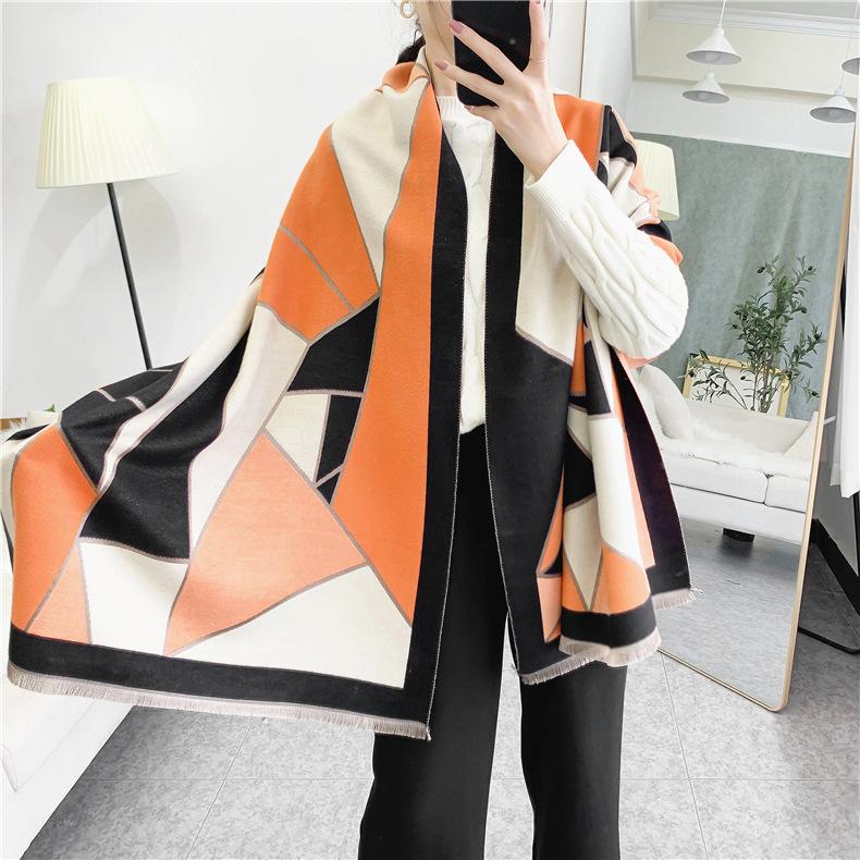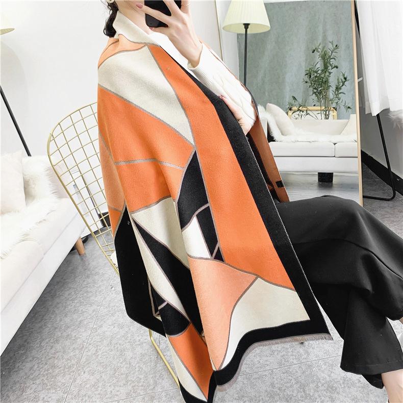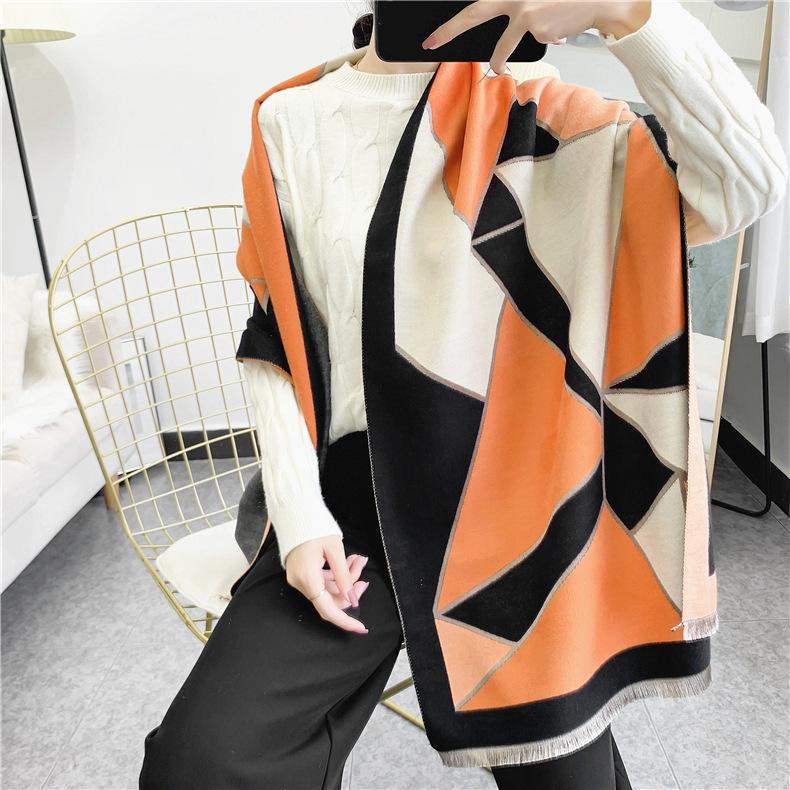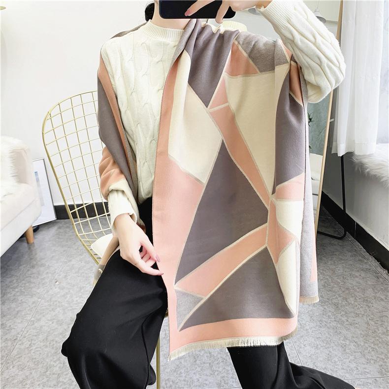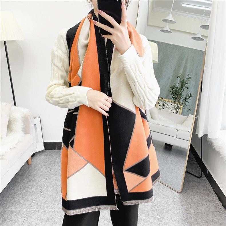 Chal Grueso Geométrico de Otoño e Invierno a Juego de Colores de Doble Propósito Bufanda para Estudiante Imitación Cachemira Coreana para Damas Bufanda Cálida de Doble Uso
