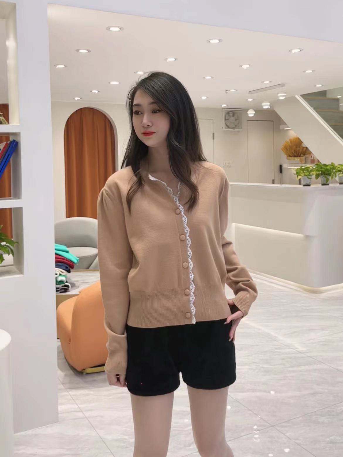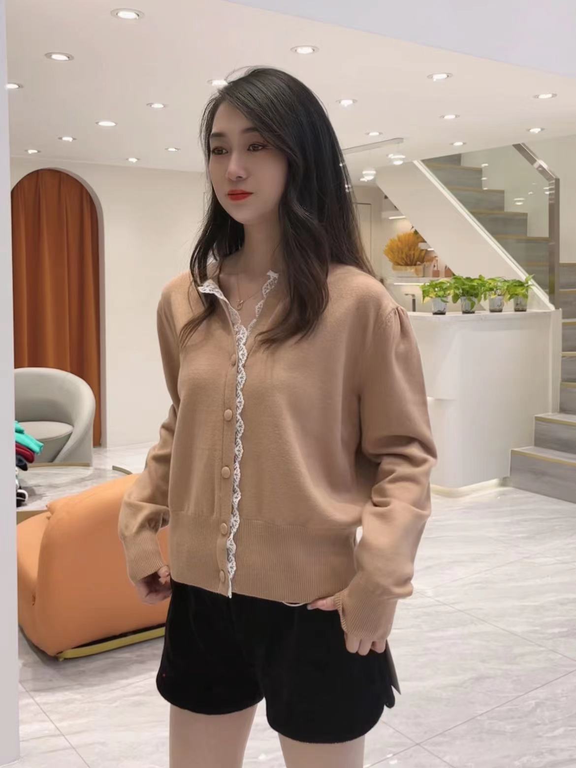 Cárdigan de punto con costura de encaje para mujer, otoño e invierno, atmósfera francesa, suéter interior suave de alto sentido, camisa inferior, parte superior
