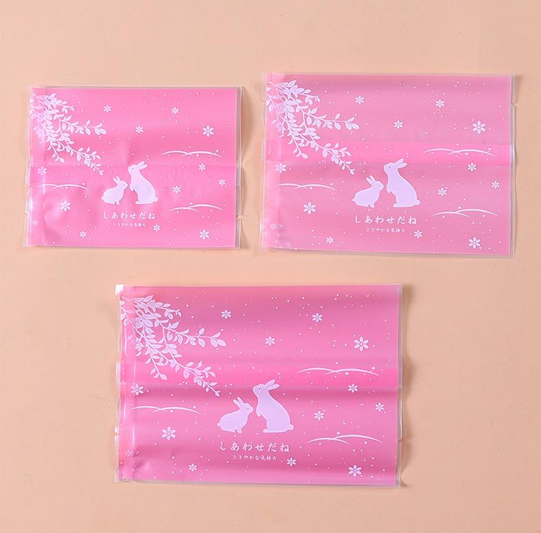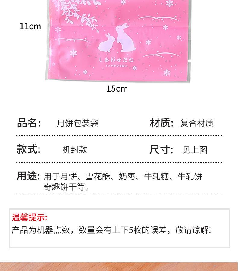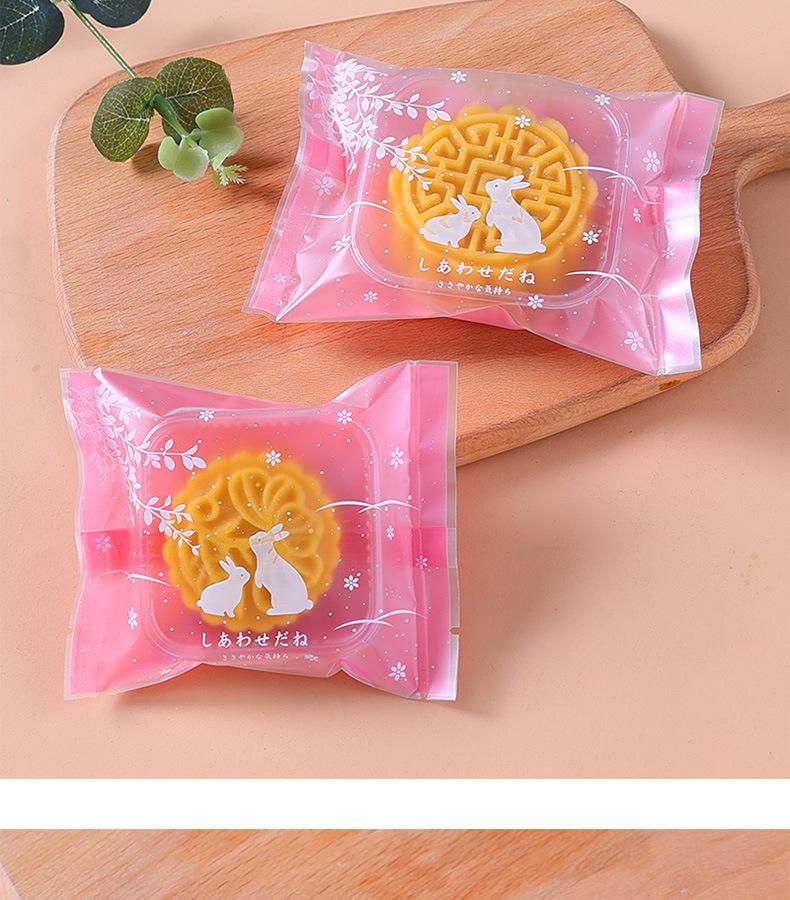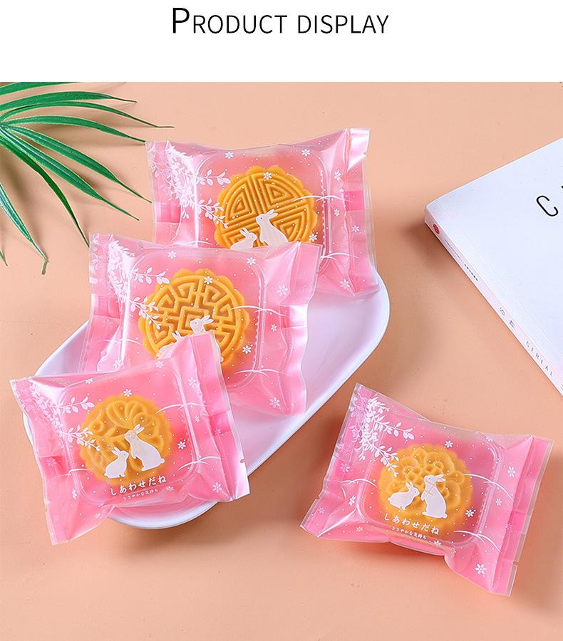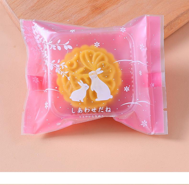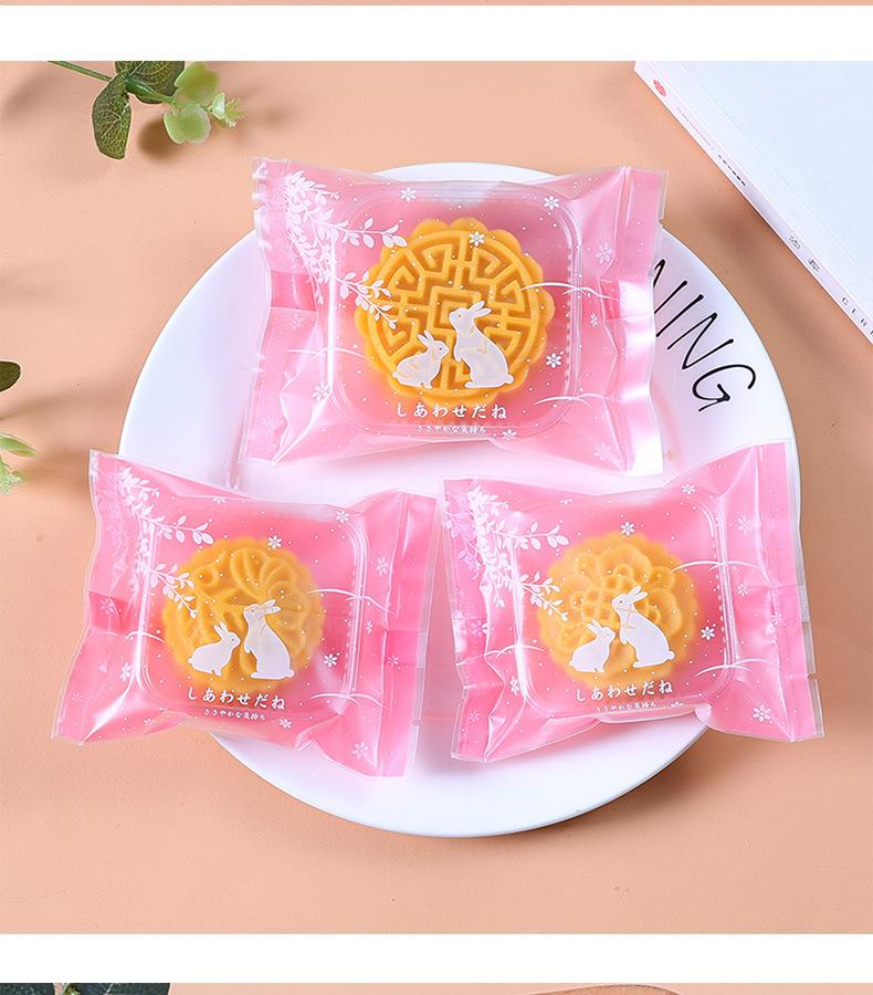 Bolsa de embalaje de conejo rosa esmerilado sellada a máquina Bolsa de yema crujiente de pastel de luna de mediados de otoño 95-100