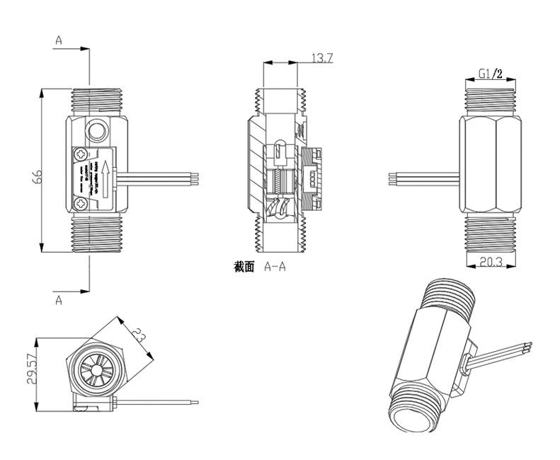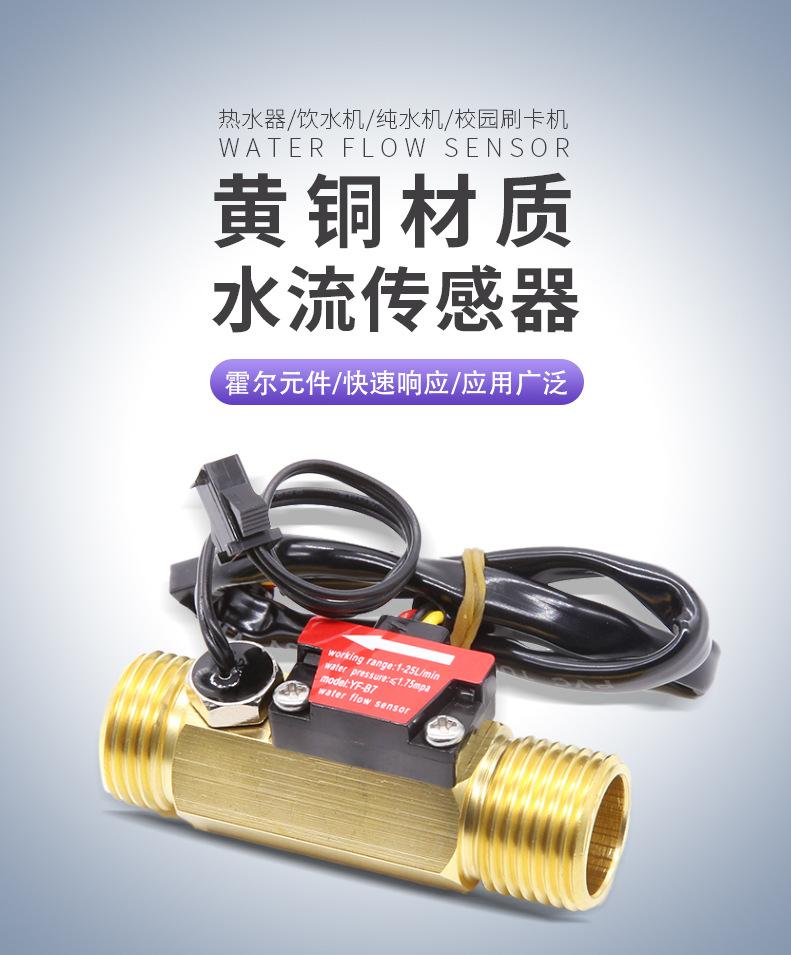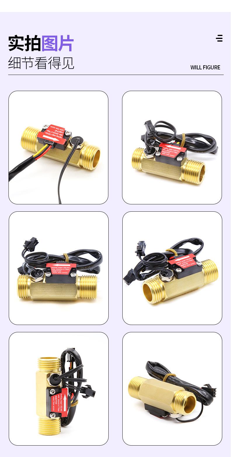 Sensor de Flujo de Agua Latón Detección de 4 Puntos con Temperatura Medidor de Flujo de Agua Hall B7 Sensor de Flujo de Agua de Turbina
