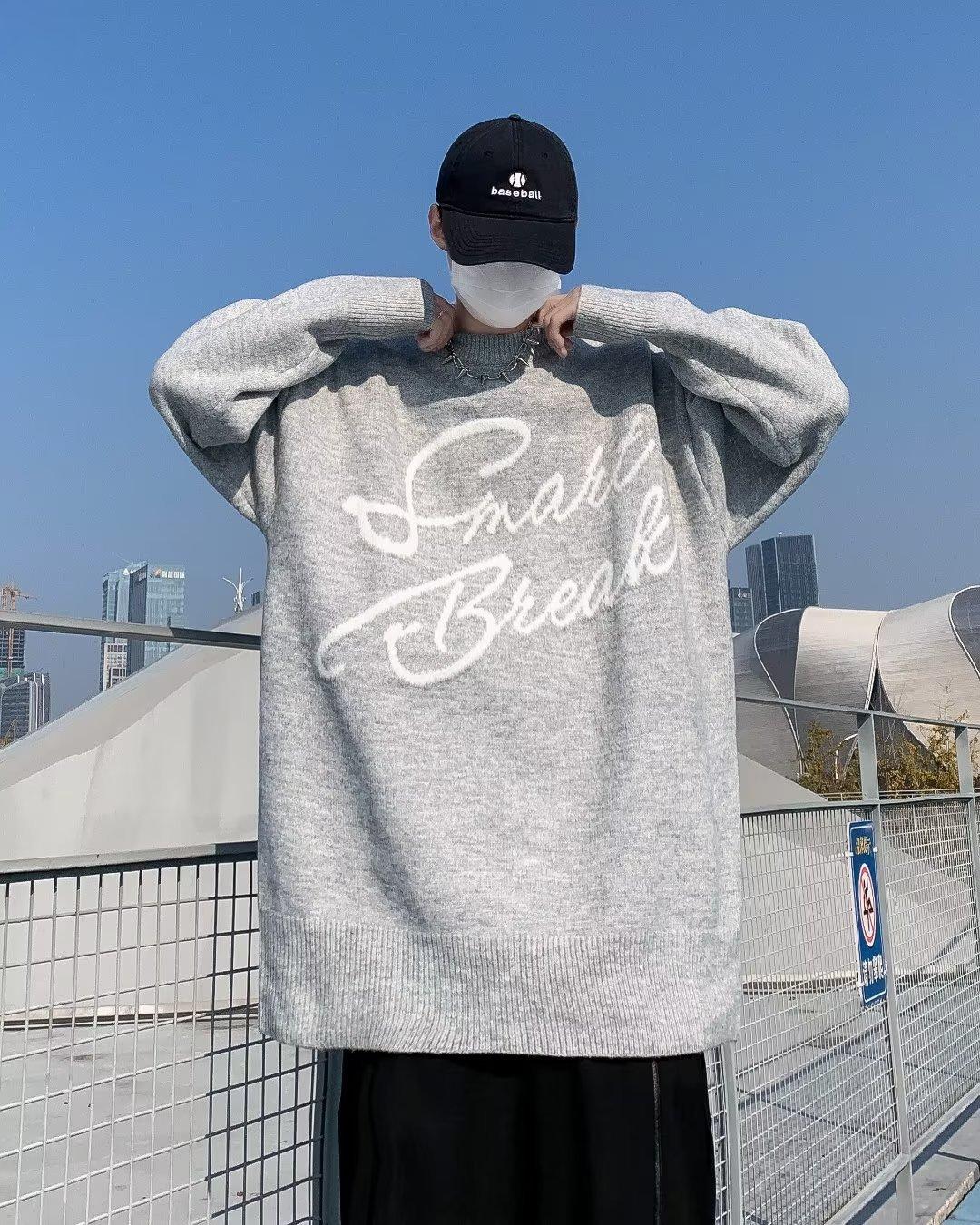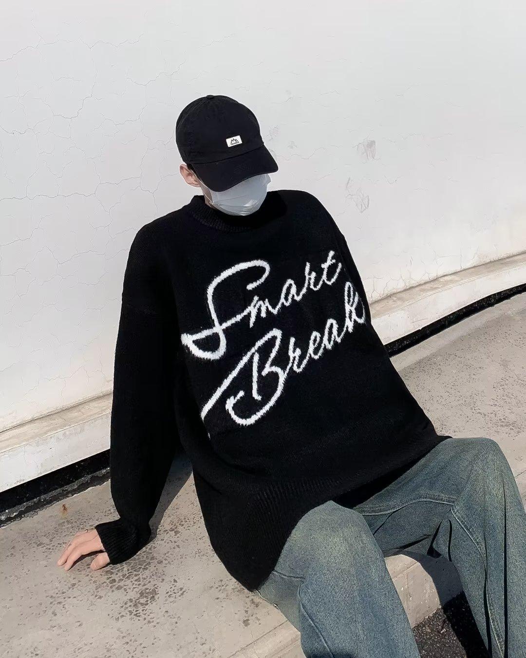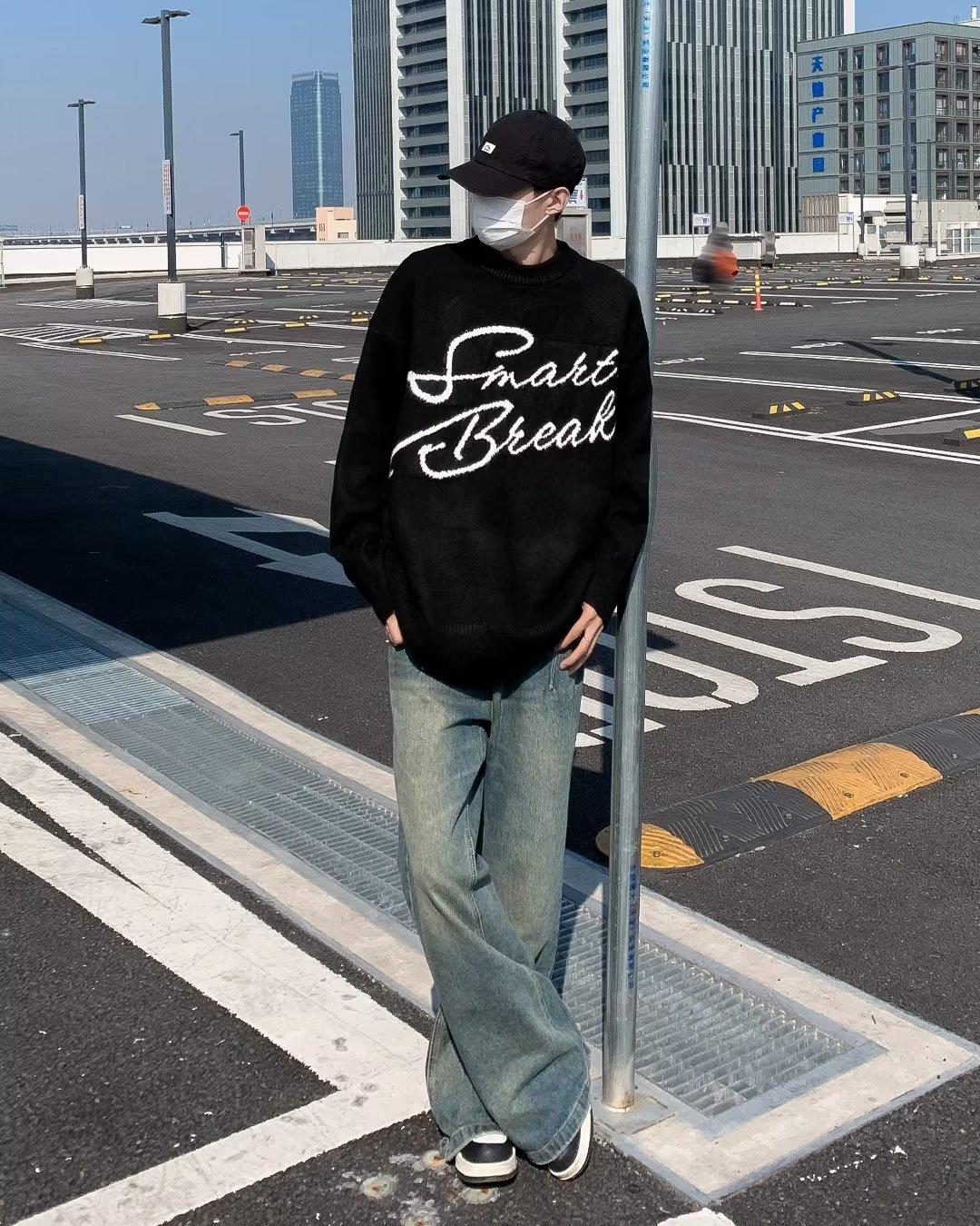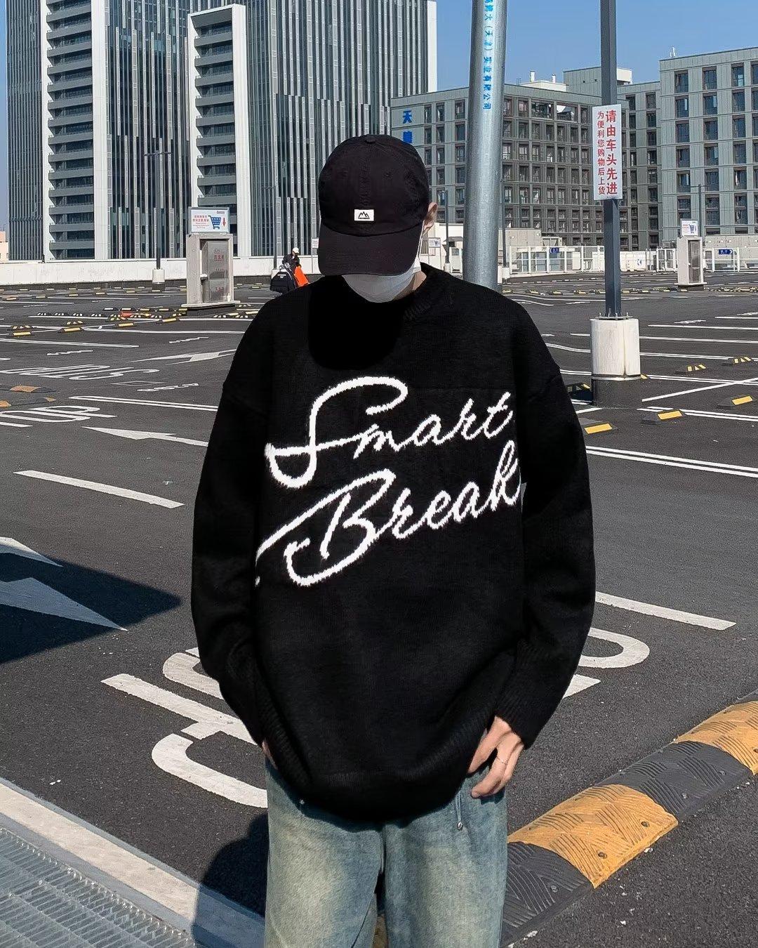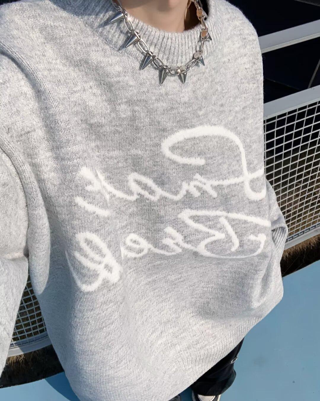 Suéter con letras de calle principal estadounidense, suéter informal holgado con cuello redondo que combina con todo, suéter de otoño e invierno, suéter retro, top de marca de moda