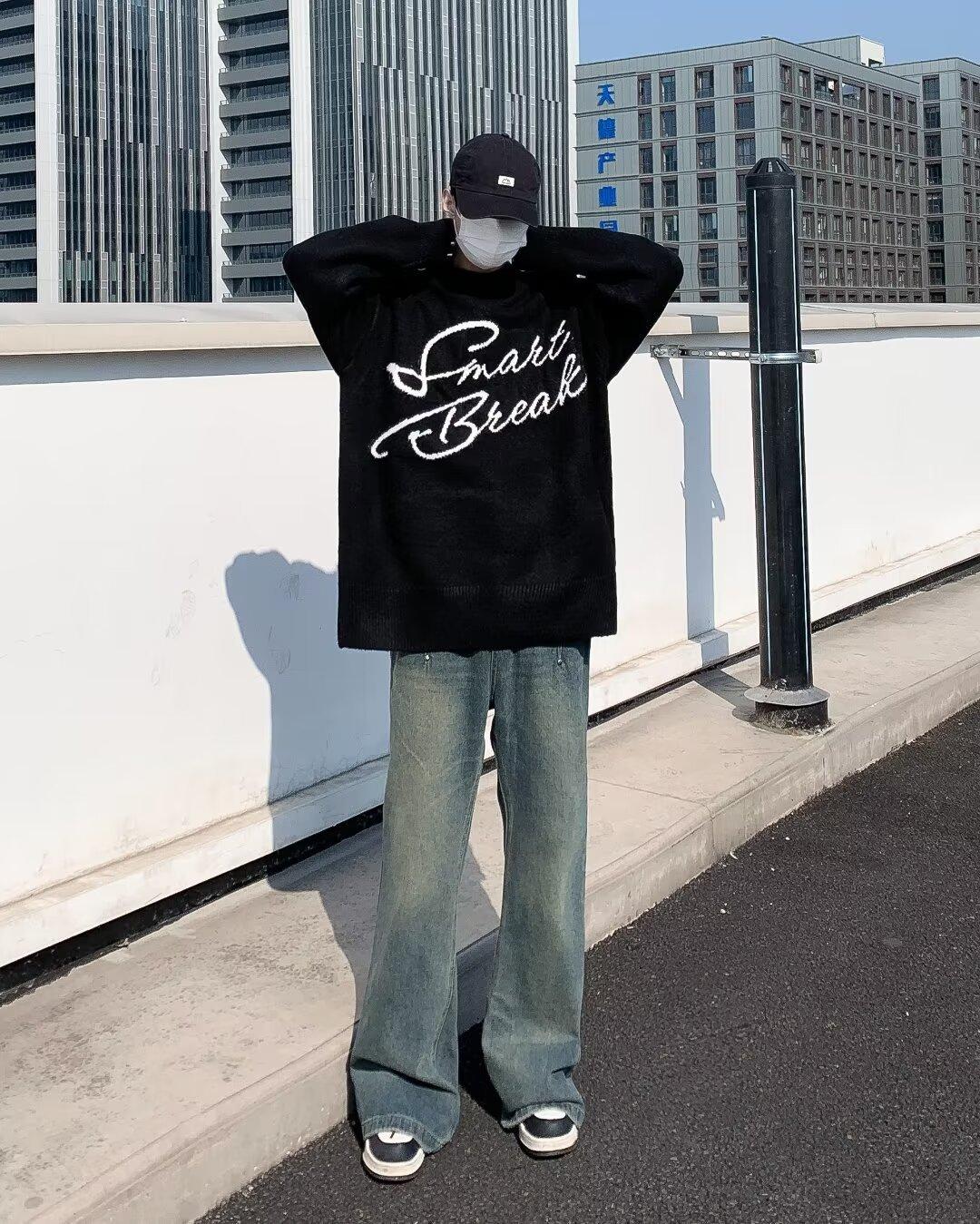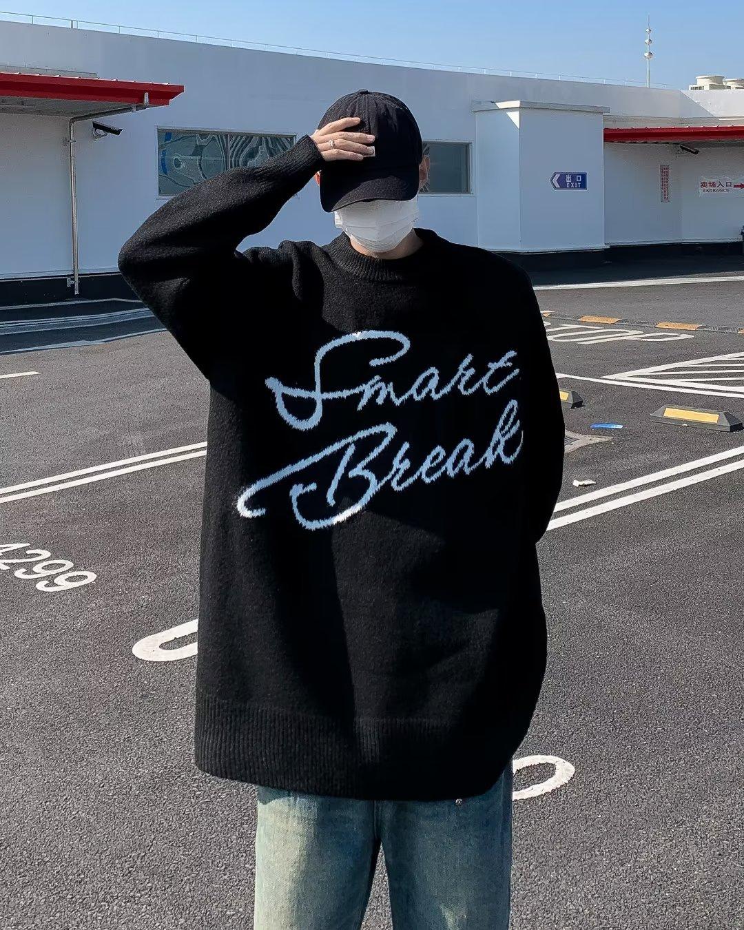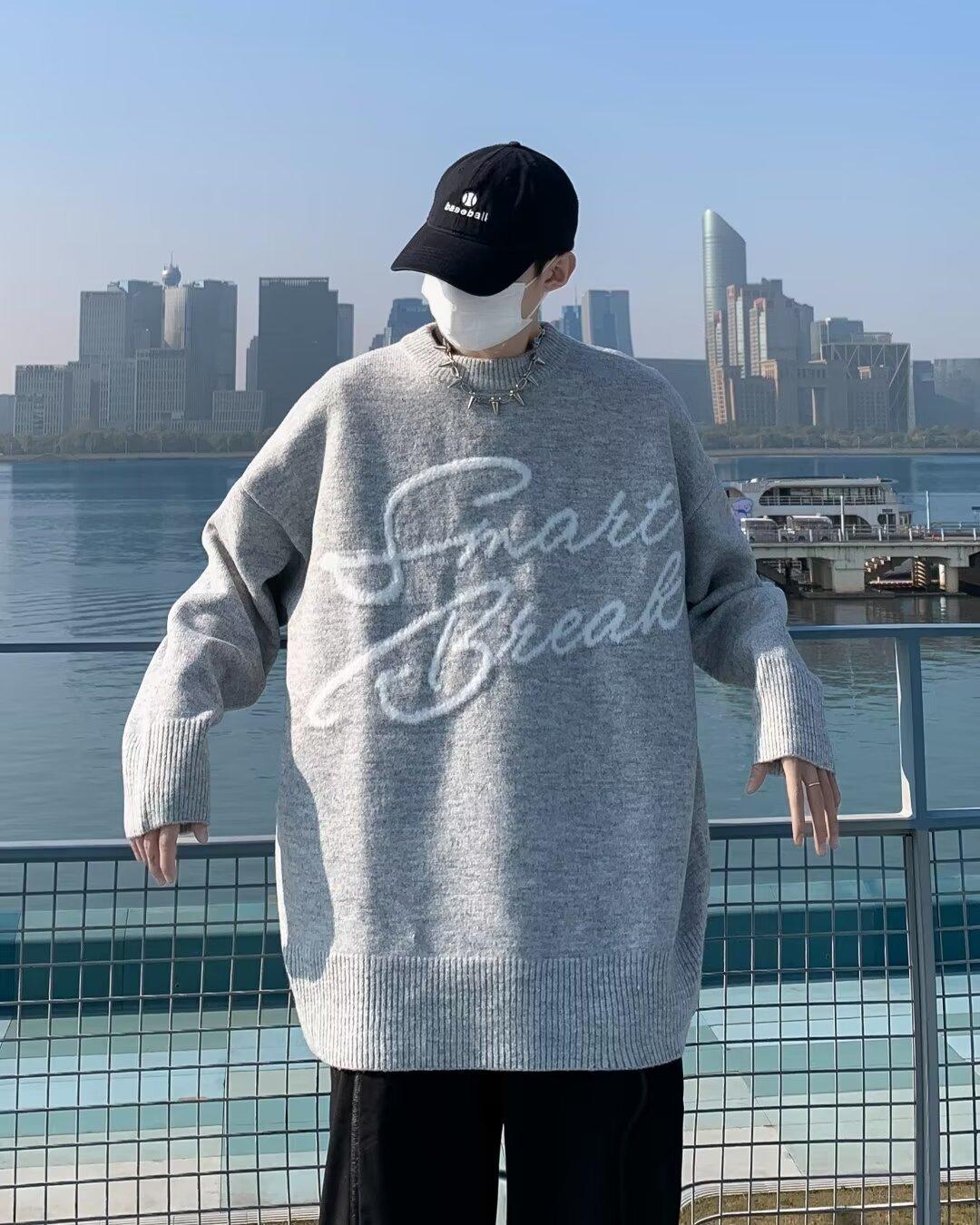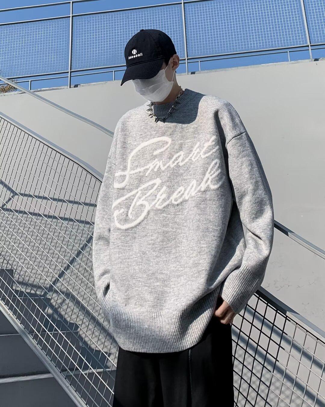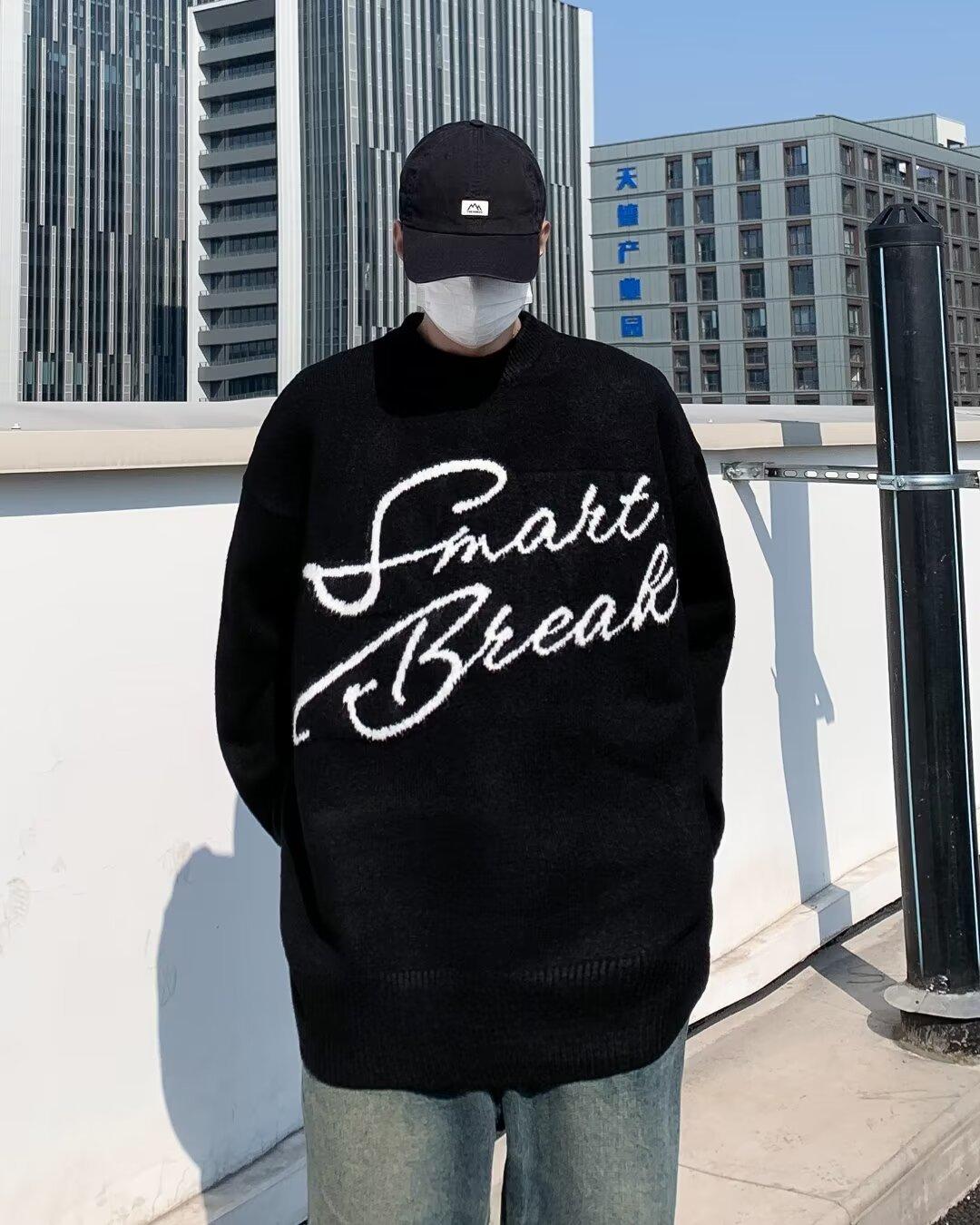 Suéter con letras de calle principal estadounidense, suéter informal holgado con cuello redondo que combina con todo, suéter de otoño e invierno, suéter retro, top de marca de moda