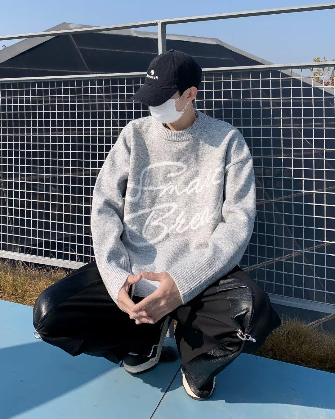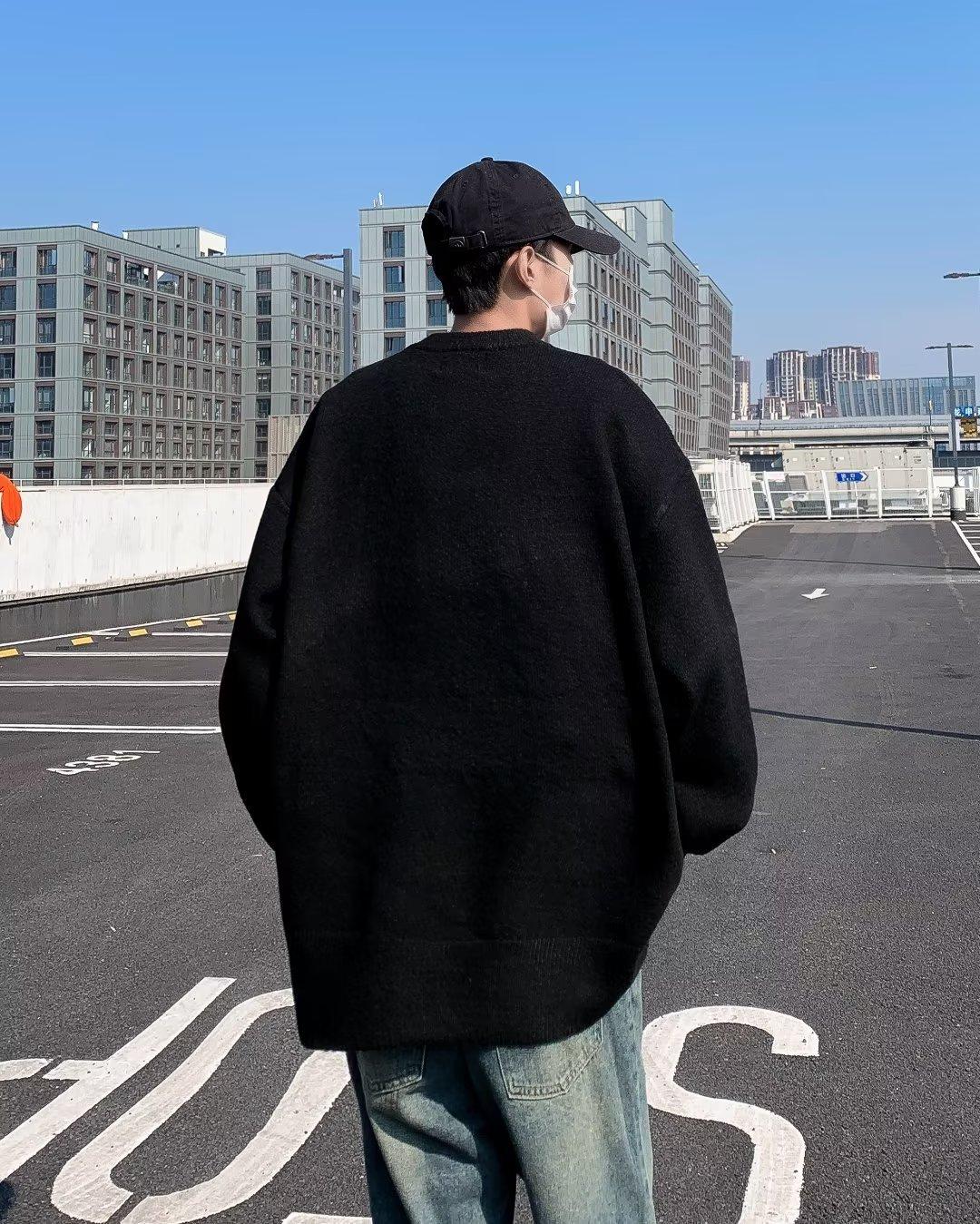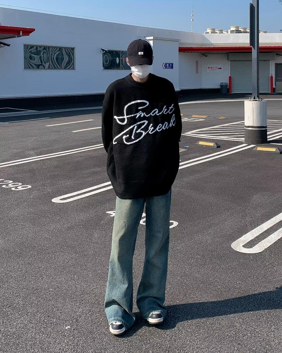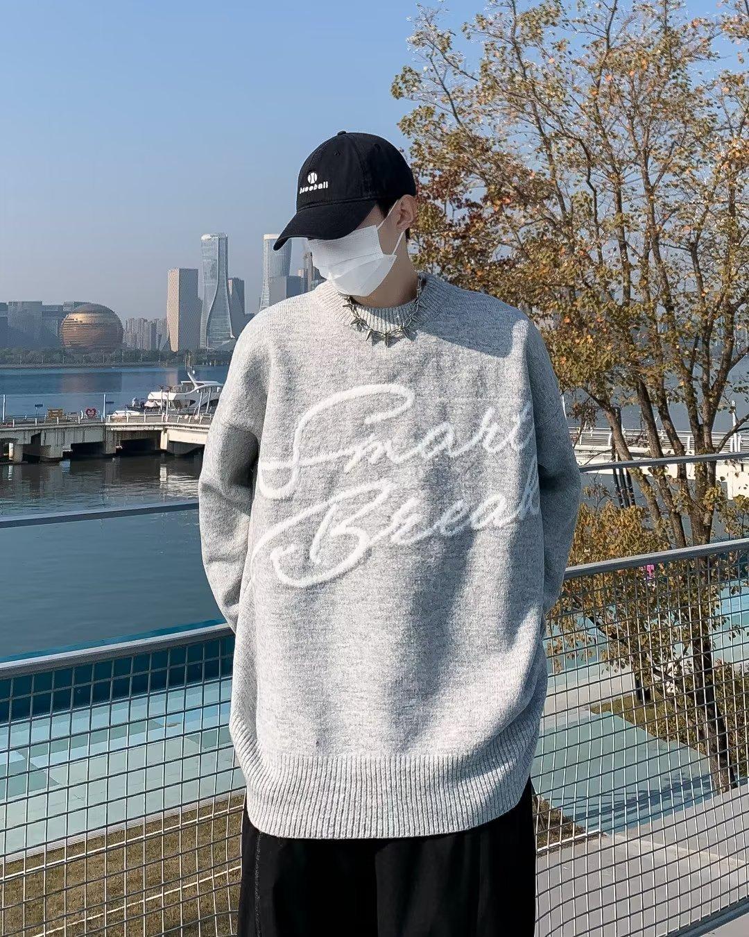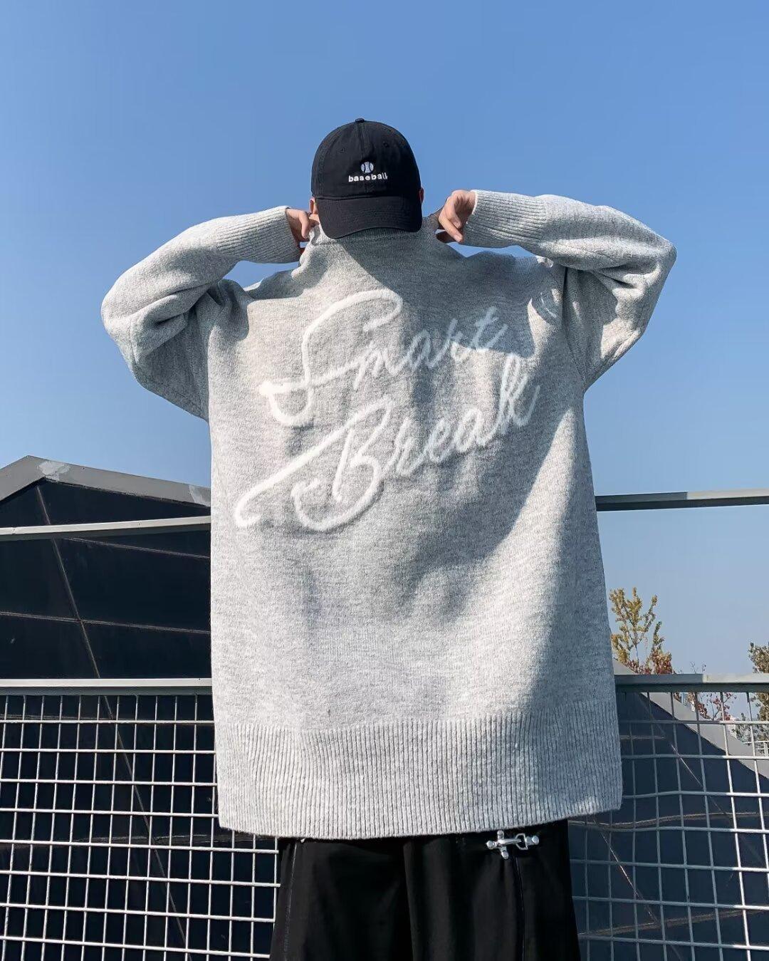 Suéter con letras de calle principal estadounidense, suéter informal holgado con cuello redondo que combina con todo, suéter de otoño e invierno, suéter retro, top de marca de moda