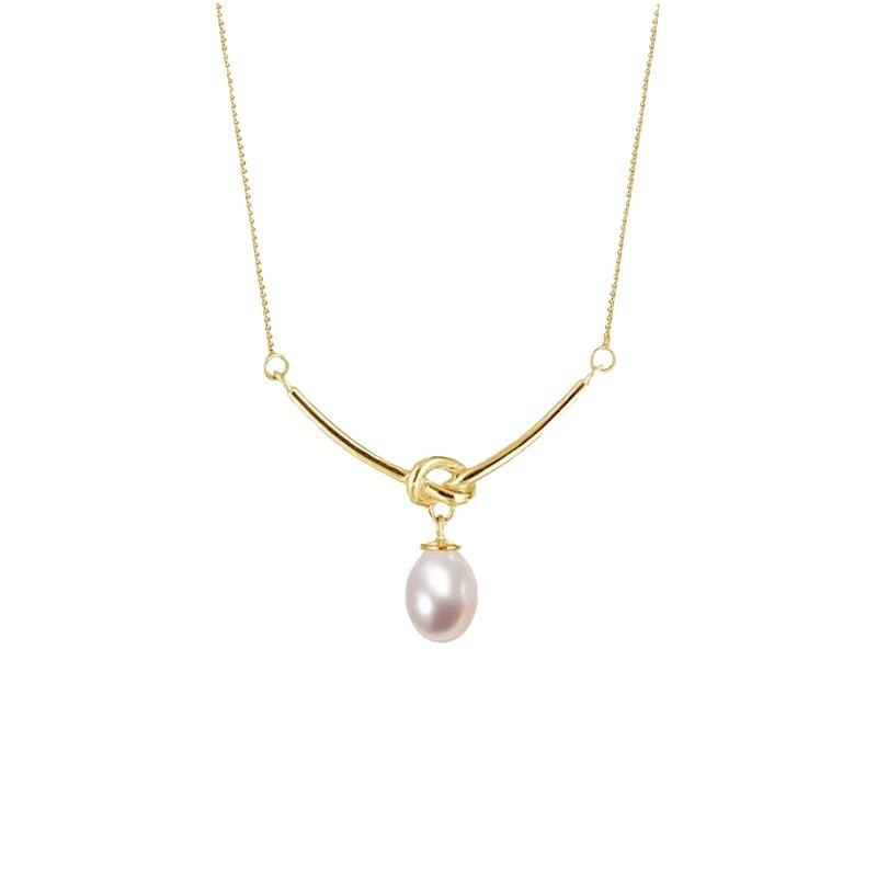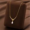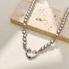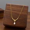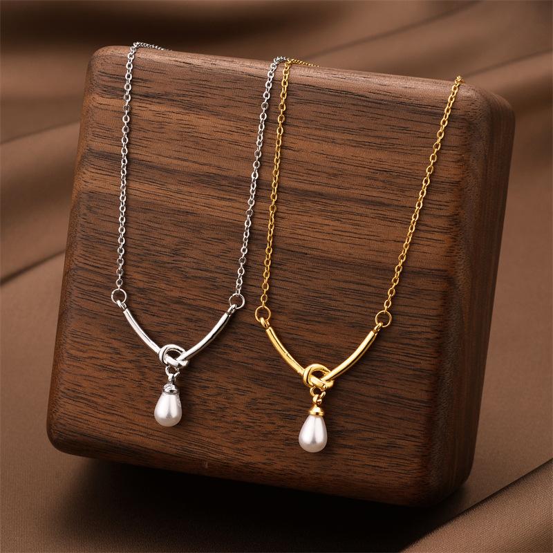Collar de acero de titanio con colgante de perla artificial con nudo de seguridad para mujer, diseño de nicho de lujo ligero, cadena de clavícula de alta calidad que combina con todo a la moda.