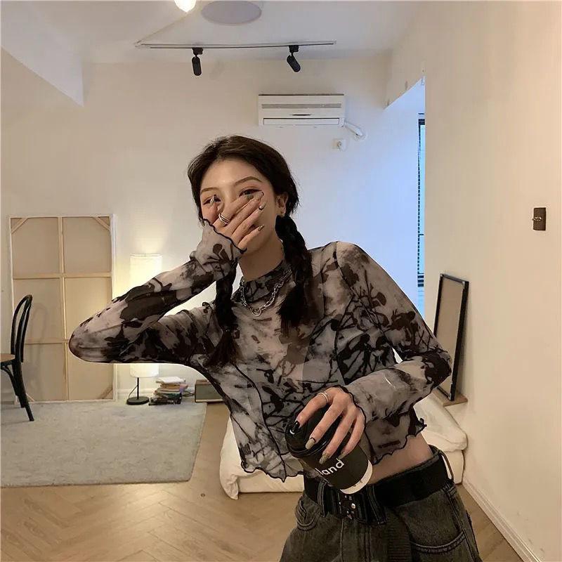 Camiseta de Fondo de Chica Sexy de Manga Larga para Mujer Verano 2025 Nuevo Diseño Nicho Slim Tops Cortos Trbottomy Ins