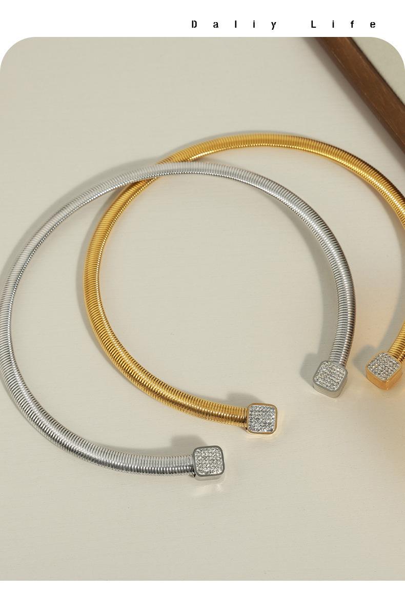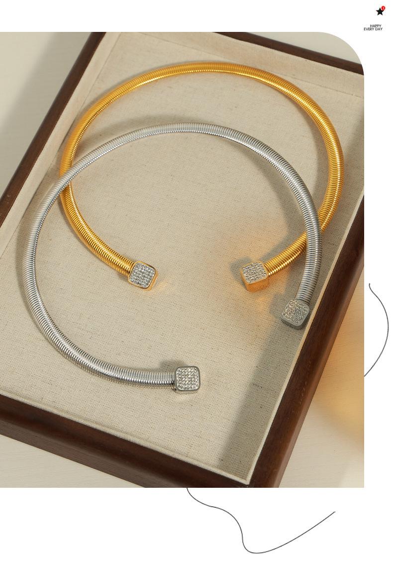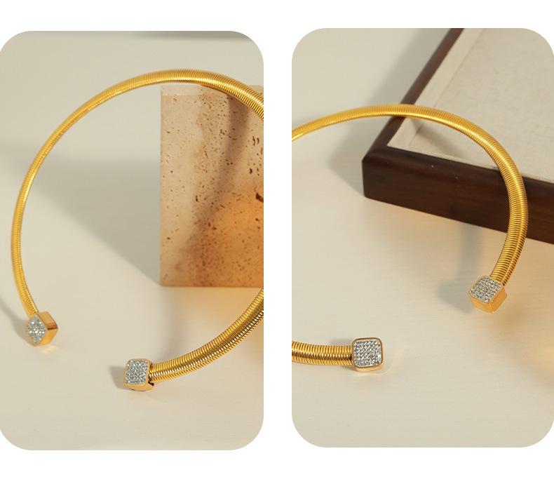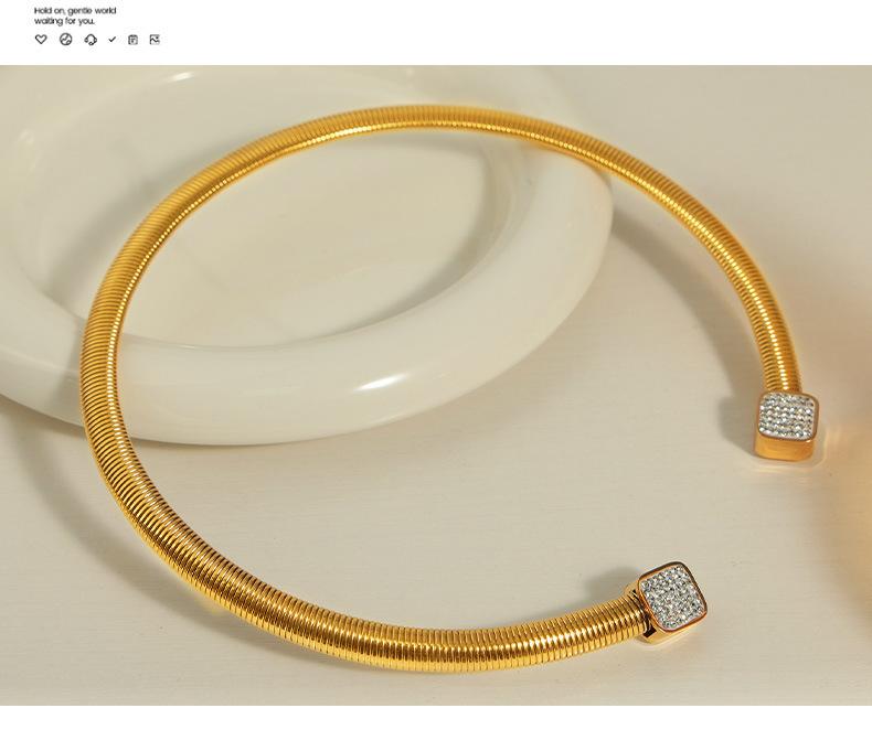 Estilo europeo y americano doble cabeza diamante cuello abierto en forma de C diseño de moda cuello en forma de hoja acero de titanio chapado en oro de 18 quilates collar
