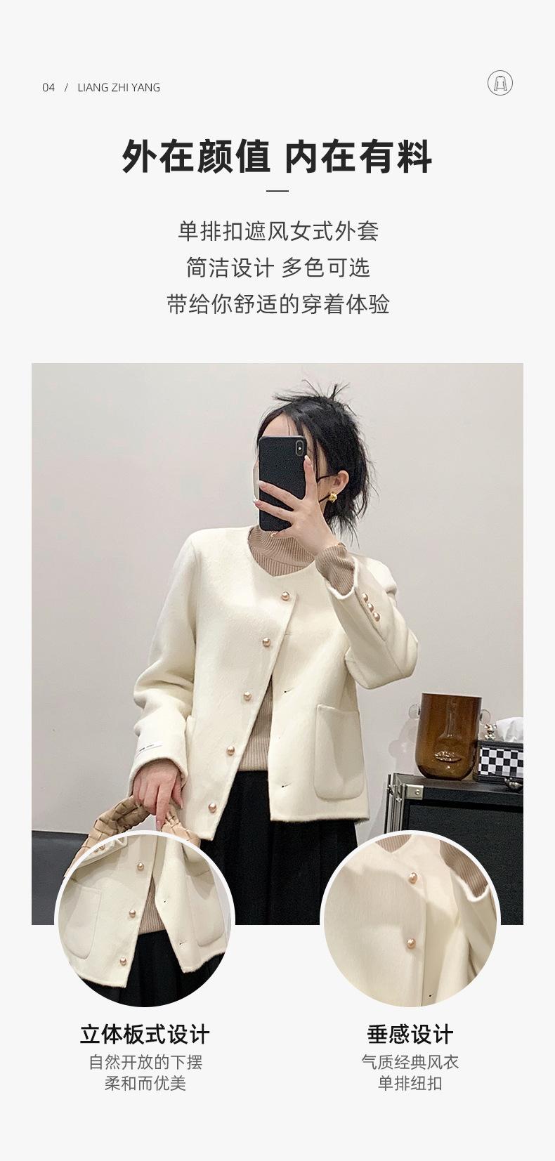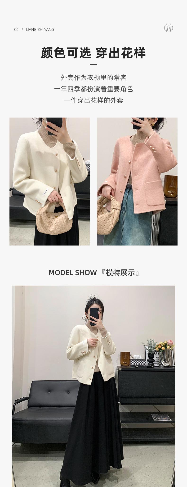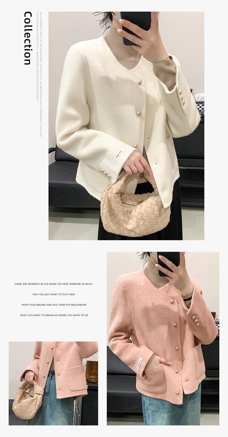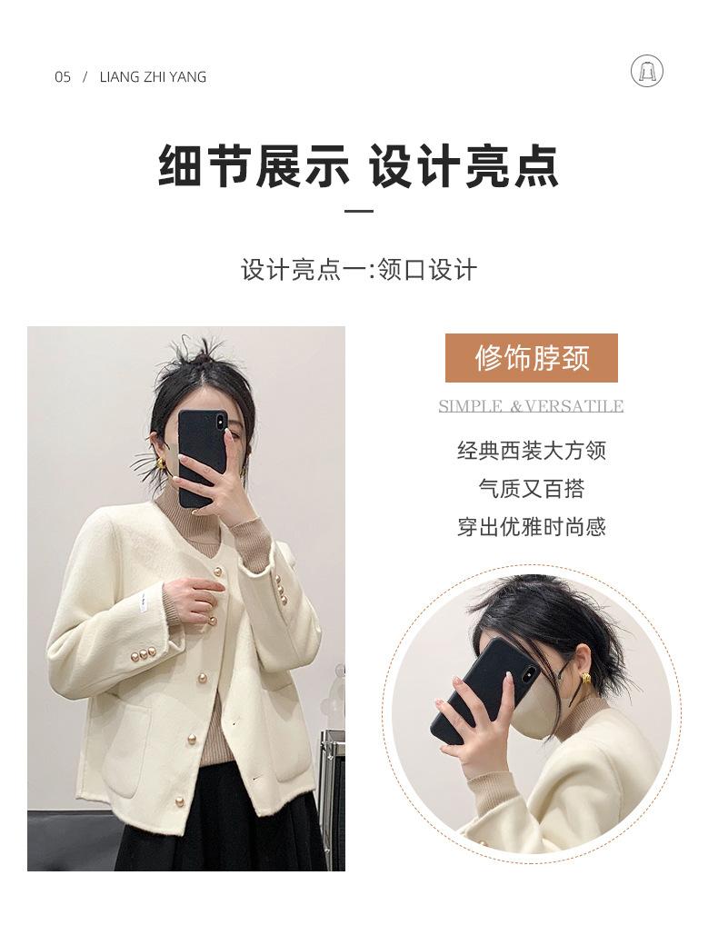 Nuevo abrigo de cachemira de doble cara para mujer, estilo coreano, corto, cuello redondo, de lana de color liso, abrigo estilo Chanel