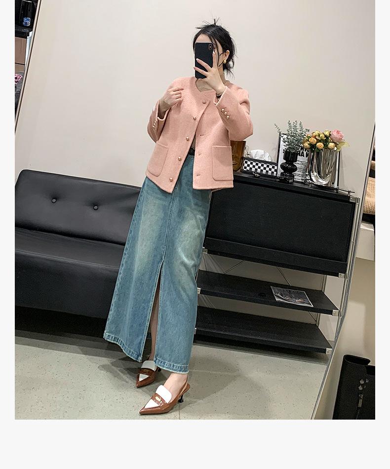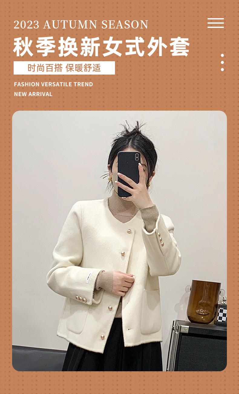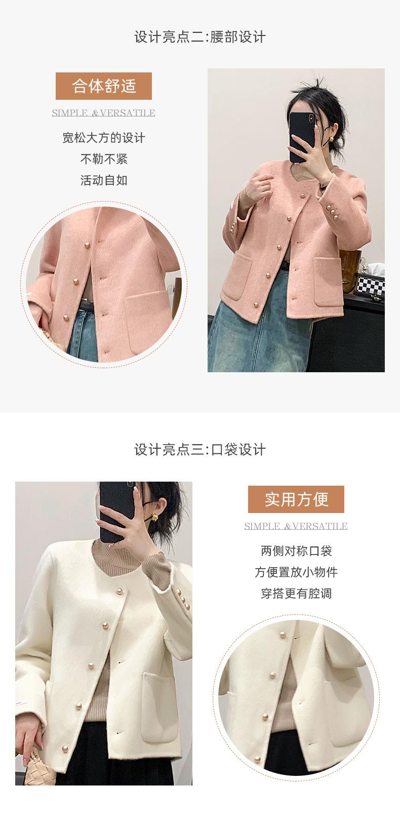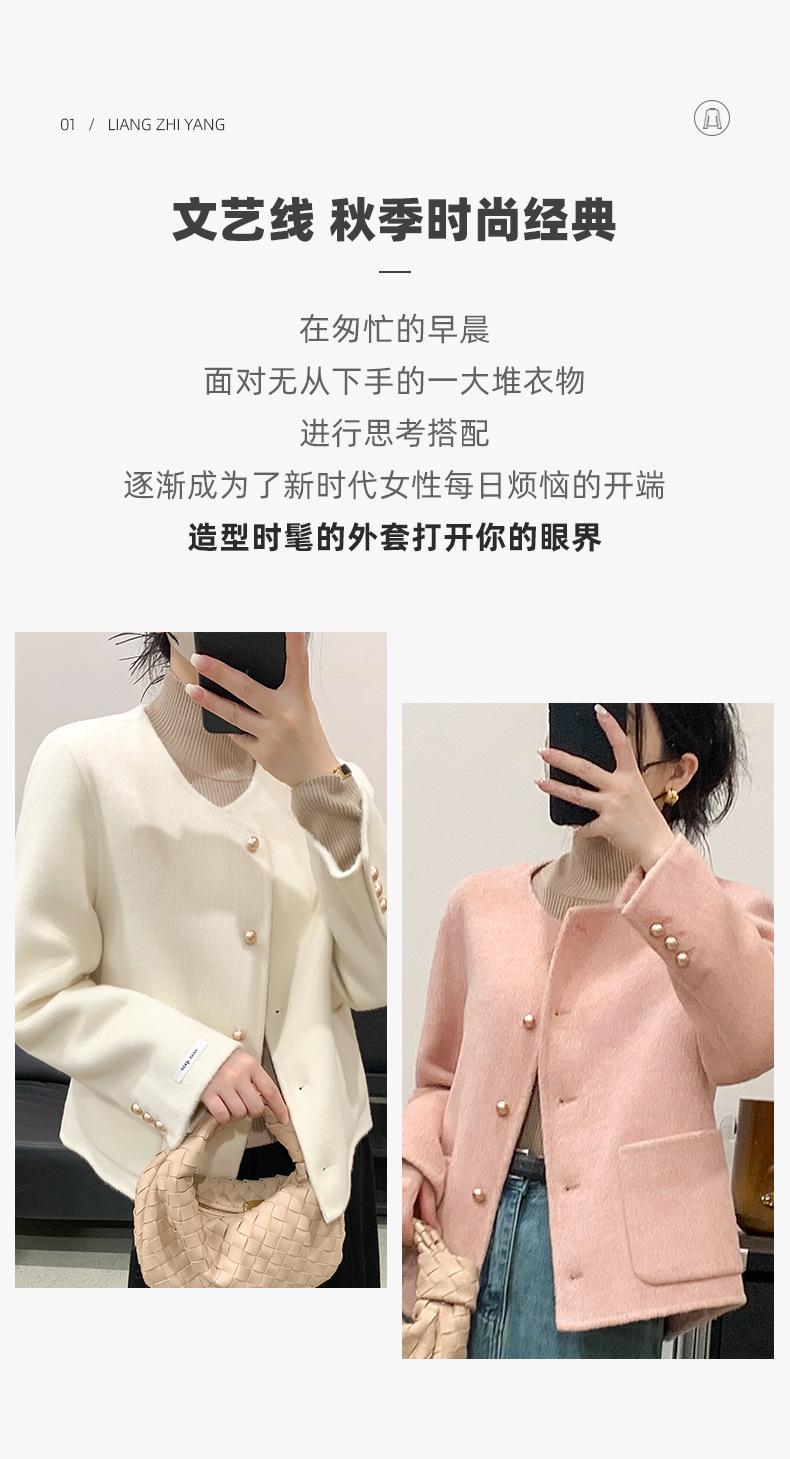 Nuevo abrigo de cachemira de doble cara para mujer, estilo coreano, corto, cuello redondo, de lana de color liso, abrigo estilo Chanel