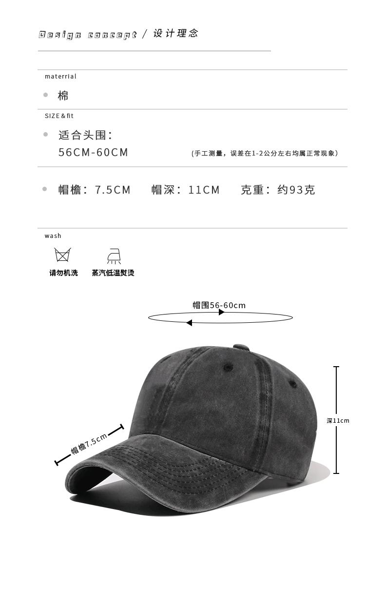 | Gorra de béisbol antigua con agujeros para hombre, estilo callejero, estilo coreano, para mujer, con circunferencia de cabeza grande, cara, letra pequeña bordada, gorra de pico de pato |