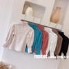 Camisa de algodón puro para niños, color liso, estilo coreano, para primavera y otoño, camiseta de manga larga con cuello redondo y combinación de varias prendas para niñas.