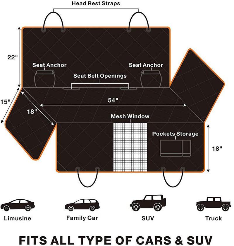 Nombre del producto: Alfombrilla para perro de asiento trasero doble de malla abierta (con hebilla de seguridad integrada + diseño de salida de seguridad + red de aislamiento)
