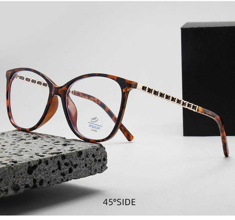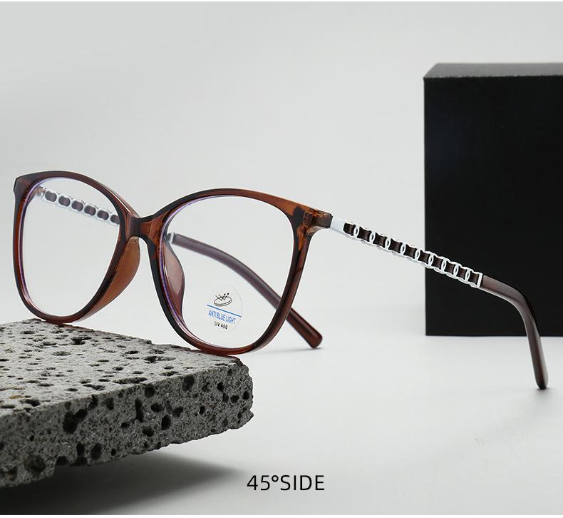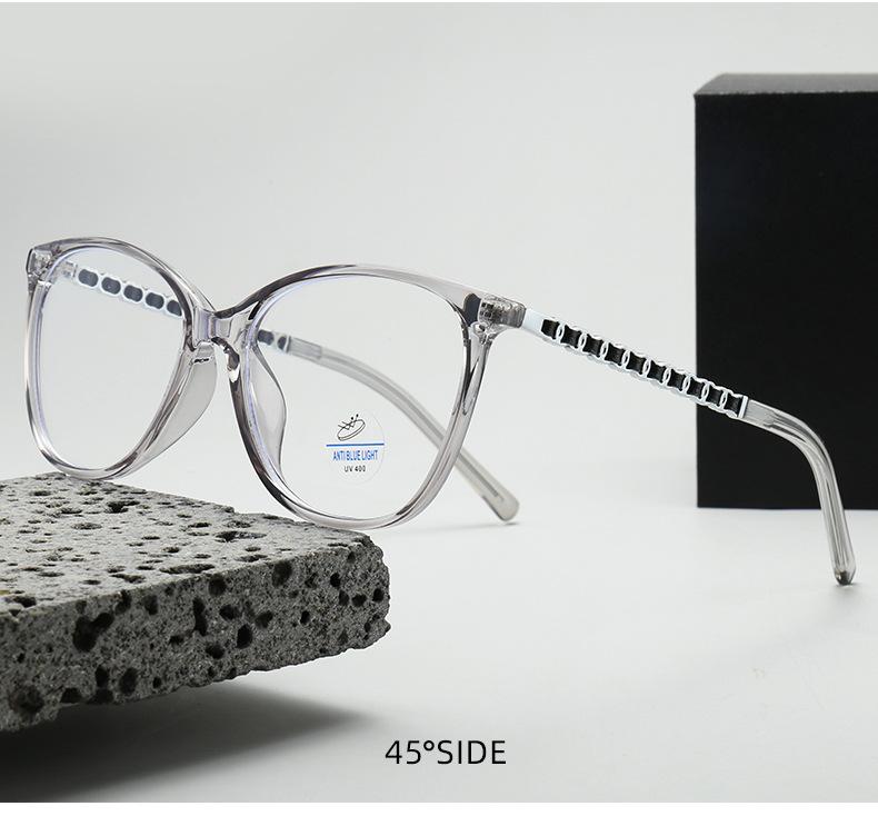 Las nuevas gafas con montura se pueden equipar con monturas de gafas para miopía, lentes planas con luz azul para mujer sin maquillaje.