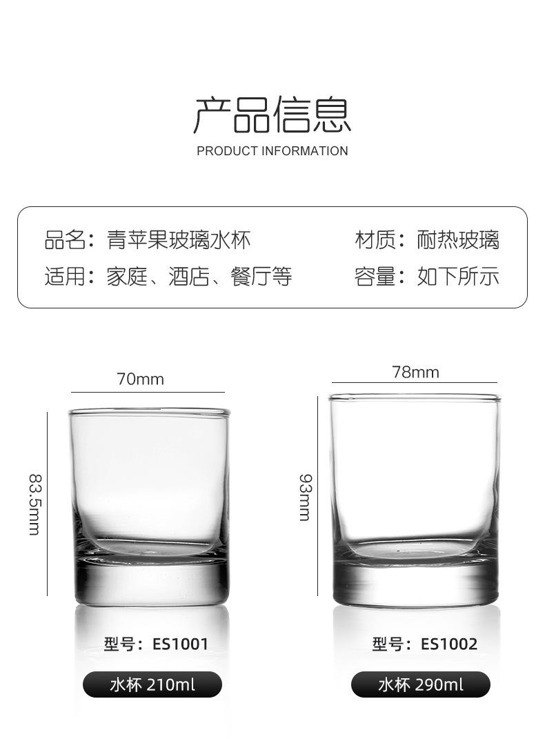 Vaso de vidrio resistente al calor de manzana verde, vaso recto, vaso de té, vaso de jugo, vaso de cerveza, vaso de leche, logotipo imprimible