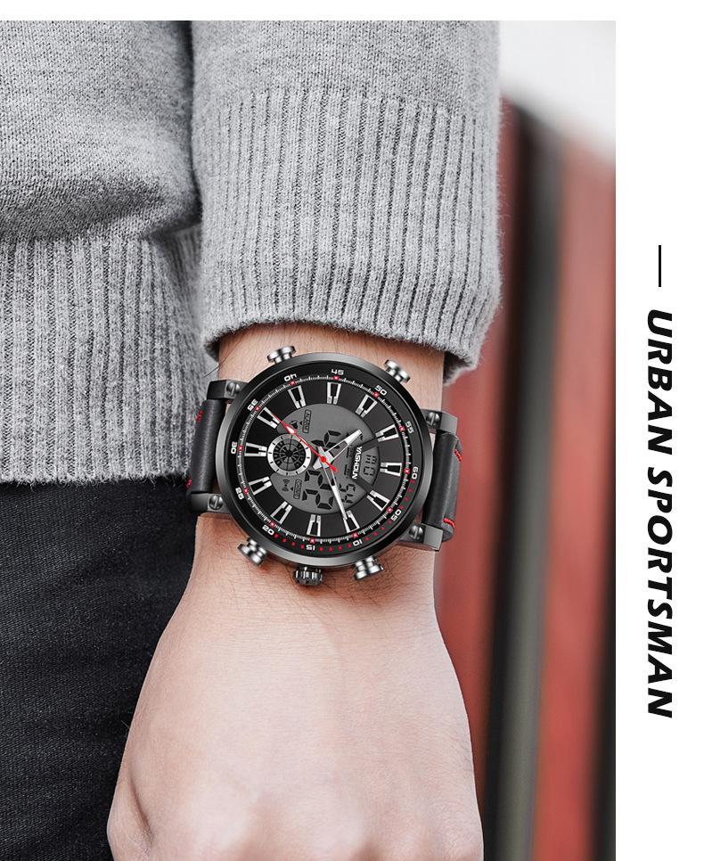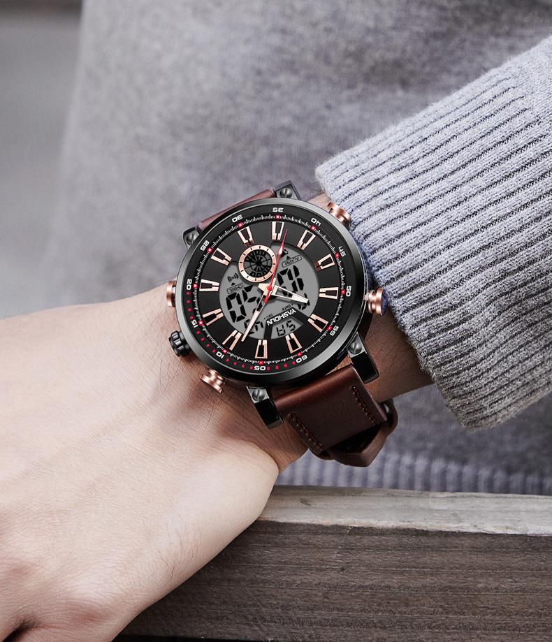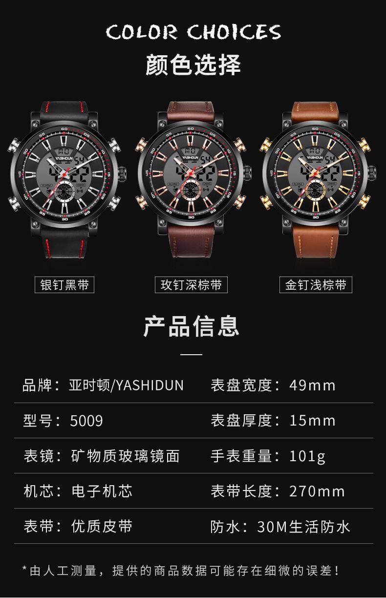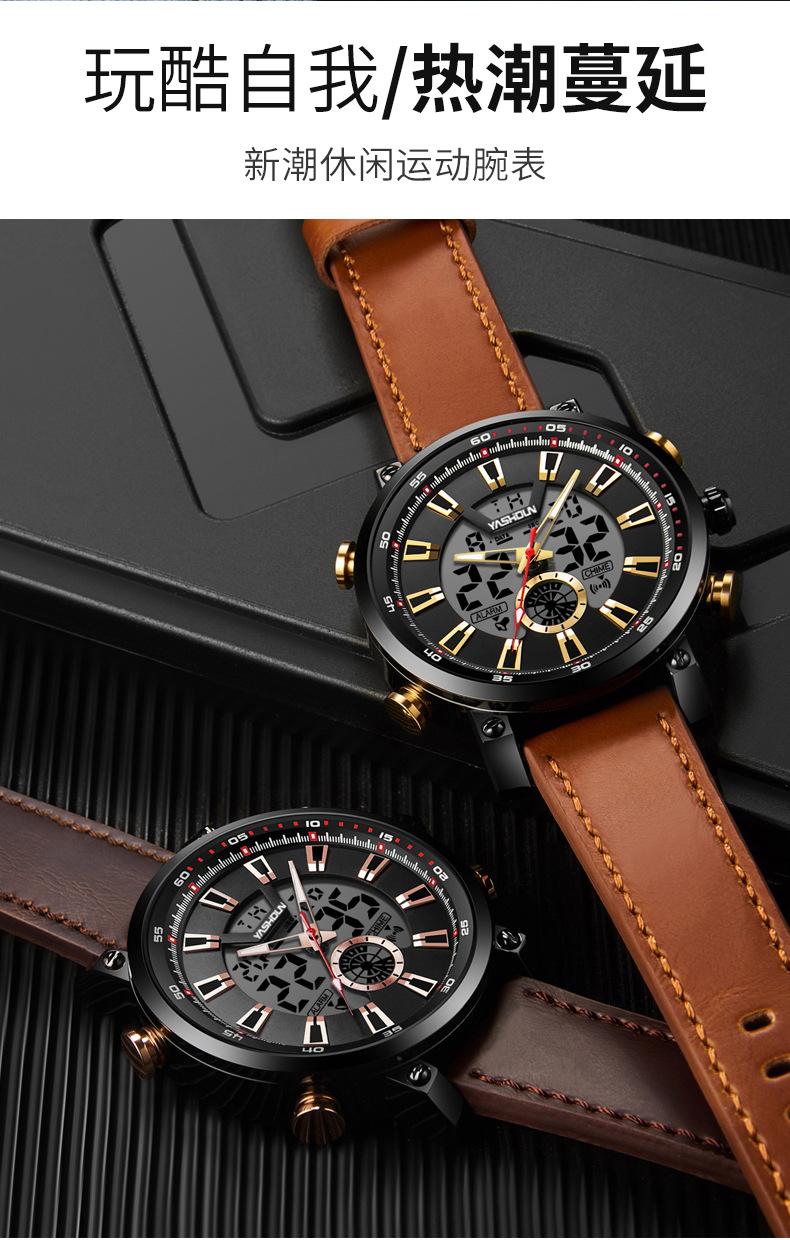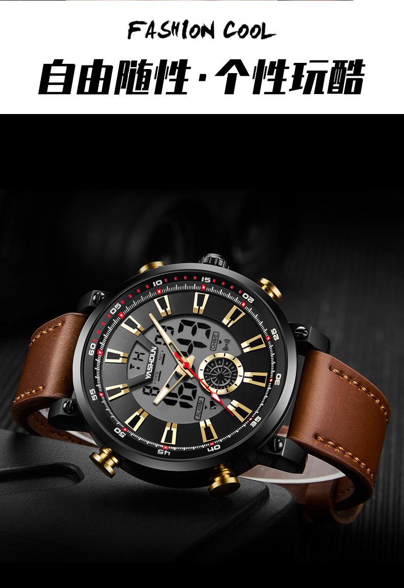 Reloj de cuarzo multifuncional, deportivo, resistente al agua, de moda para hombre, luminoso, con esfera grande, electrónico, para comercio exterior.