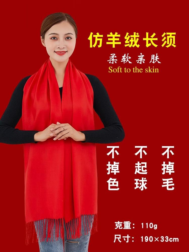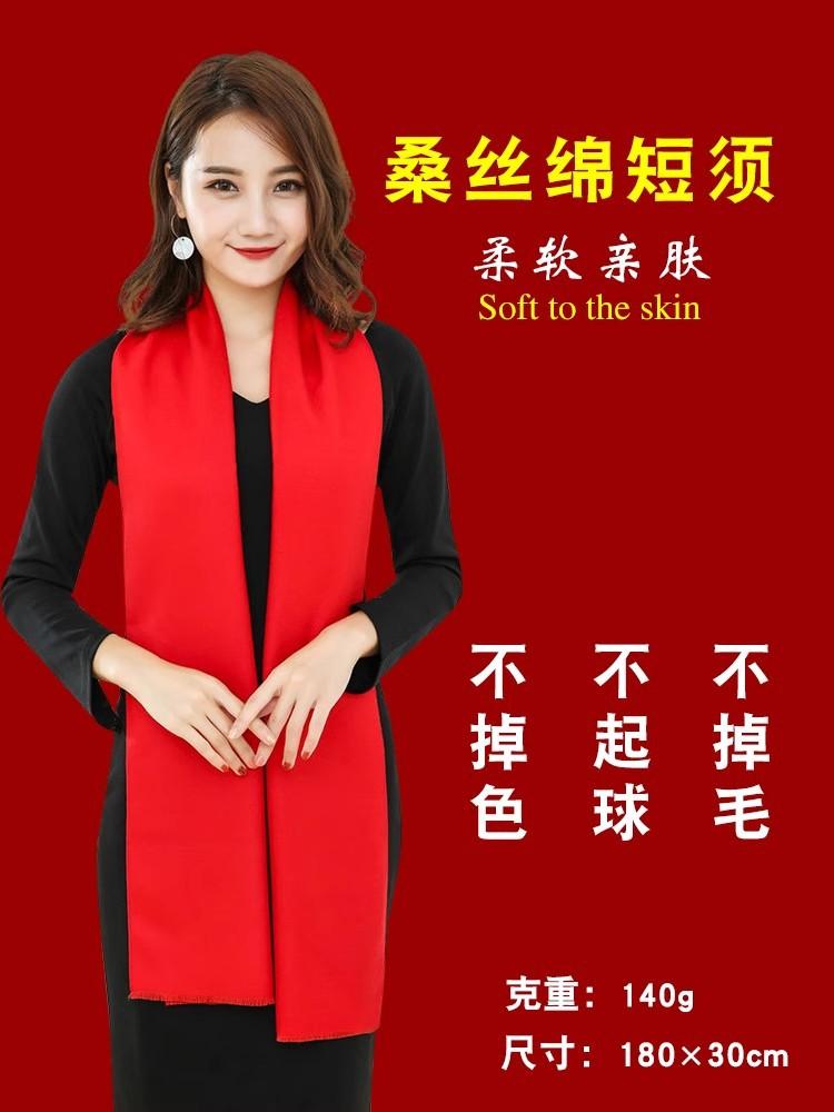 Bufanda roja personalizada para reuniones anuales, bufanda con logotipo personalizado, bufanda roja china de alta gama con estampado bordado, fabricante de regalos del Año del Dragón