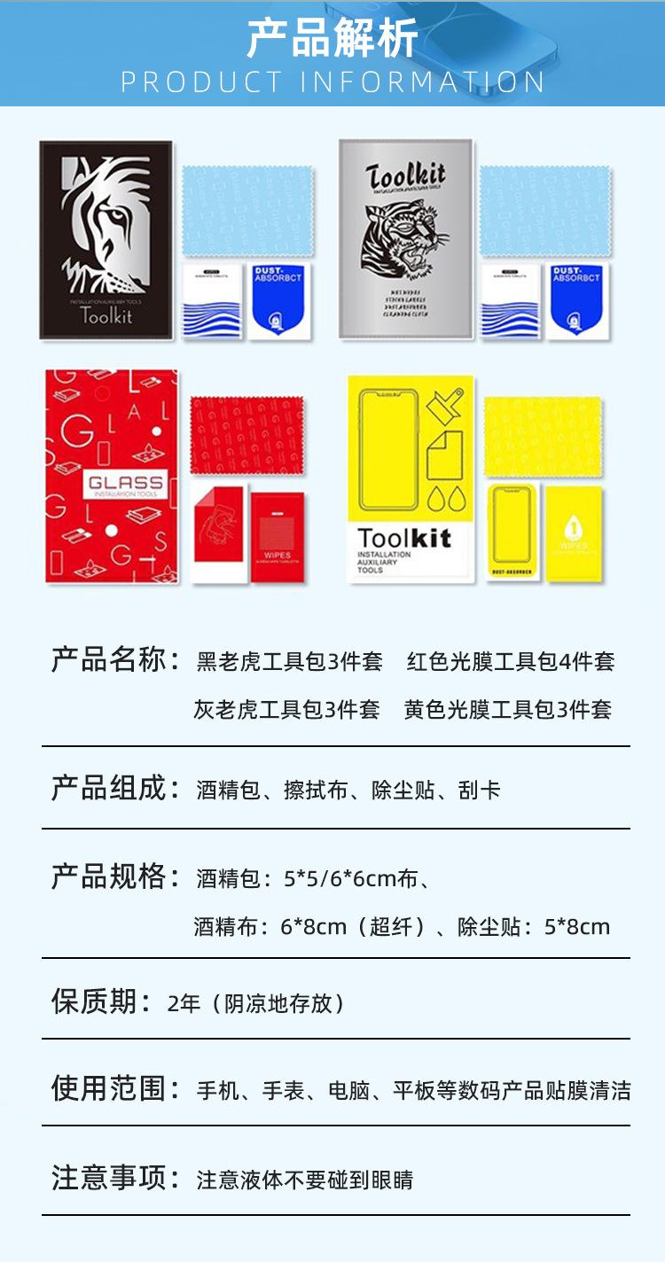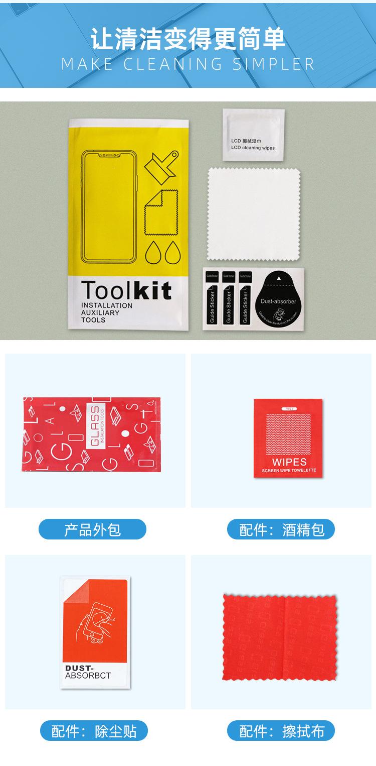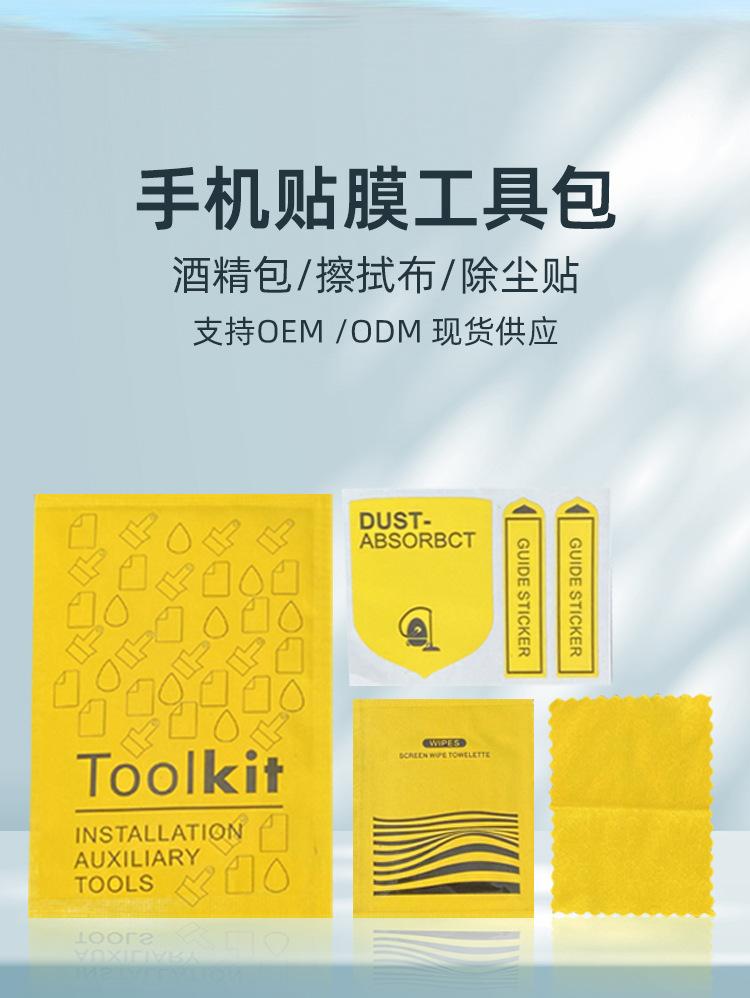 Bolsa de alcohol seca y húmeda, pasta quitapolvo, paño de limpieza, tarjeta para raspar, película templada, paquete de accesorios auxiliares, kit de película para teléfono móvil