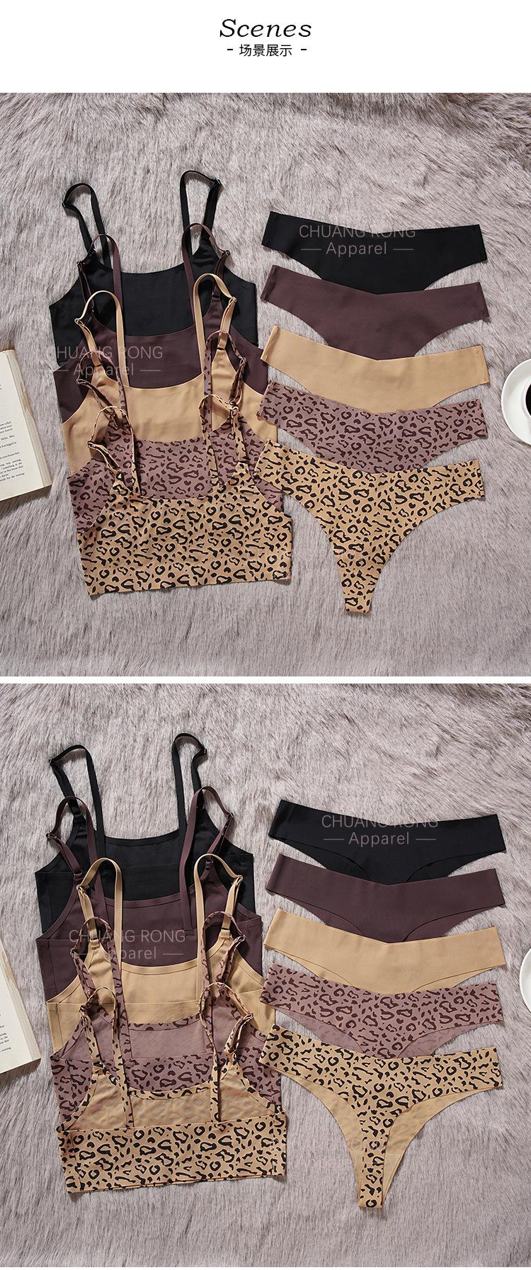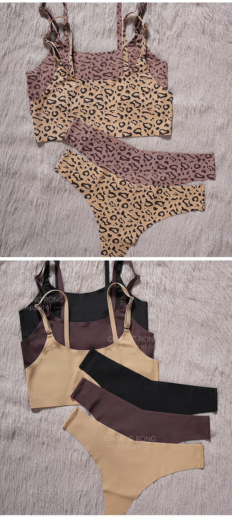 Conjunto de sujetador sexy de talla grande para mujer, de seda helada, sin costuras, sin aros de acero, con fruncido en el pecho, con estampado de leopardo, ropa interior femenina