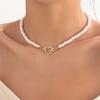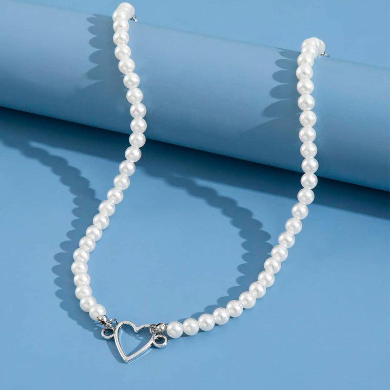 Collar con colgante de perla de imitación de amor para mujer, cadena elegante de lujo, ligera y combinable, venta al por mayor