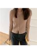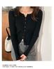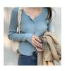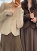 Top Cárdigan de Punto de Color Sólido con Cuello en V Estilo Coreano para Mujer, Abrigo Suéter Corto de Manga Larga para Otoño e Invierno, Estilo Suave