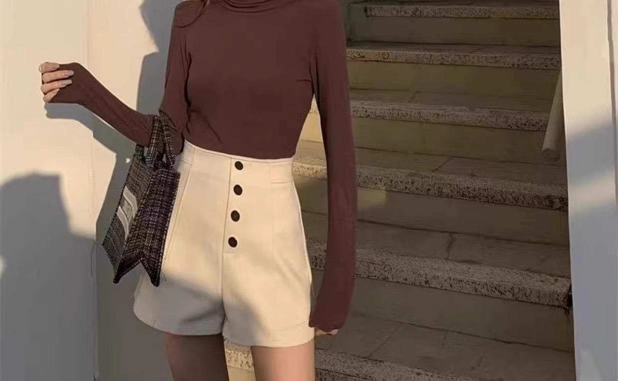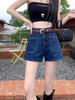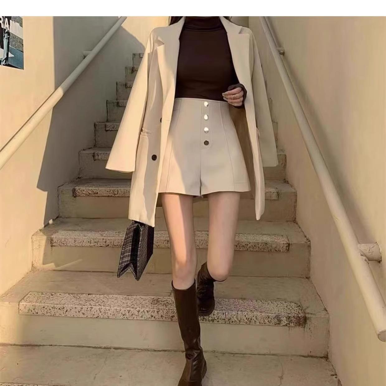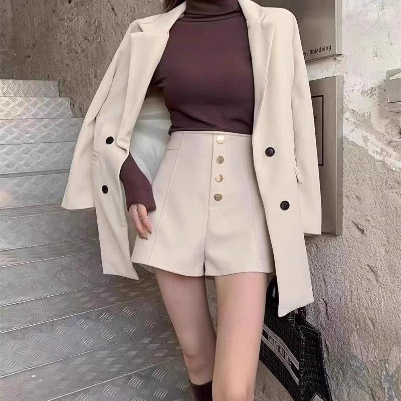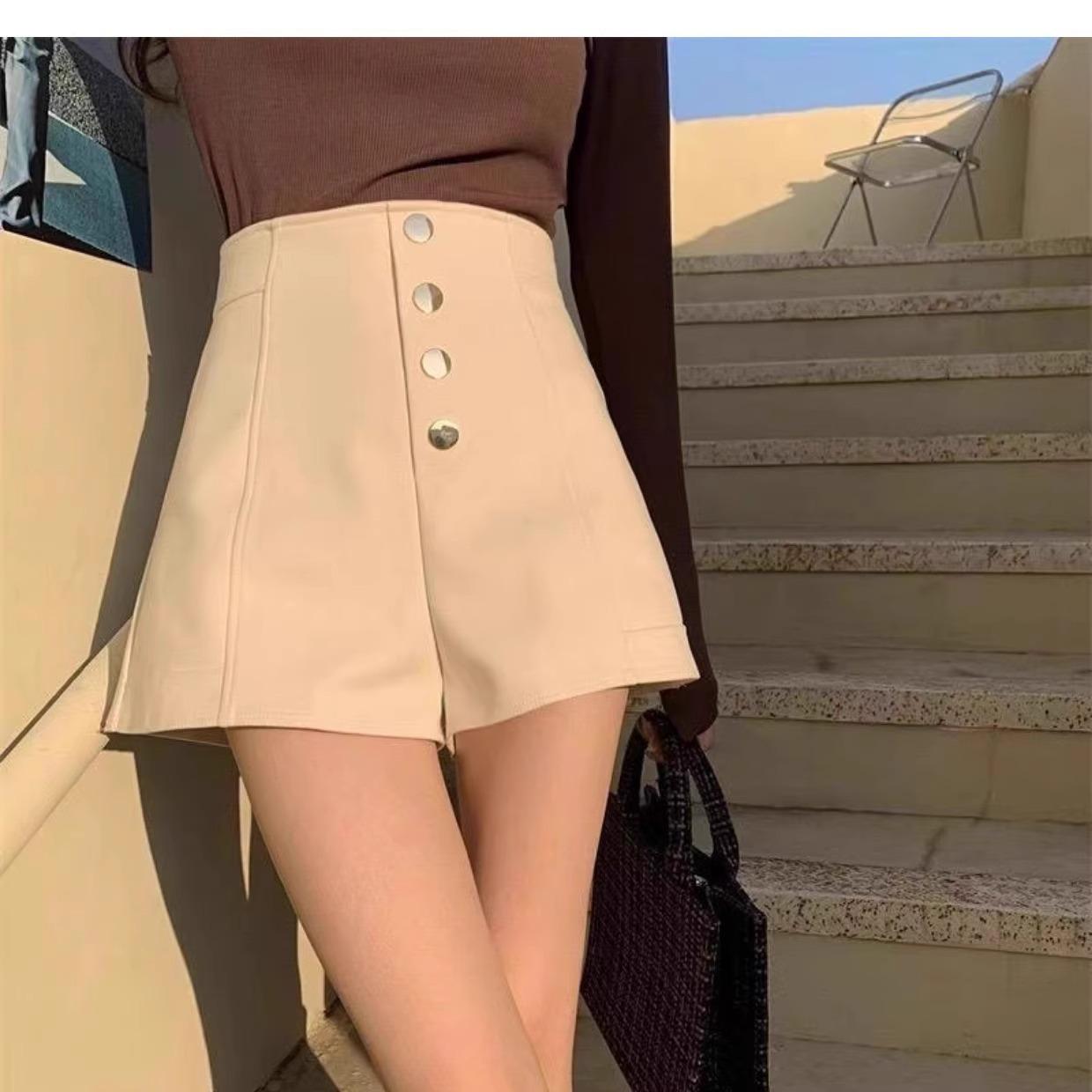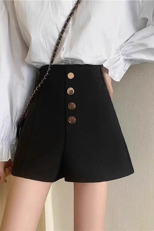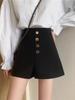 Pantalones cortos Sense de verano para mujer, con botones, cintura alta, pierna ancha, a la moda, irregulares, con forma de A, adelgazantes, 2024