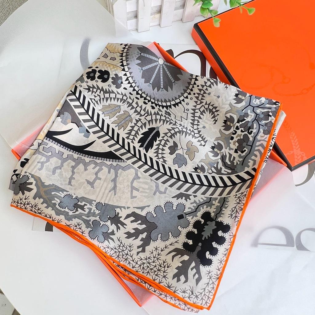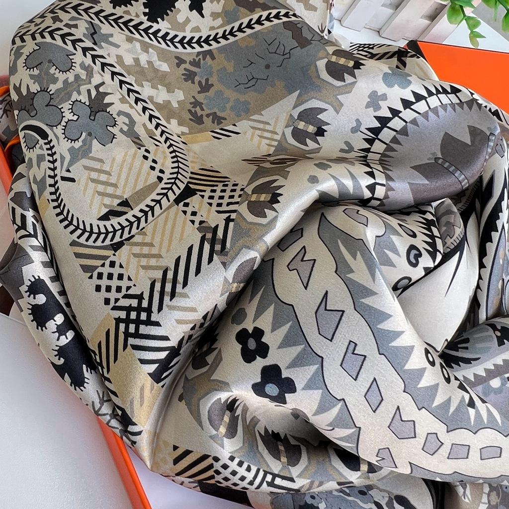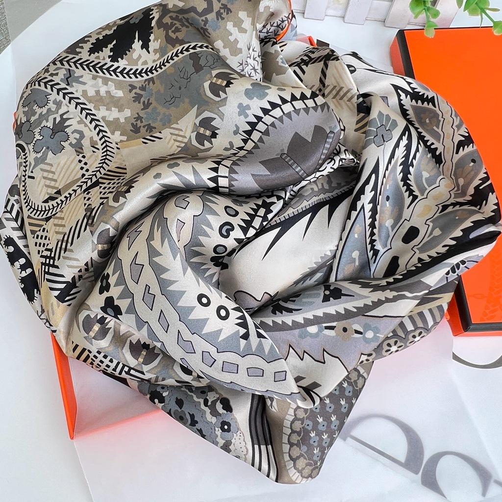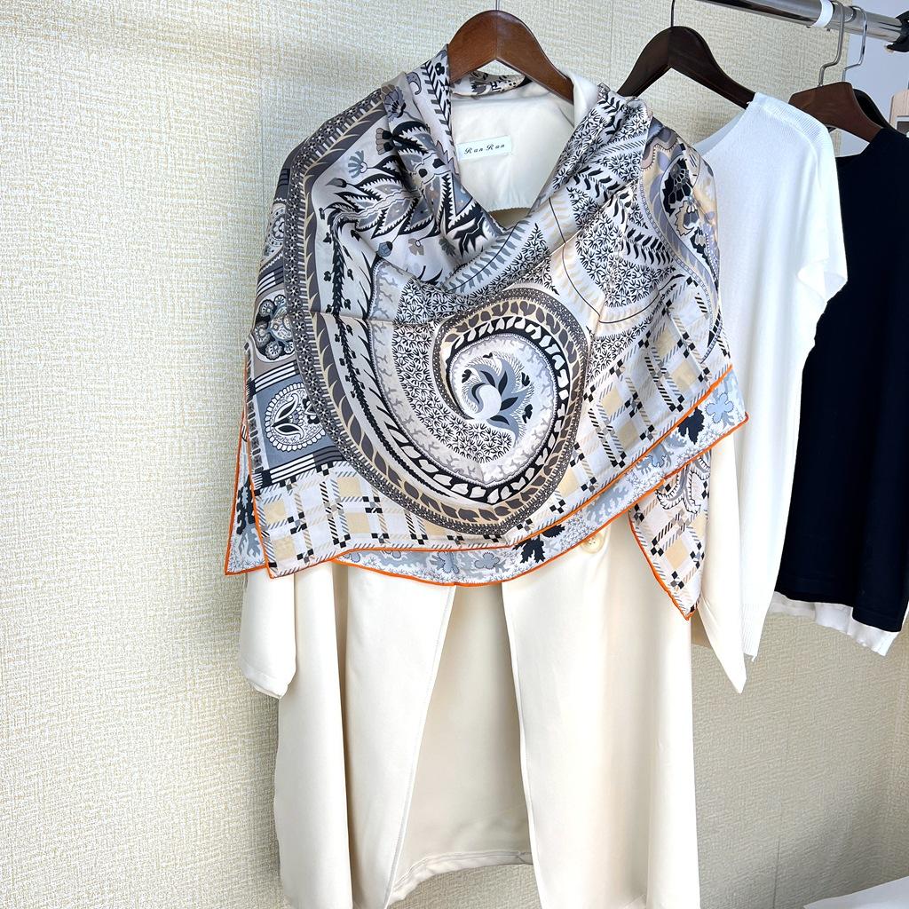 Nuevo Pañuelo de Seda Gris Blanco de Alta Gama para Mujer, Grande Cuadrado Fino, Combinable con Todo, Protector Solar, Pañuelo de Seda de Morera, Chal de Doble Uso