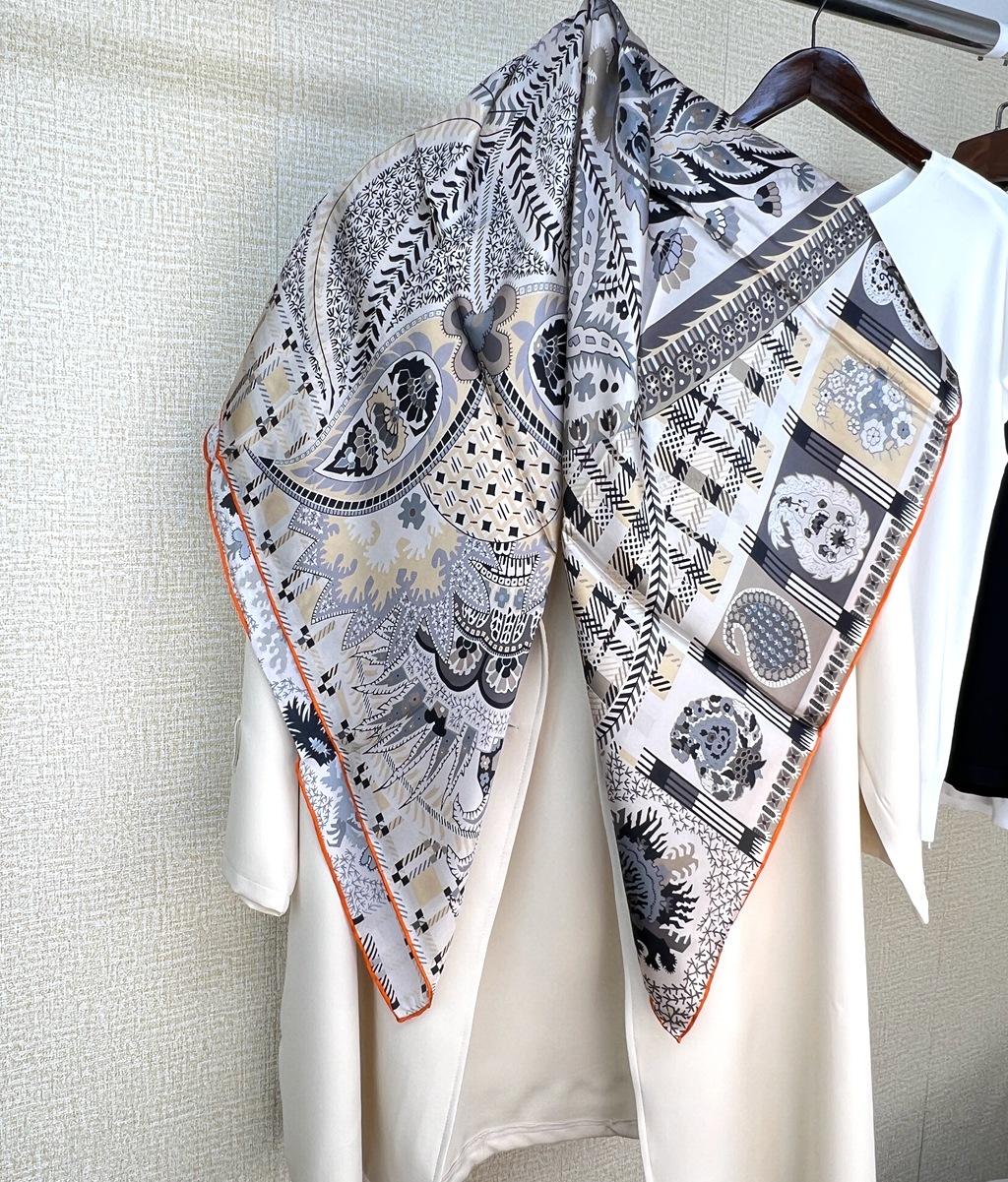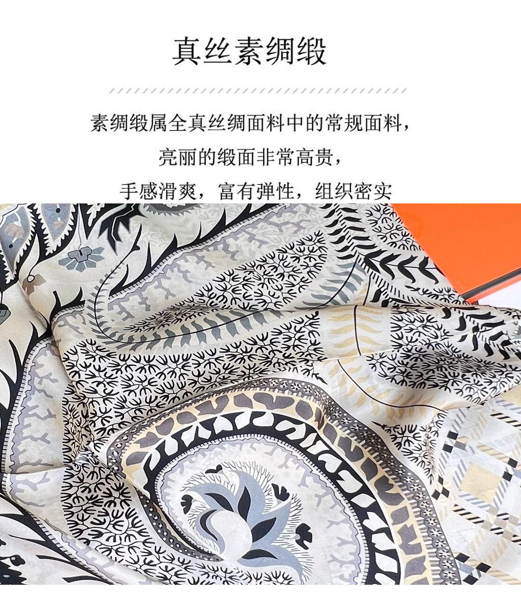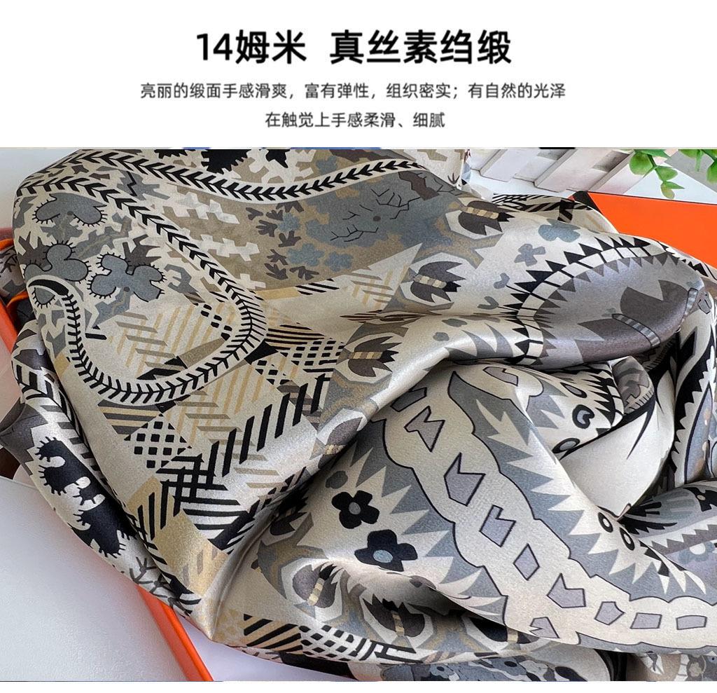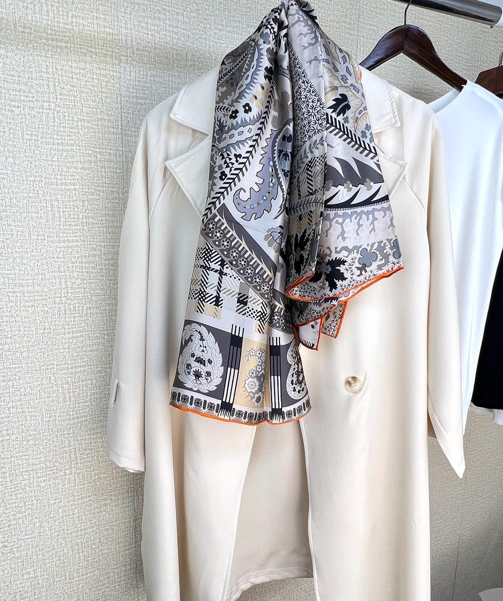 Nuevo Pañuelo de Seda Gris Blanco de Alta Gama para Mujer, Grande Cuadrado Fino, Combinable con Todo, Protector Solar, Pañuelo de Seda de Morera, Chal de Doble Uso