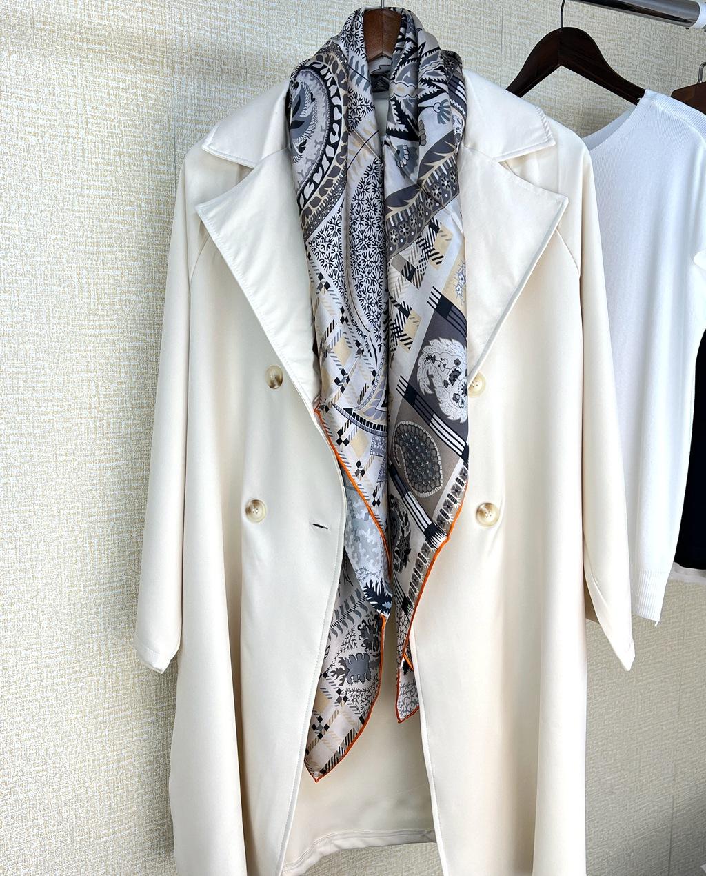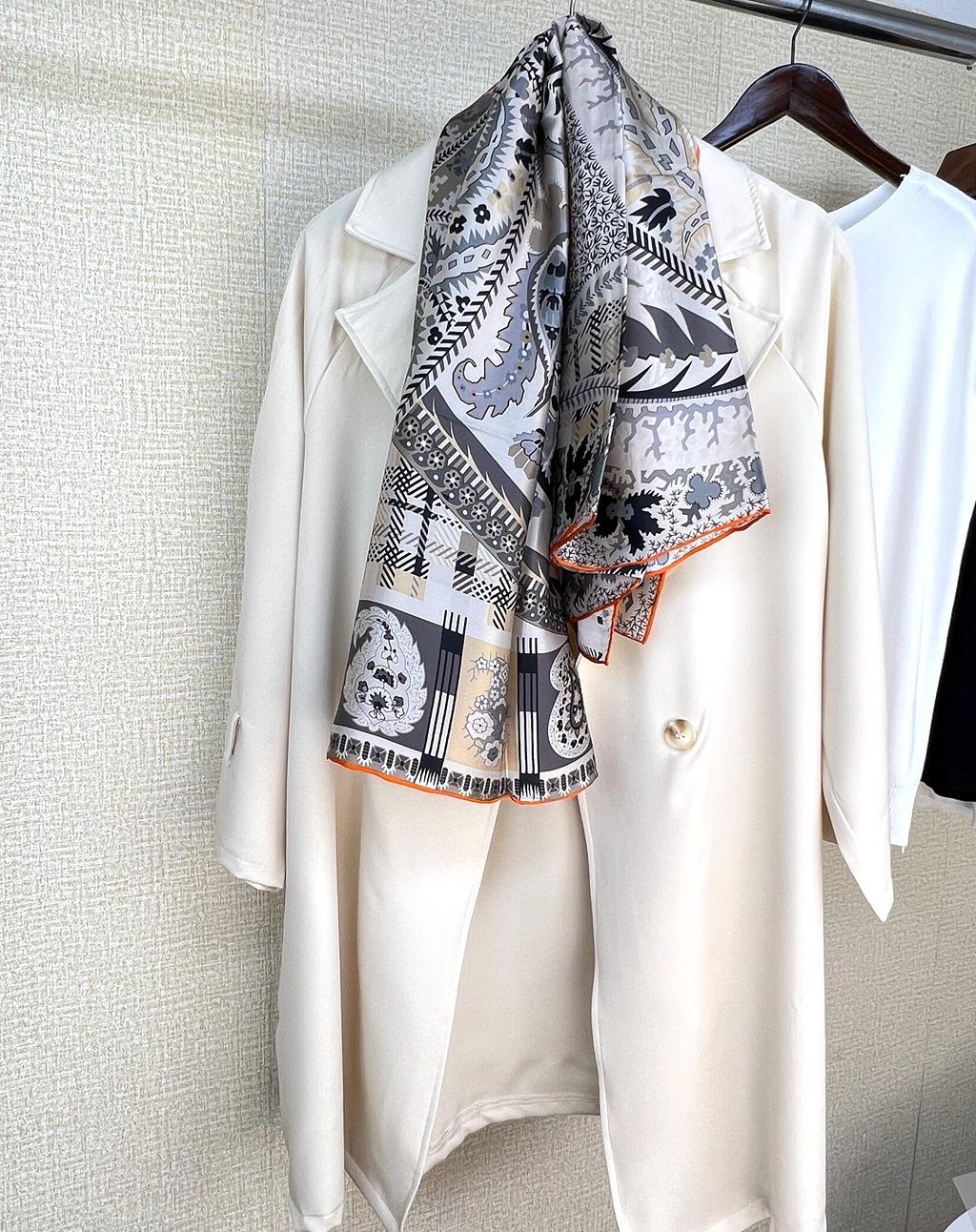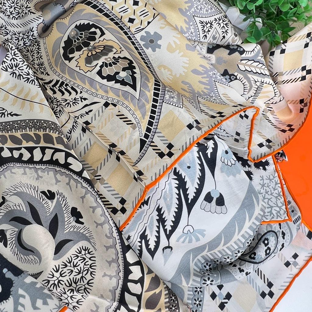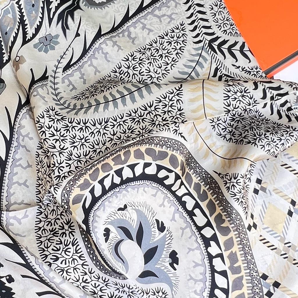 Nuevo Pañuelo de Seda Gris Blanco de Alta Gama para Mujer, Grande Cuadrado Fino, Combinable con Todo, Protector Solar, Pañuelo de Seda de Morera, Chal de Doble Uso