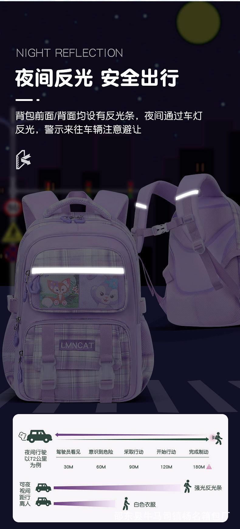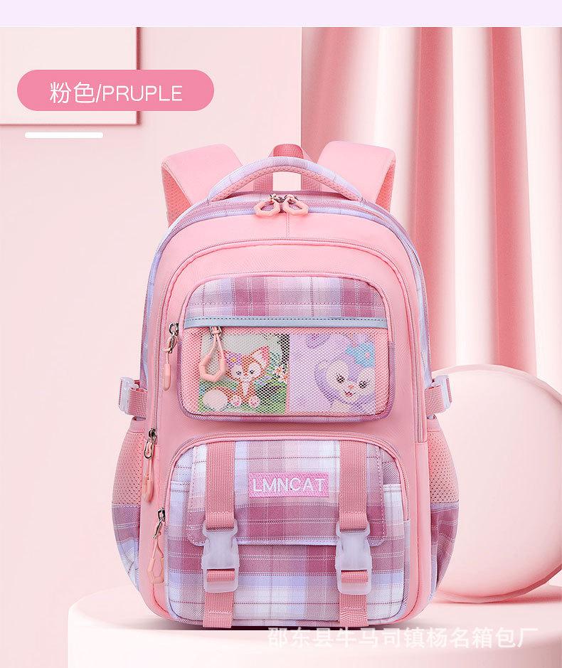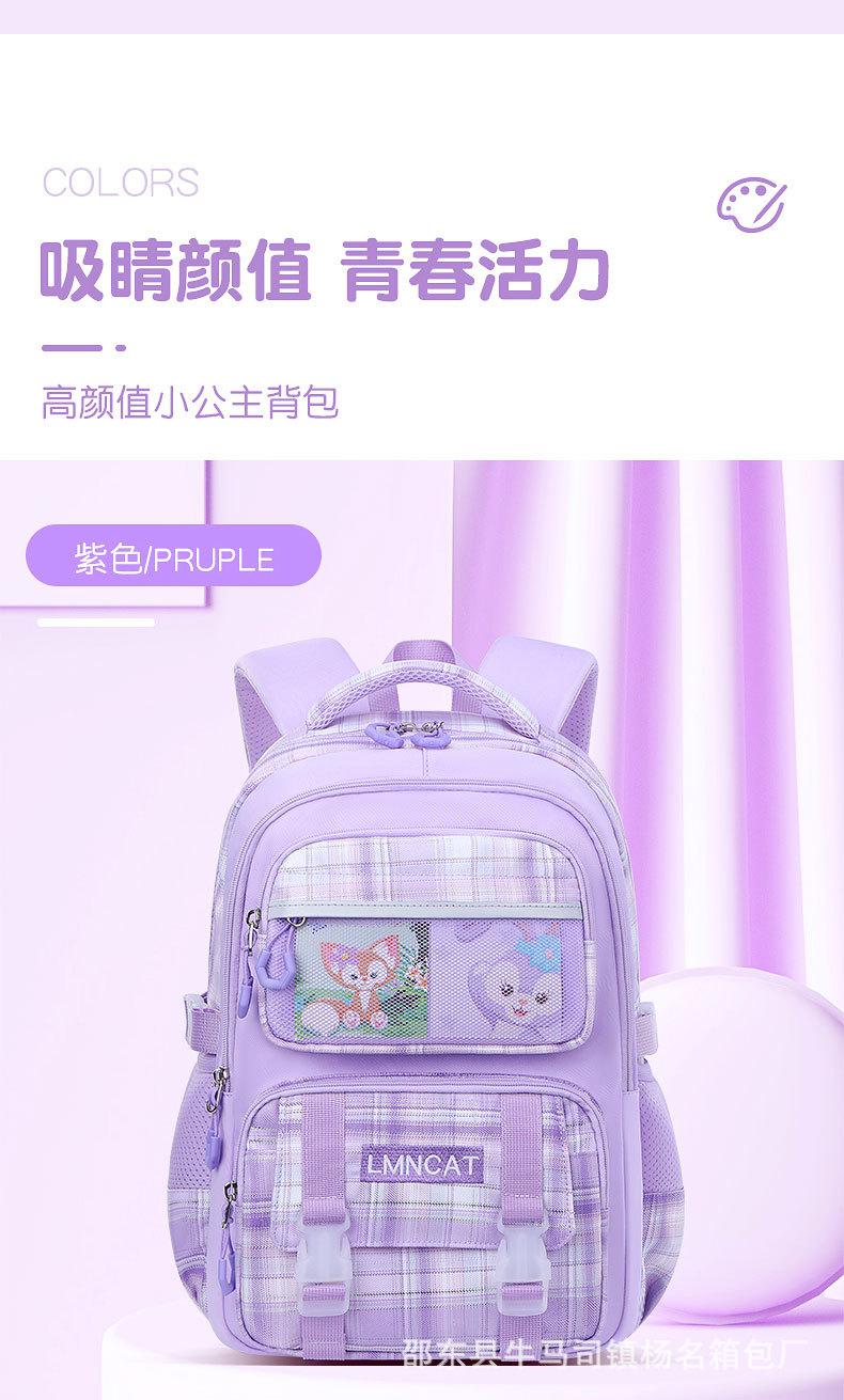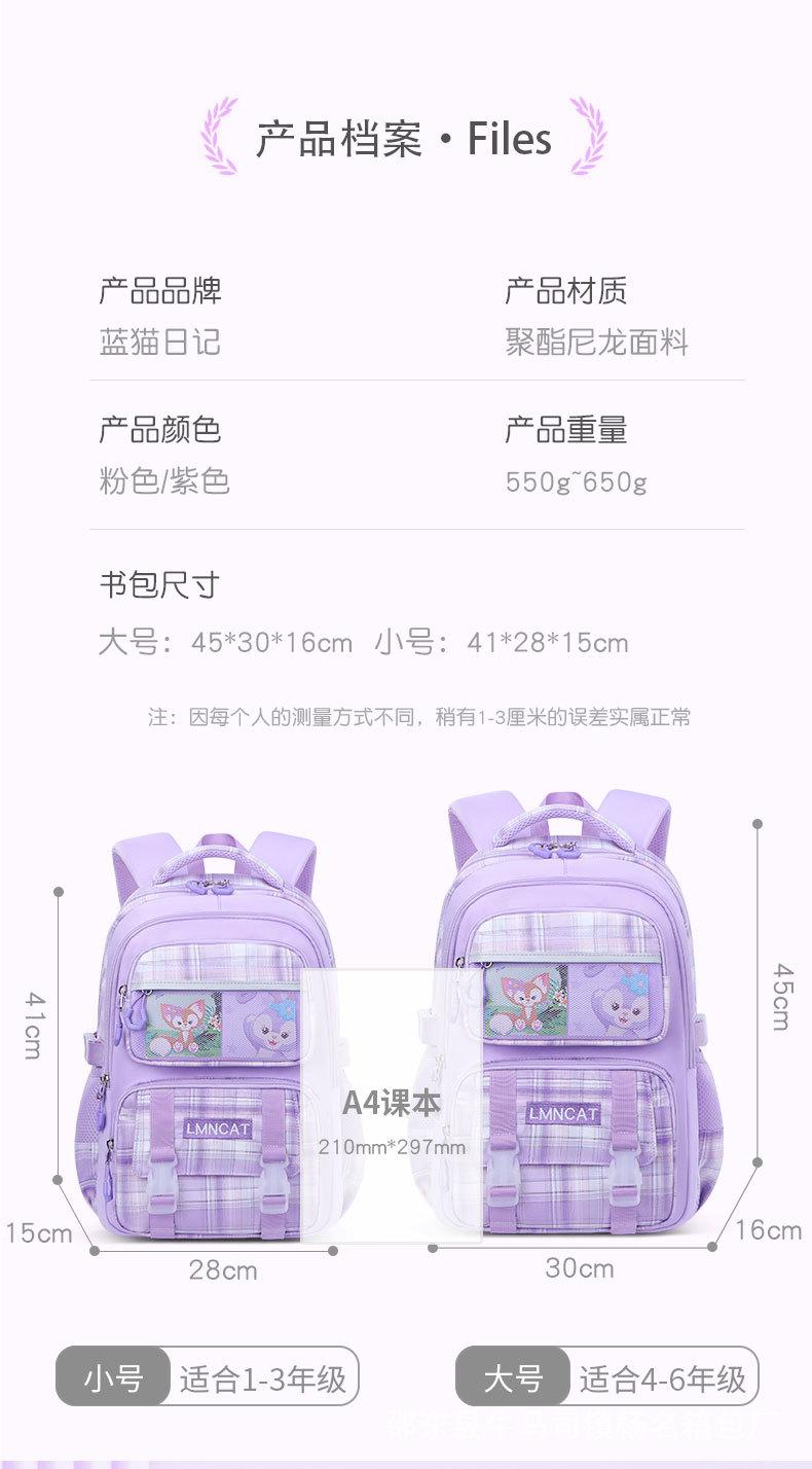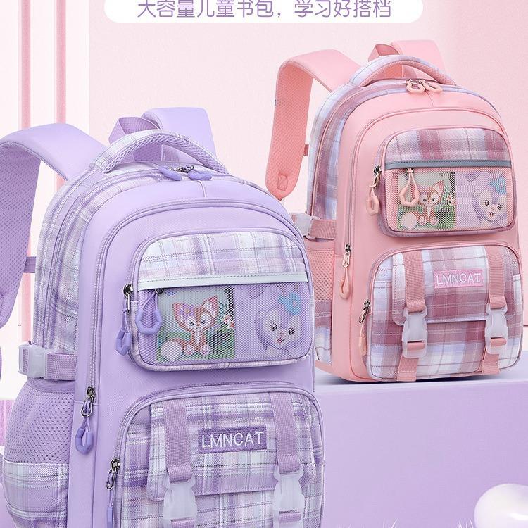 Nueva mochila escolar para estudiantes de primaria, para mujeres de 6 a 12 años, ligera, con protección de cresta, mochila de gran capacidad, con costuras animadas de dibujos animados
