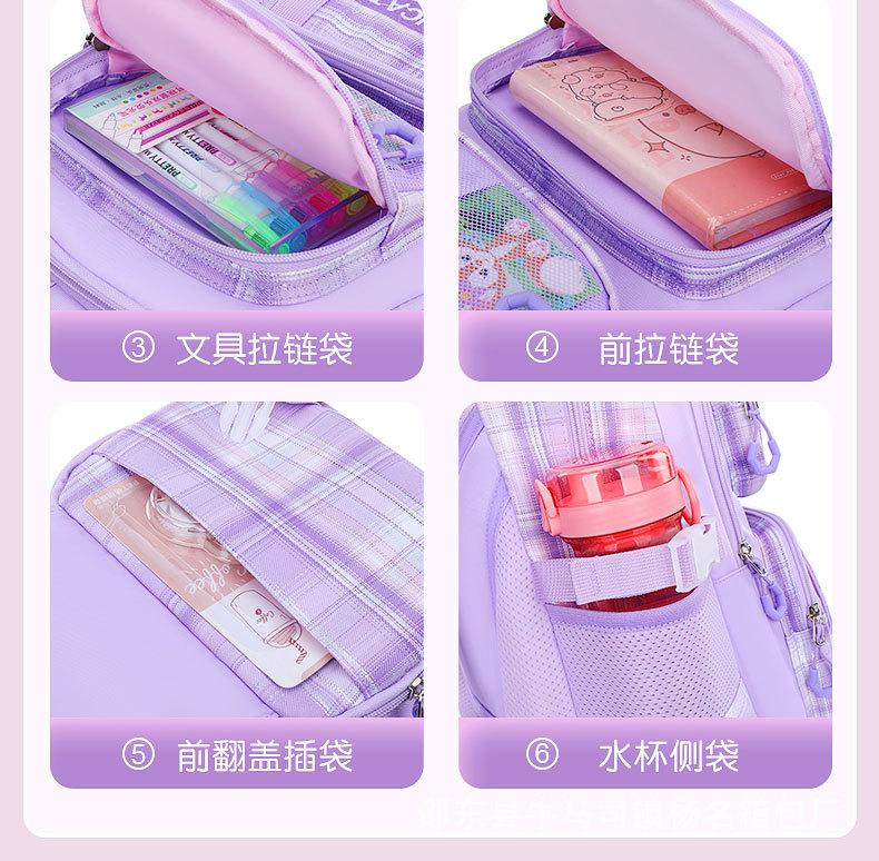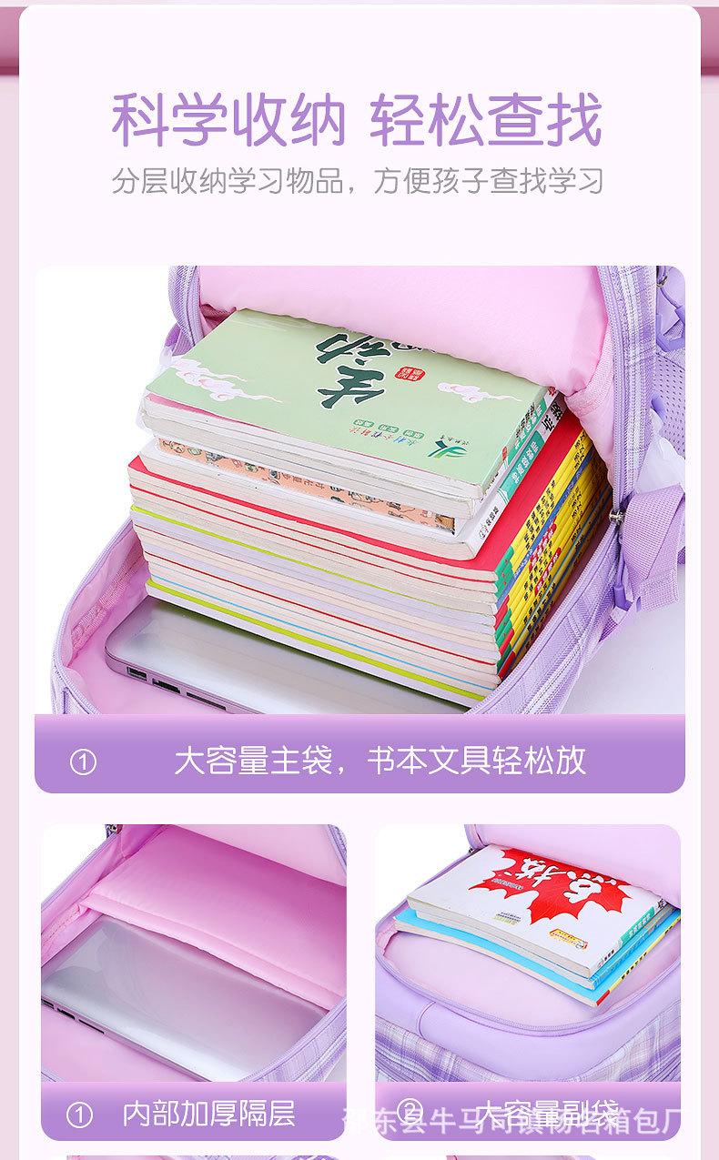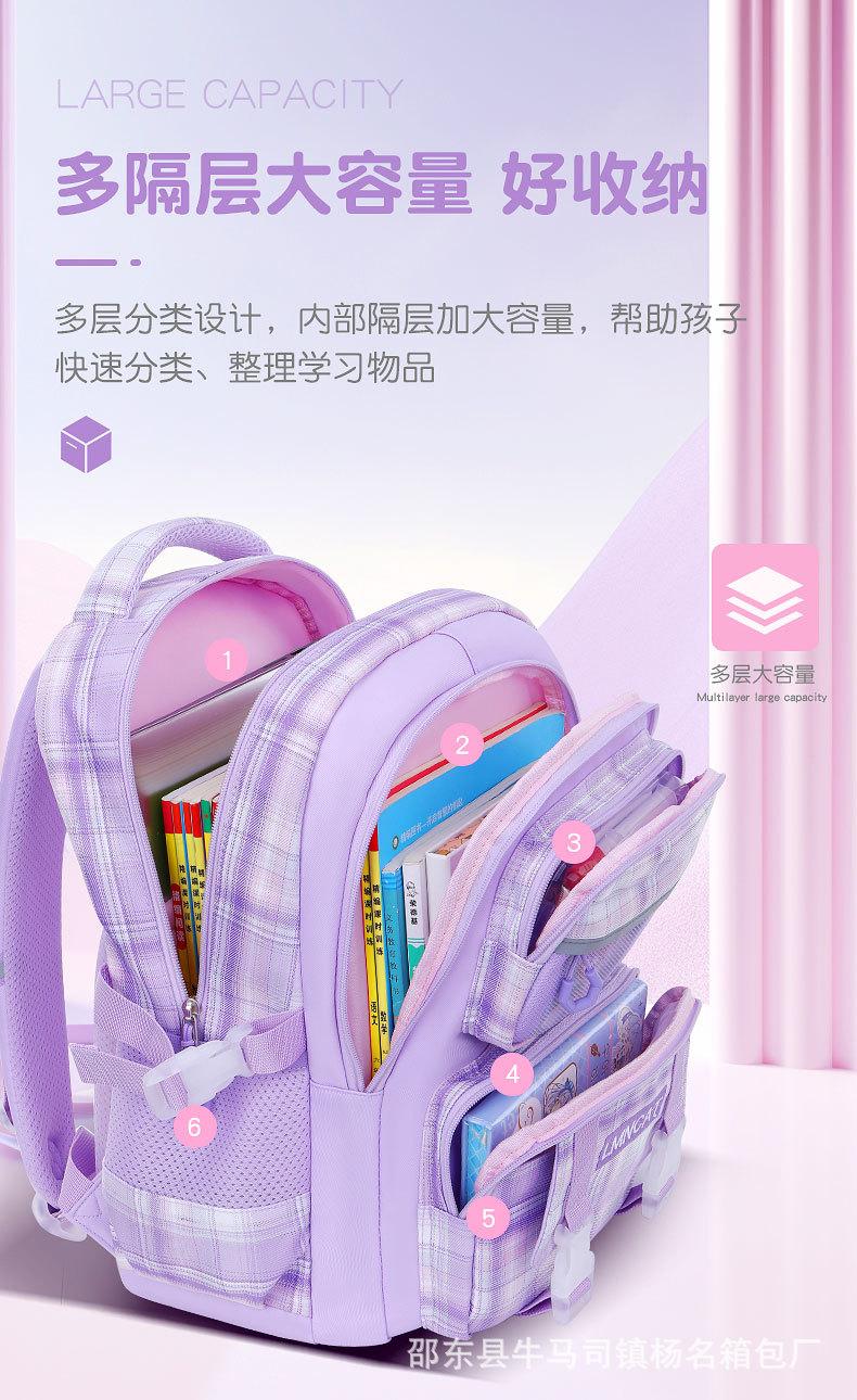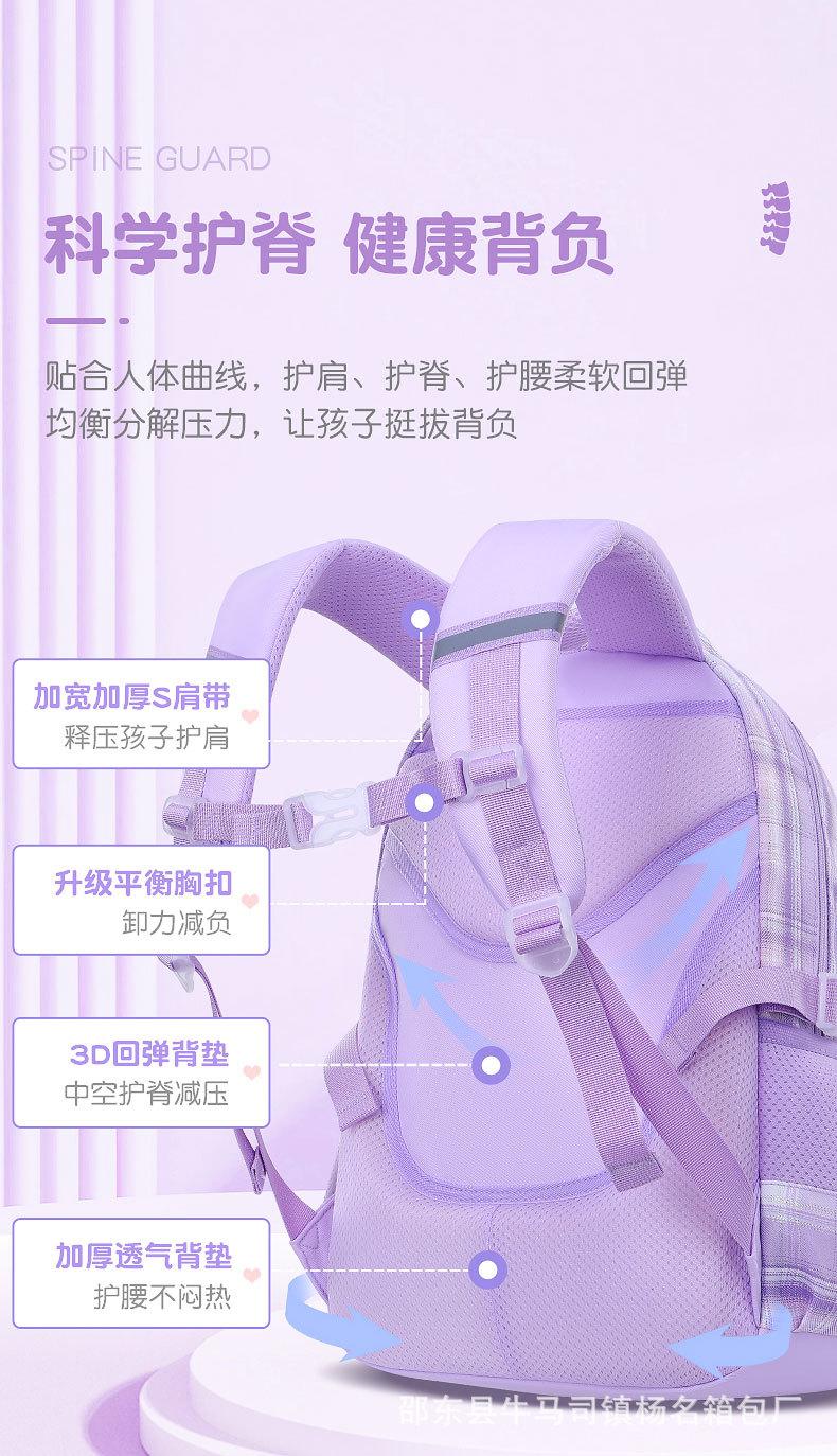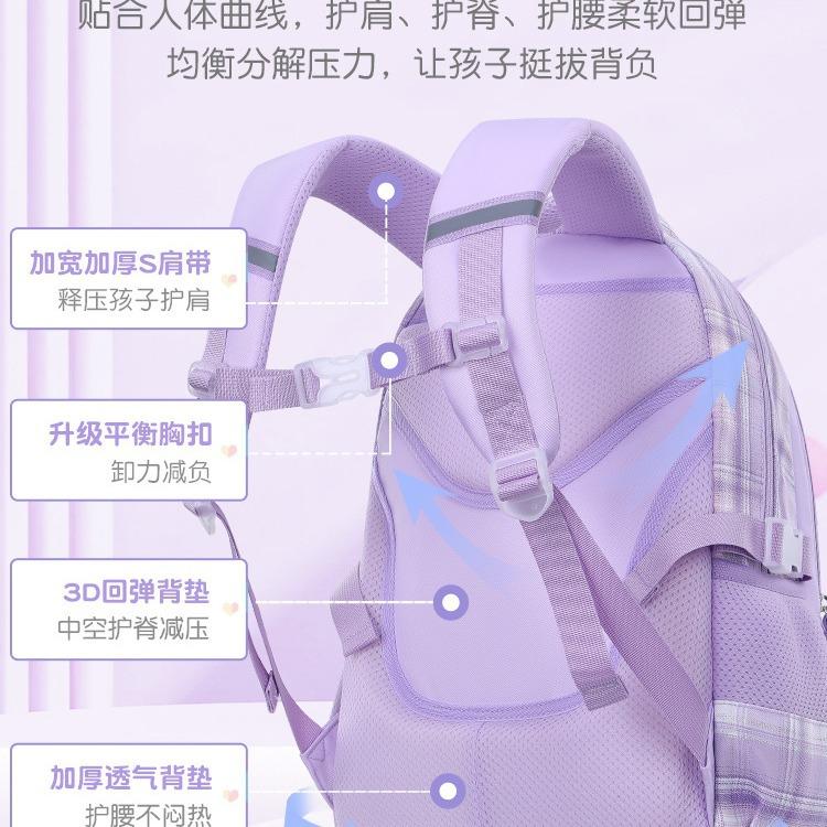 Nueva mochila escolar para estudiantes de primaria, para mujeres de 6 a 12 años, ligera, con protección de cresta, mochila de gran capacidad, con costuras animadas de dibujos animados
