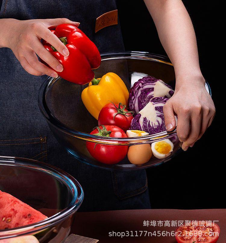 Tazón de Vidrio Transparente de Borosilicato Alto Grande Resistente a Altas Temperaturas Engrosado para Escurrir y Almacenar Especial para Horno Microondas y Lavabo