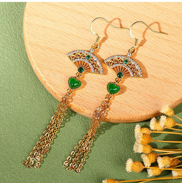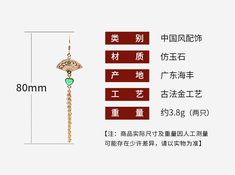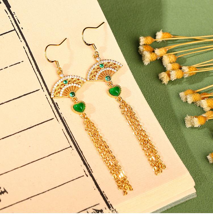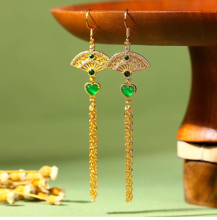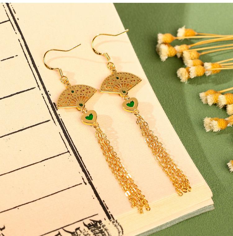 [Socialité noble] Aretes de borla con forma de abanico de estilo nacional para rostro largo y delgado, adorno de amor, temperamento, aretes de estilo nacional