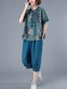 Traje de dos piezas de lino y algodón de estilo coreano holgado de talla grande que cubre la carne estampado para mujer 2024 Verano Nuevo traje de moda