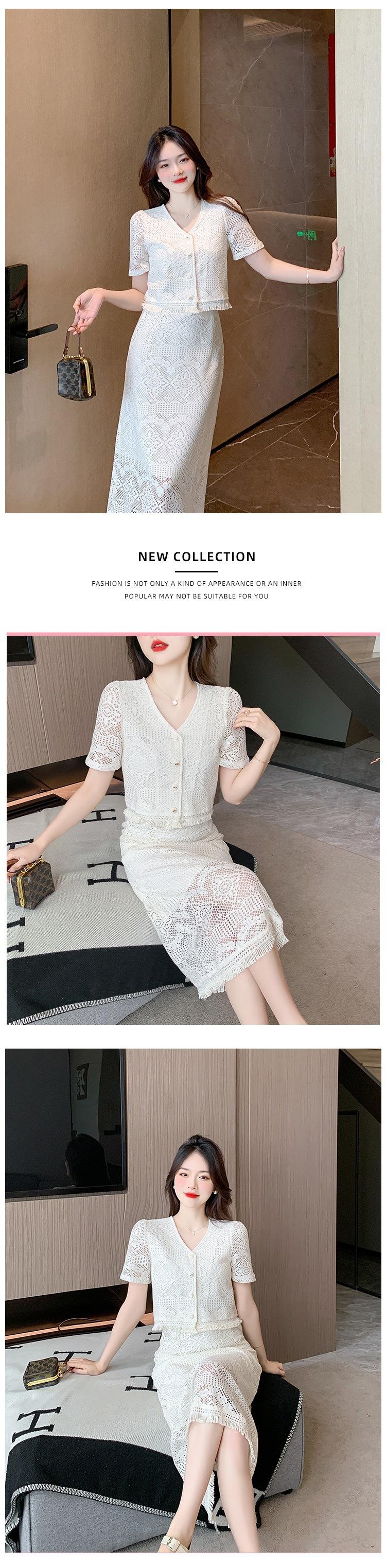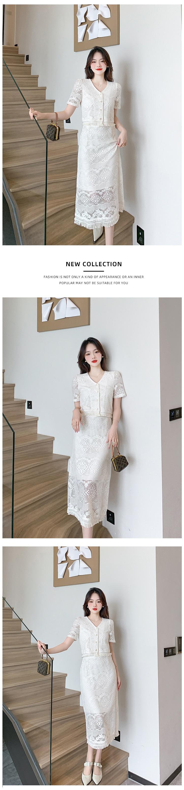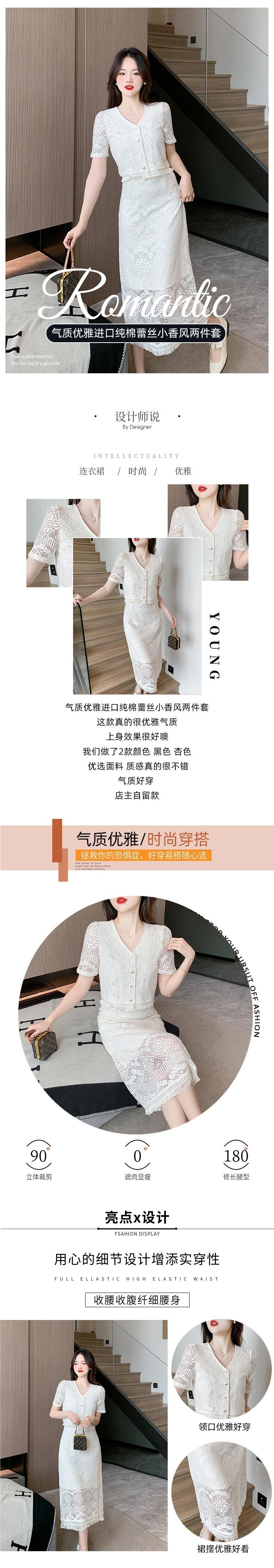 Foto real diseño 2025 encaje estilo festivo falda francesa de dos piezas traje de moda nuevo de verano
