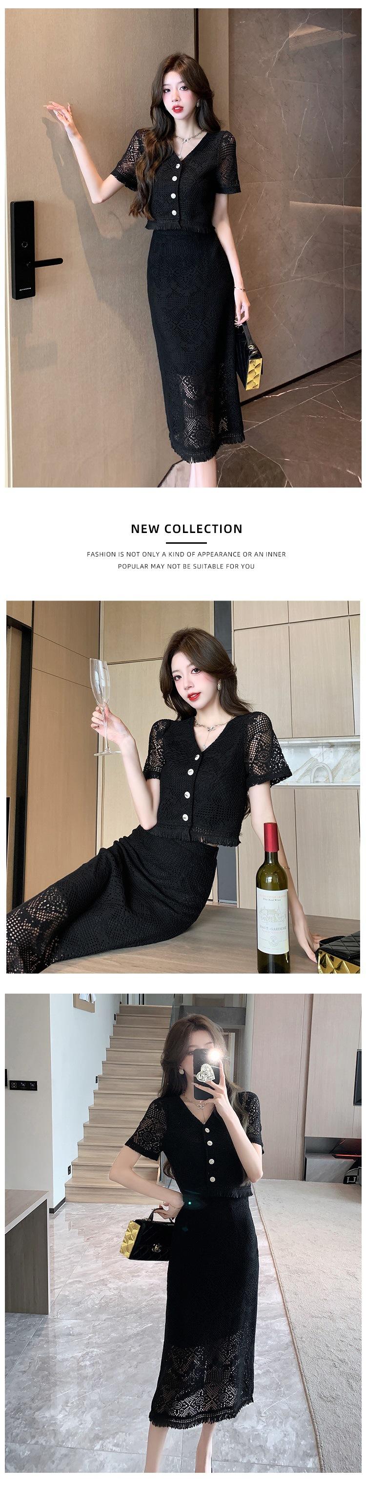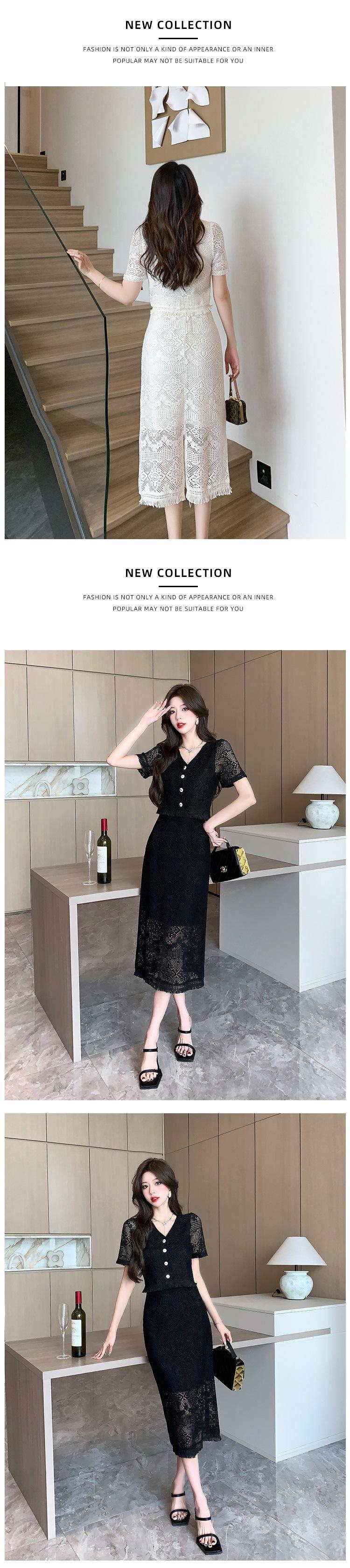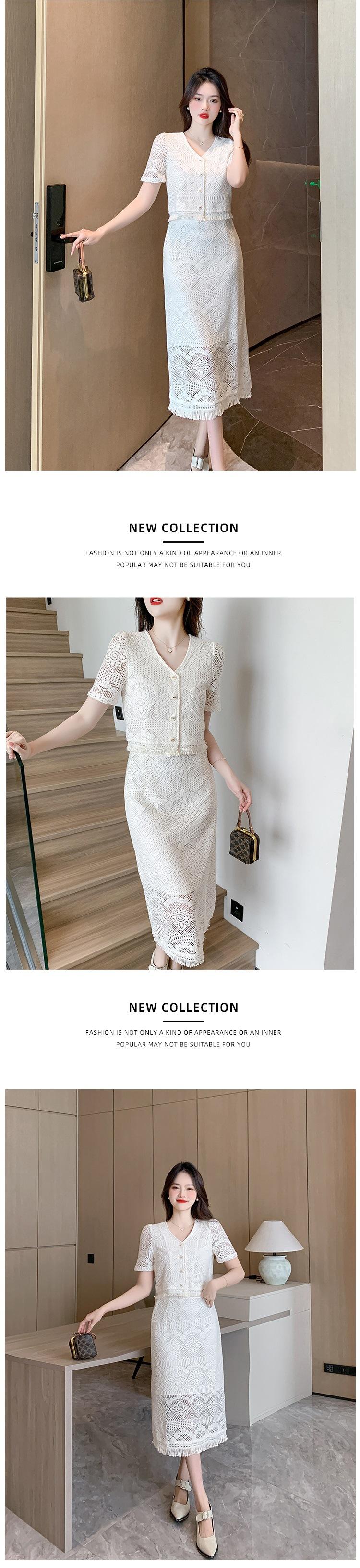Foto real diseño 2025 encaje estilo festivo falda francesa de dos piezas traje de moda nuevo de verano