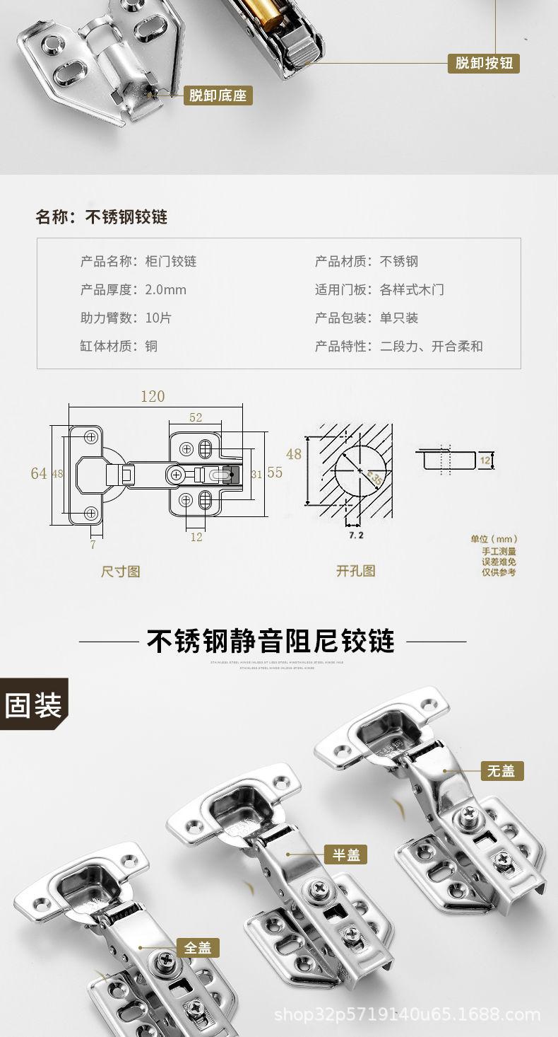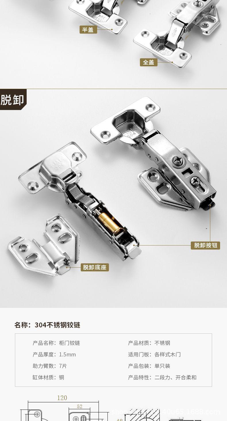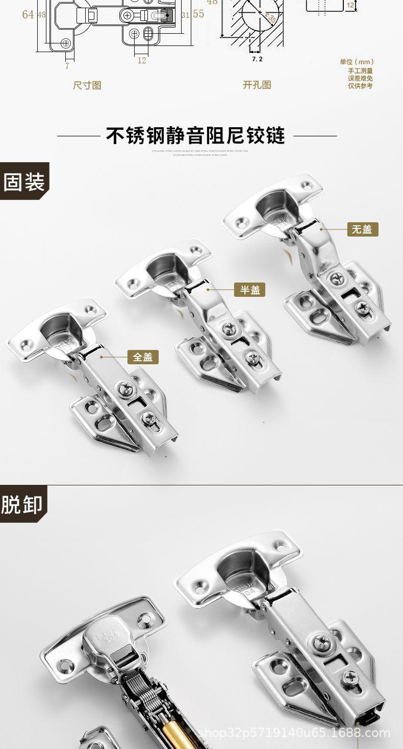 Bisagra de acero inoxidable 304 con amortiguador hidráulico para puerta, bisagra de puerta de armario con tubo de avión, bisagra de curva media