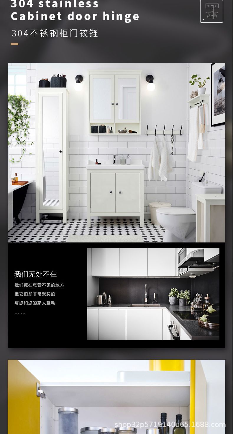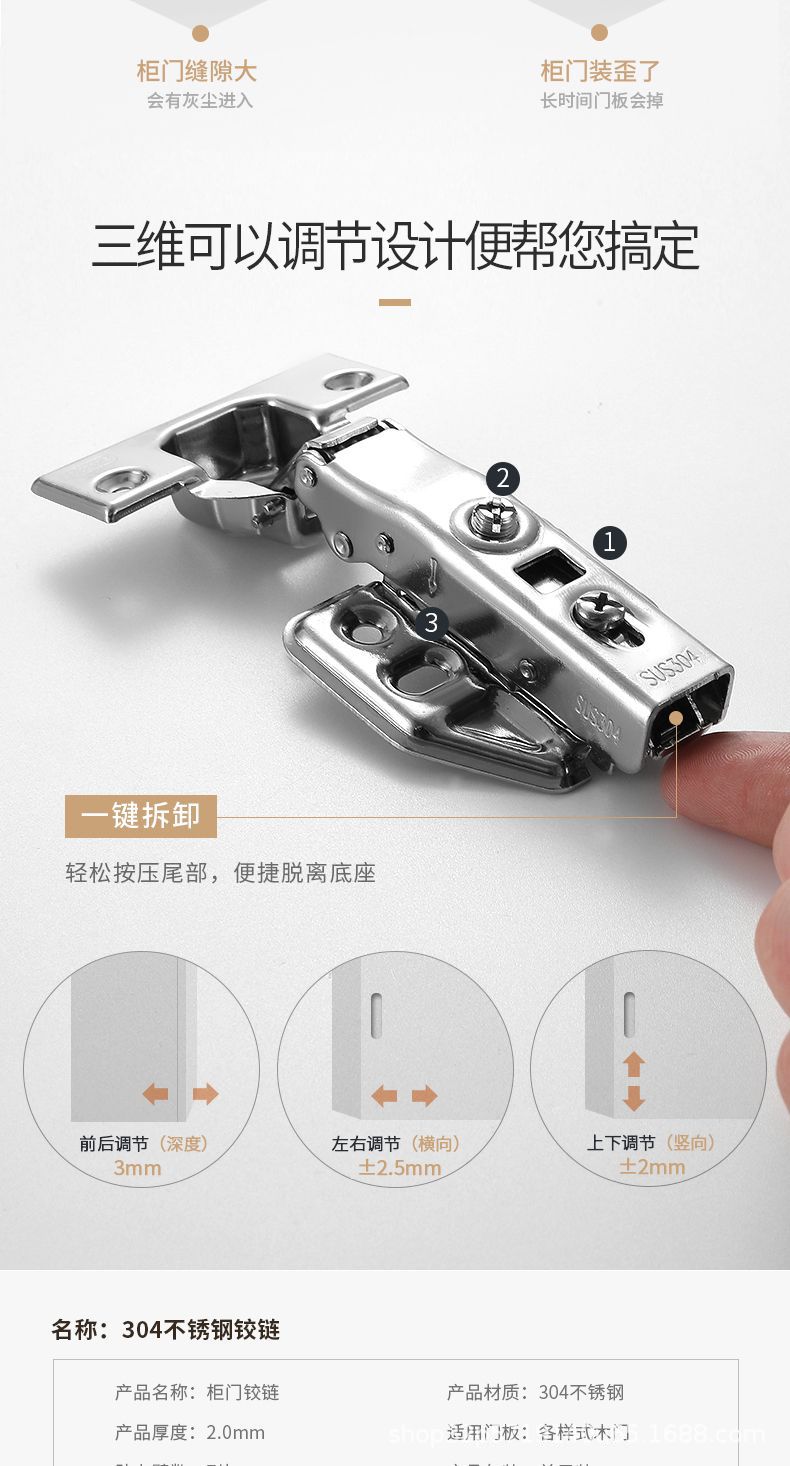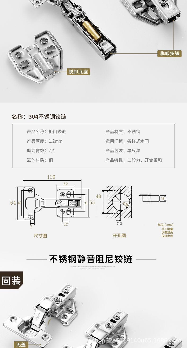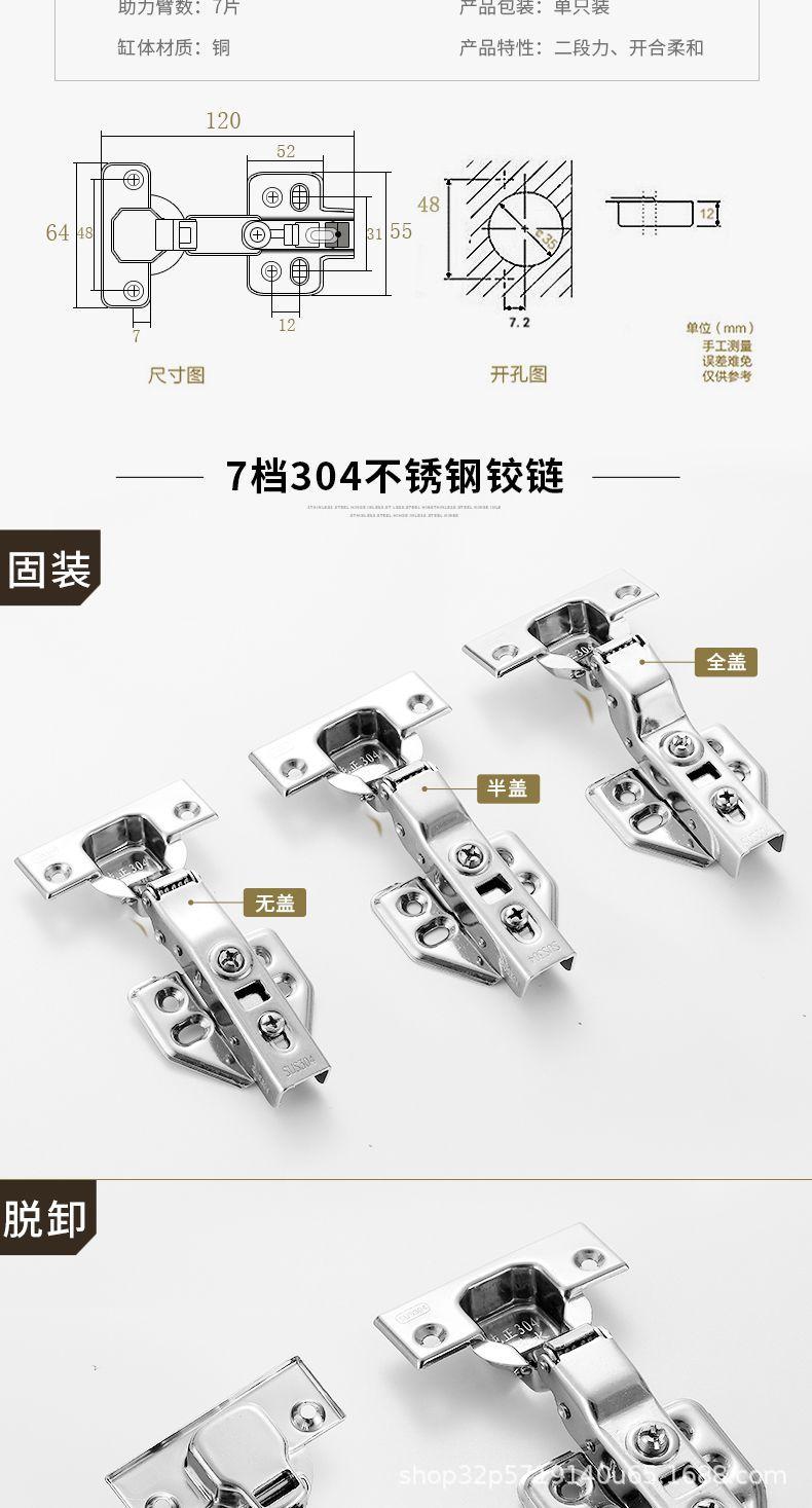 Bisagra de acero inoxidable 304 con amortiguador hidráulico para puerta, bisagra de puerta de armario con tubo de avión, bisagra de curva media