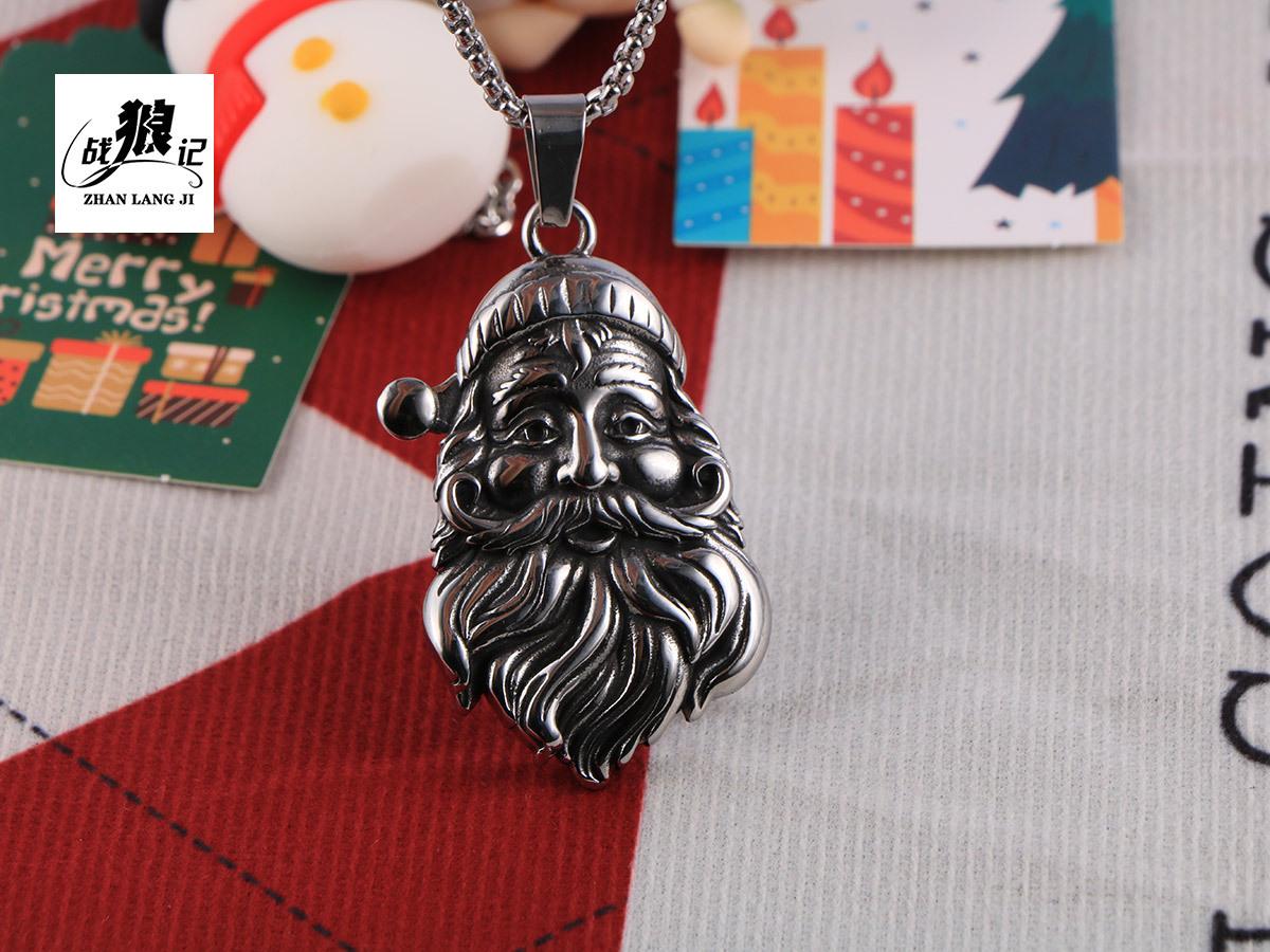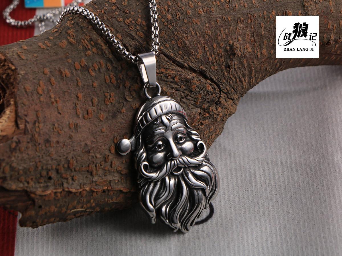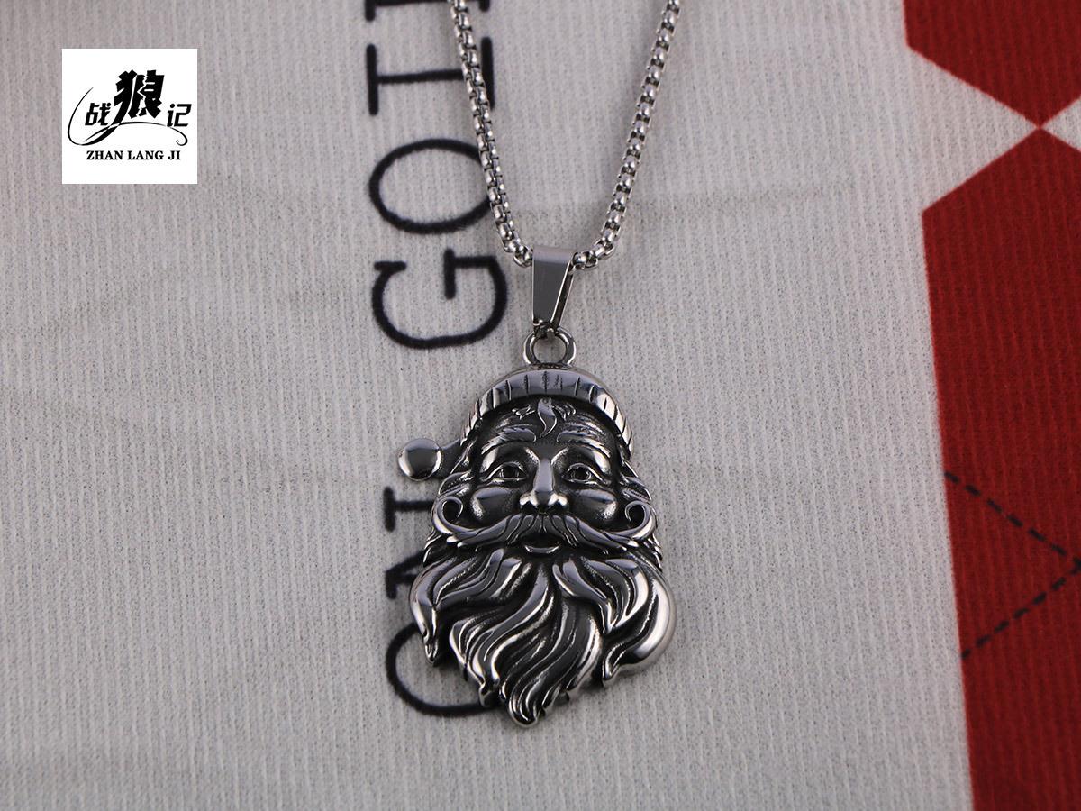Collar de acero de titanio con diseño de Papá Noel, estilo vintage, regalo de Navidad, colgante de estilo hipster hip hop, joyería de comercio exterior SP1057
