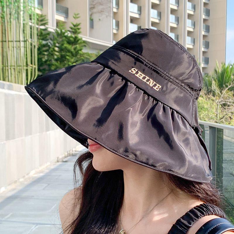 2023 nuevo verano negro plástico moda protección solar sombrero de pescador femenino plegable moda vacaciones sombrero para el sol con ala grande para bloquear la cara |