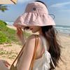 2023 nuevo estilo sombrero de sol de ala ancha para mujer con parte superior hueca lazo se puede usar como bolsa de almacenamiento conveniente y moderno sombrero de pescador para protección solar |