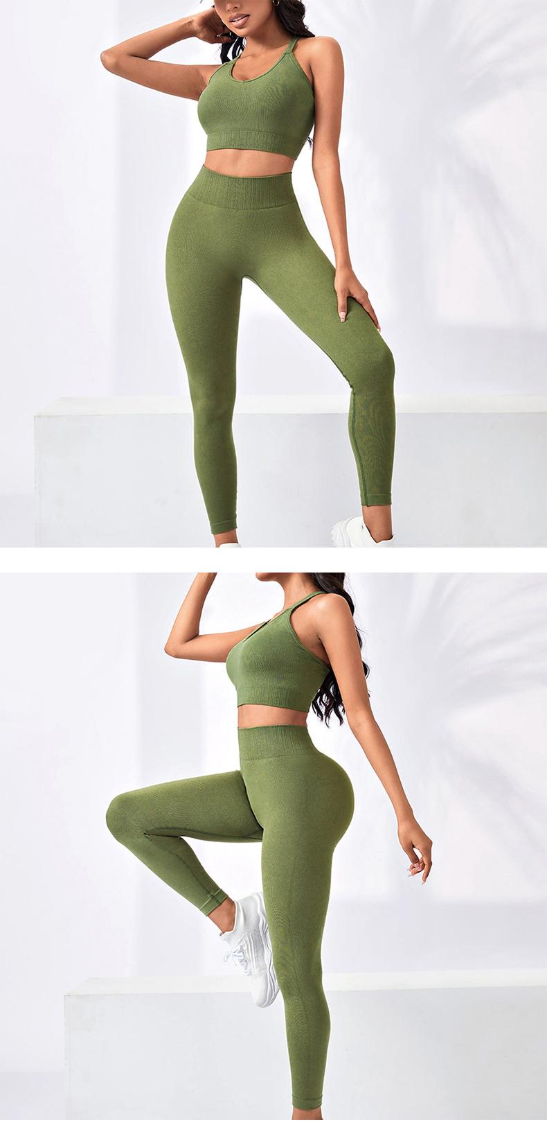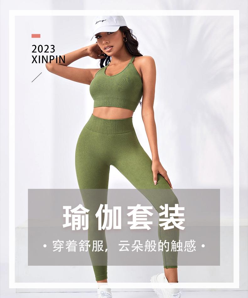 Nuevo sujetador deportivo de alta elasticidad de color sólido sin costuras transfronterizas, ropa interior, ropa de yoga, traje para correr, fitness, conjunto deportivo de dos piezas