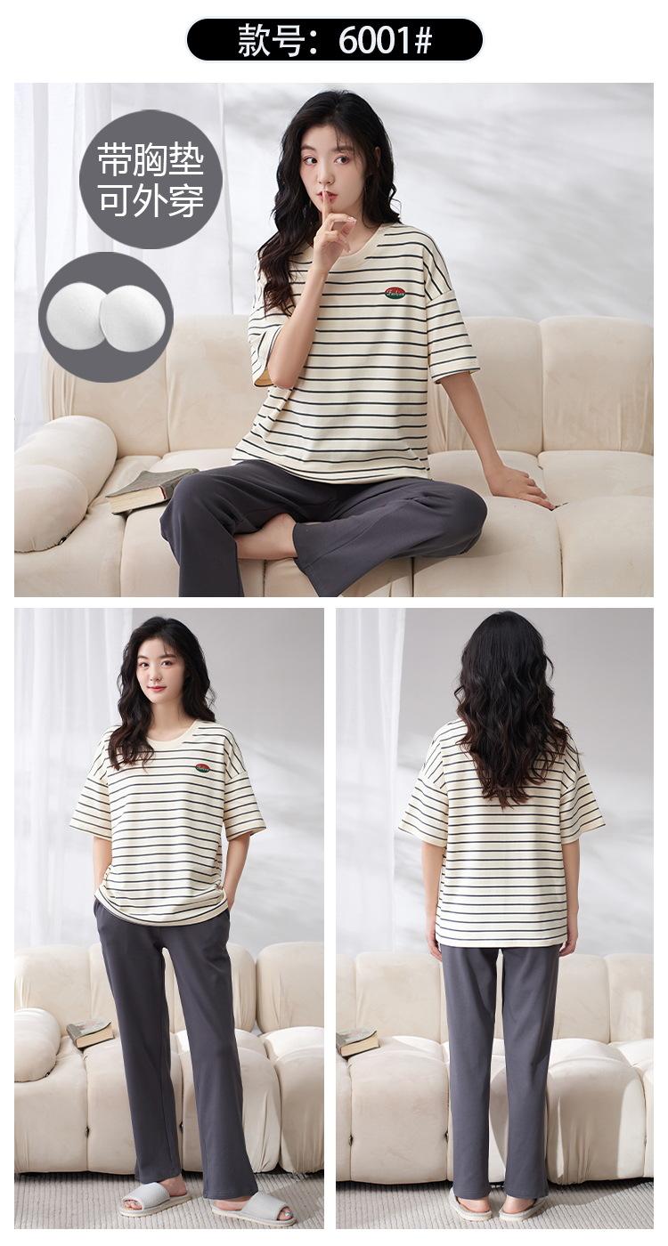 Pijamas de algodón puro para mujer, primavera y verano 2024, informales, a rayas, holgados, para el hogar