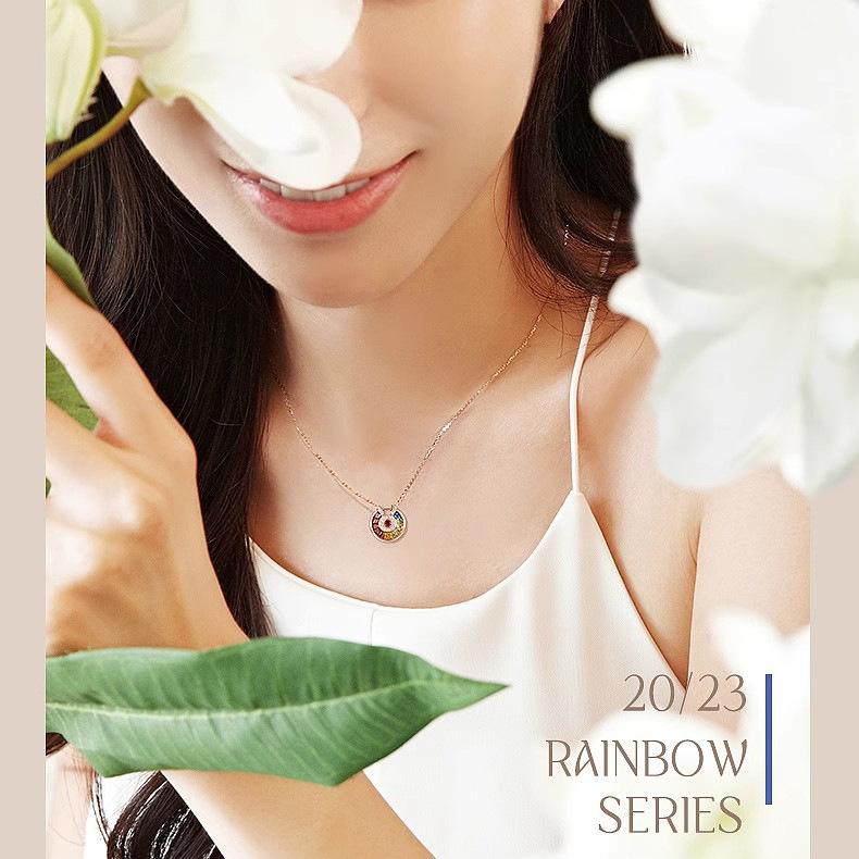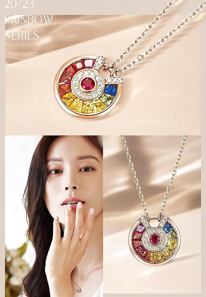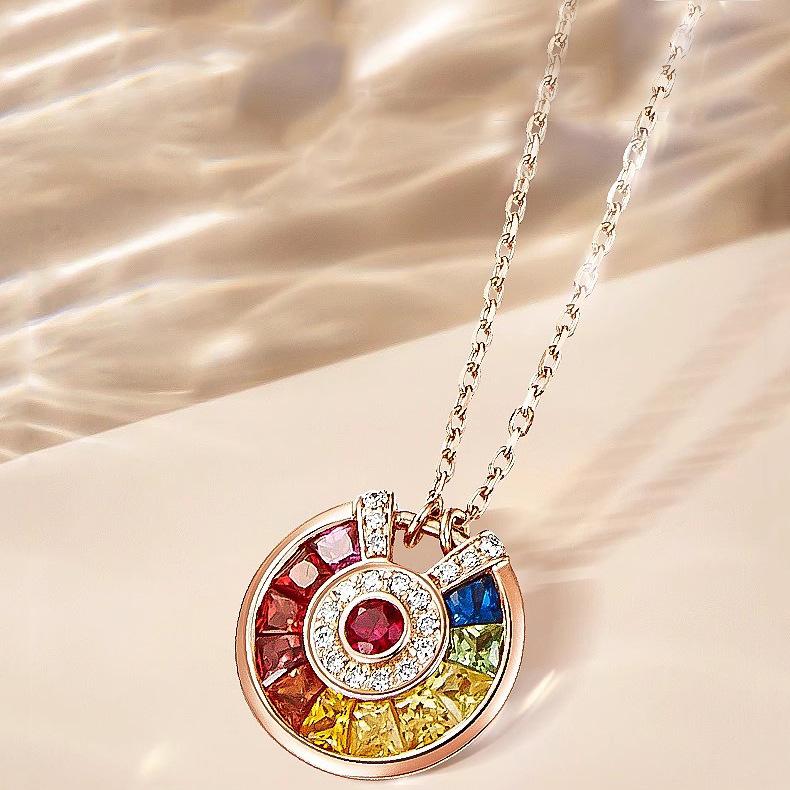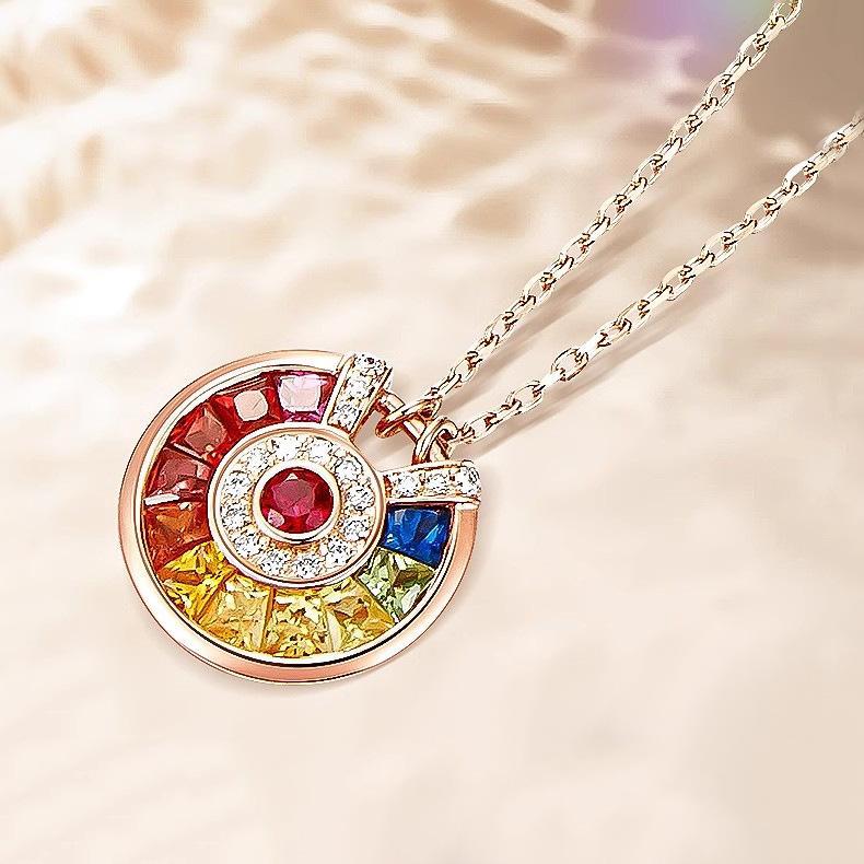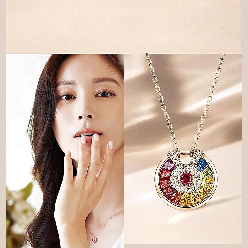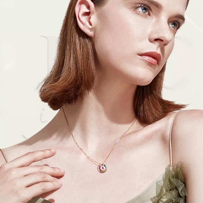 Collar con colgante de amuleto de la suerte para mujer, chapado en oro rosa de 18 quilates, gema de colores, para fiesta