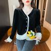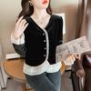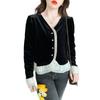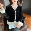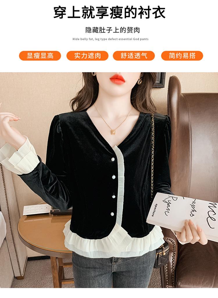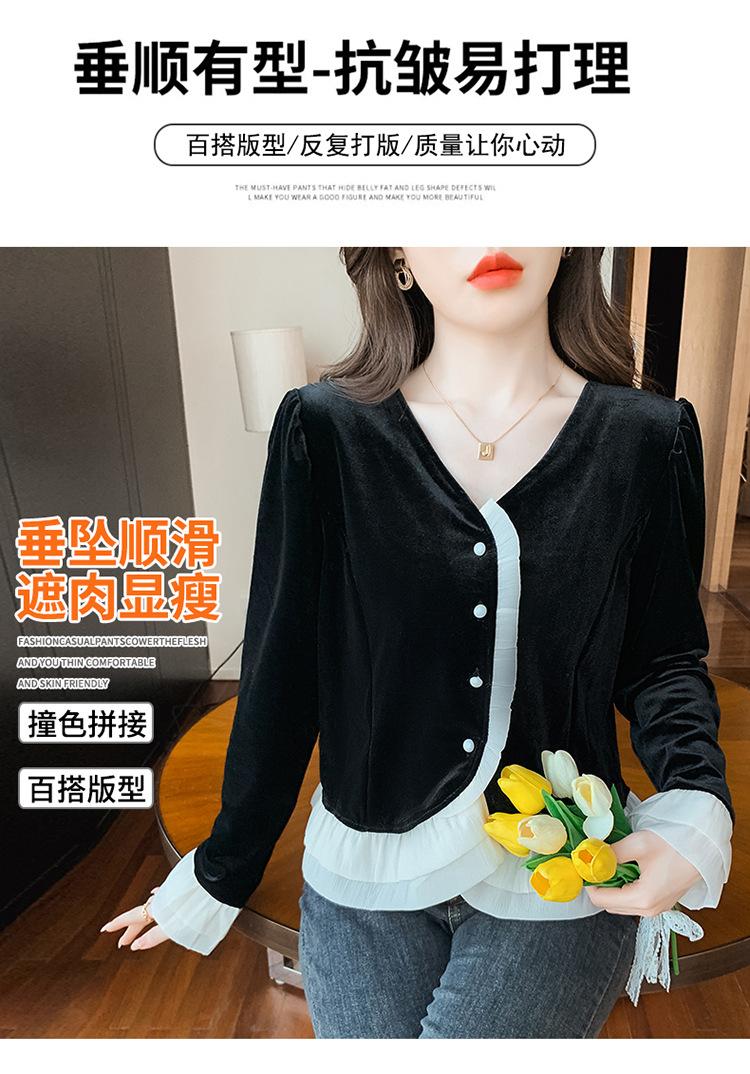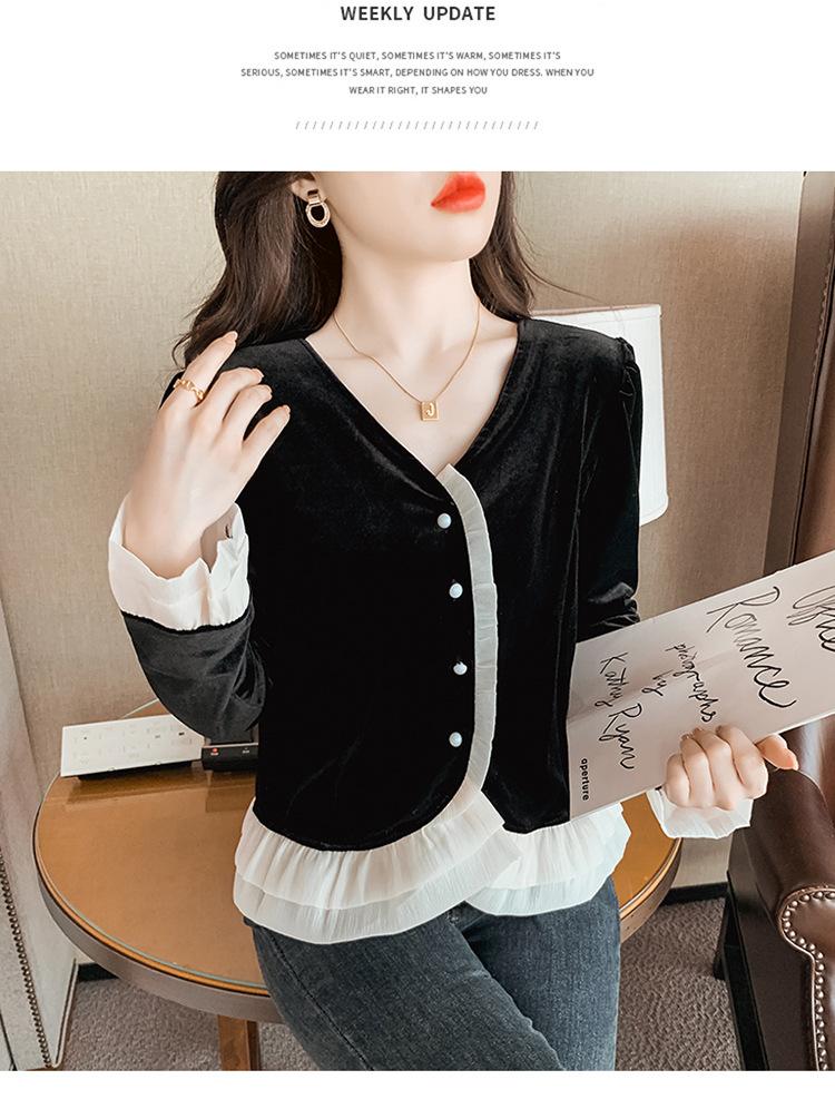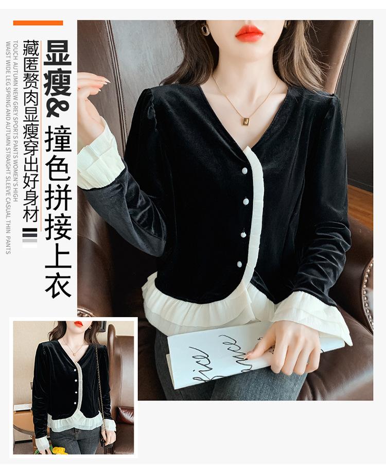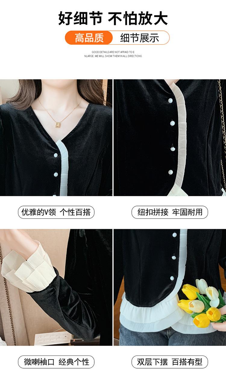 Camisa de encaje de terciopelo dorado estilo chino para mujer, nueva moda de otoño 2023, blusa negra elegante retro
