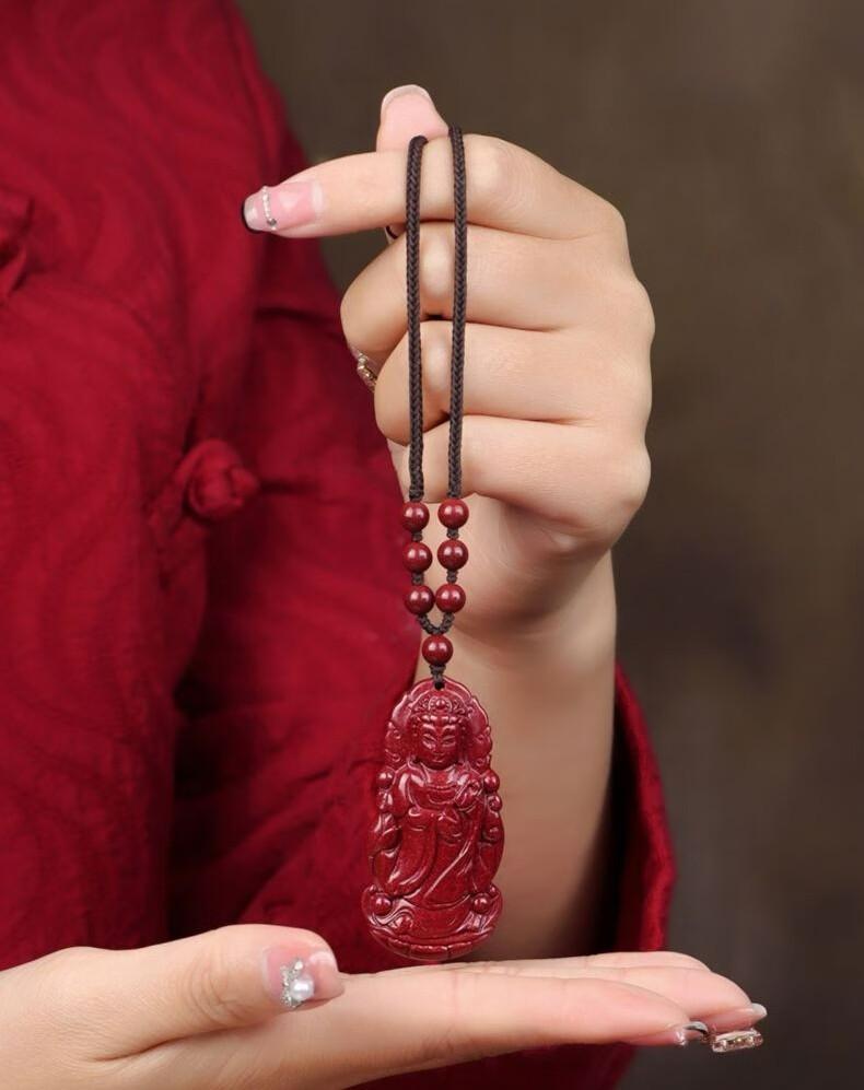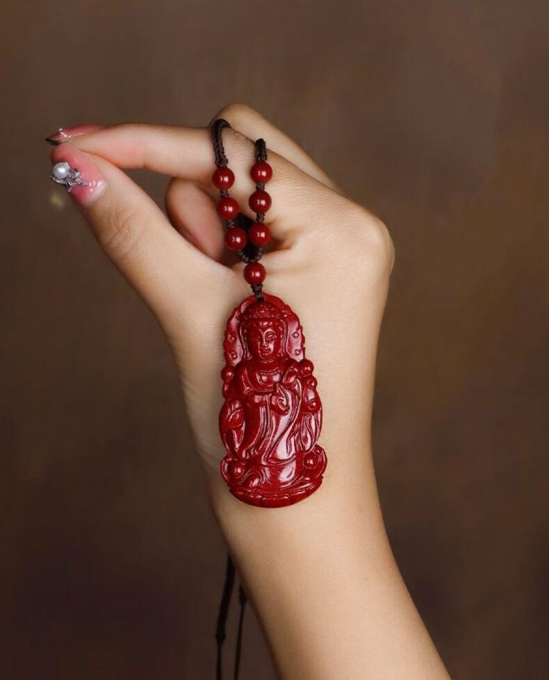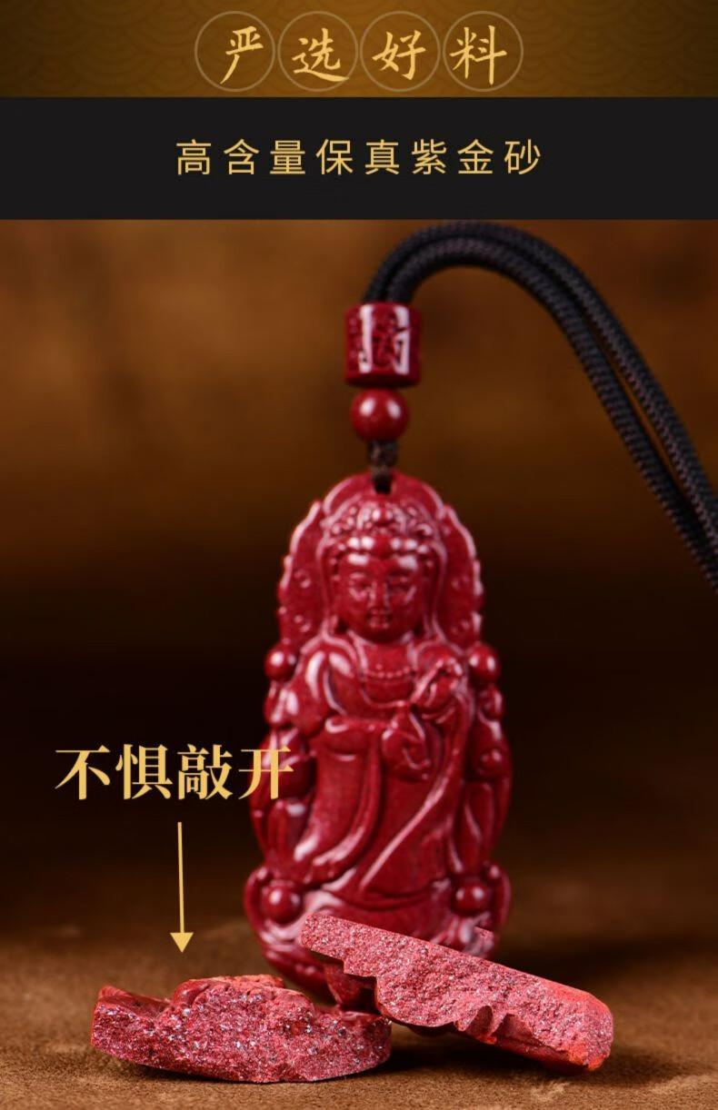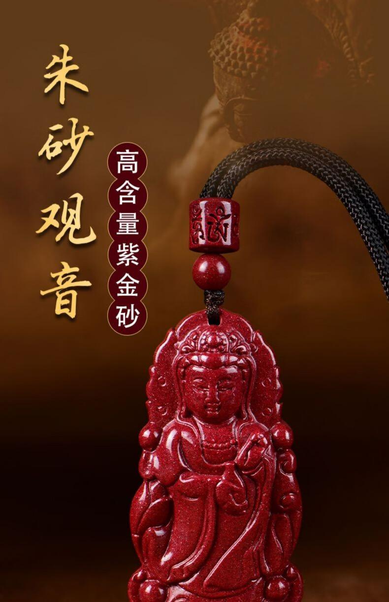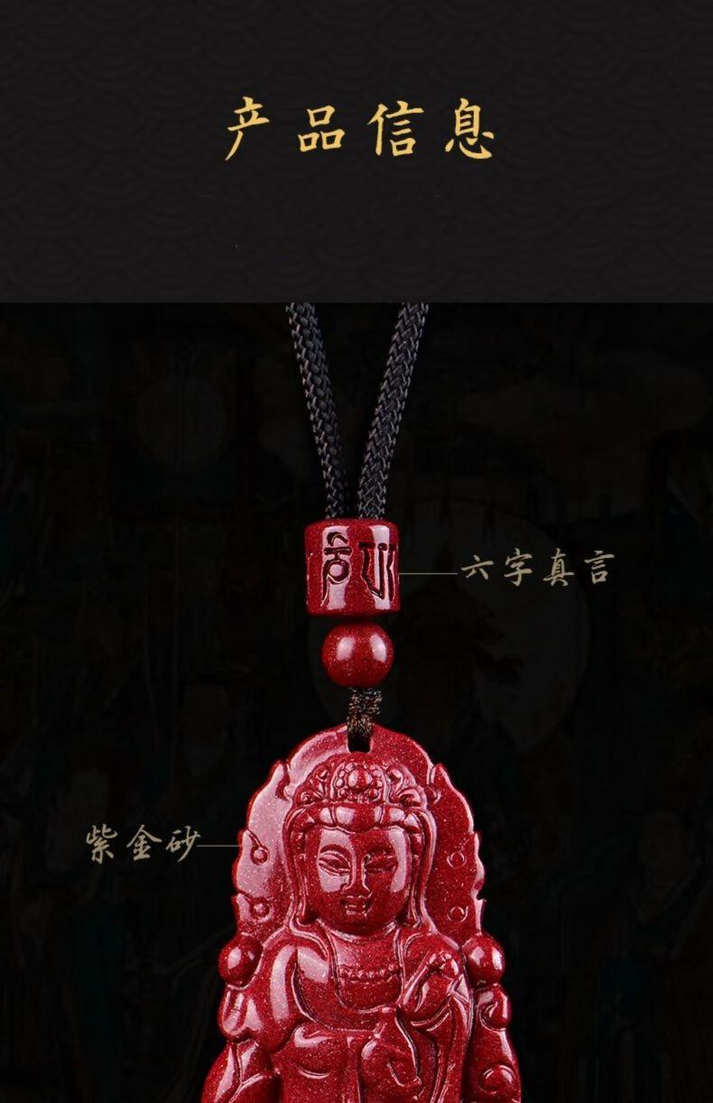 Colgante de Guanyin con cinabrio y arena de oro púrpura de alto contenido, colgante de Buda Guanyin, regalo para hombres y mujeres, regalo de año de nacimiento
