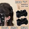 Pinza para el pelo de princesa con lazo de doble cara y perla negra para mujer, flequillo lateral roto, pinza pequeña para la cabeza